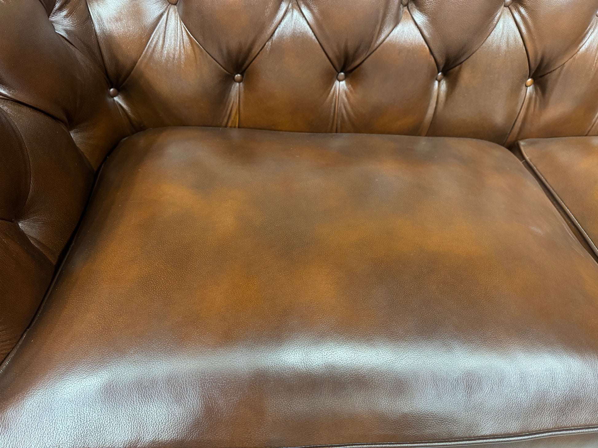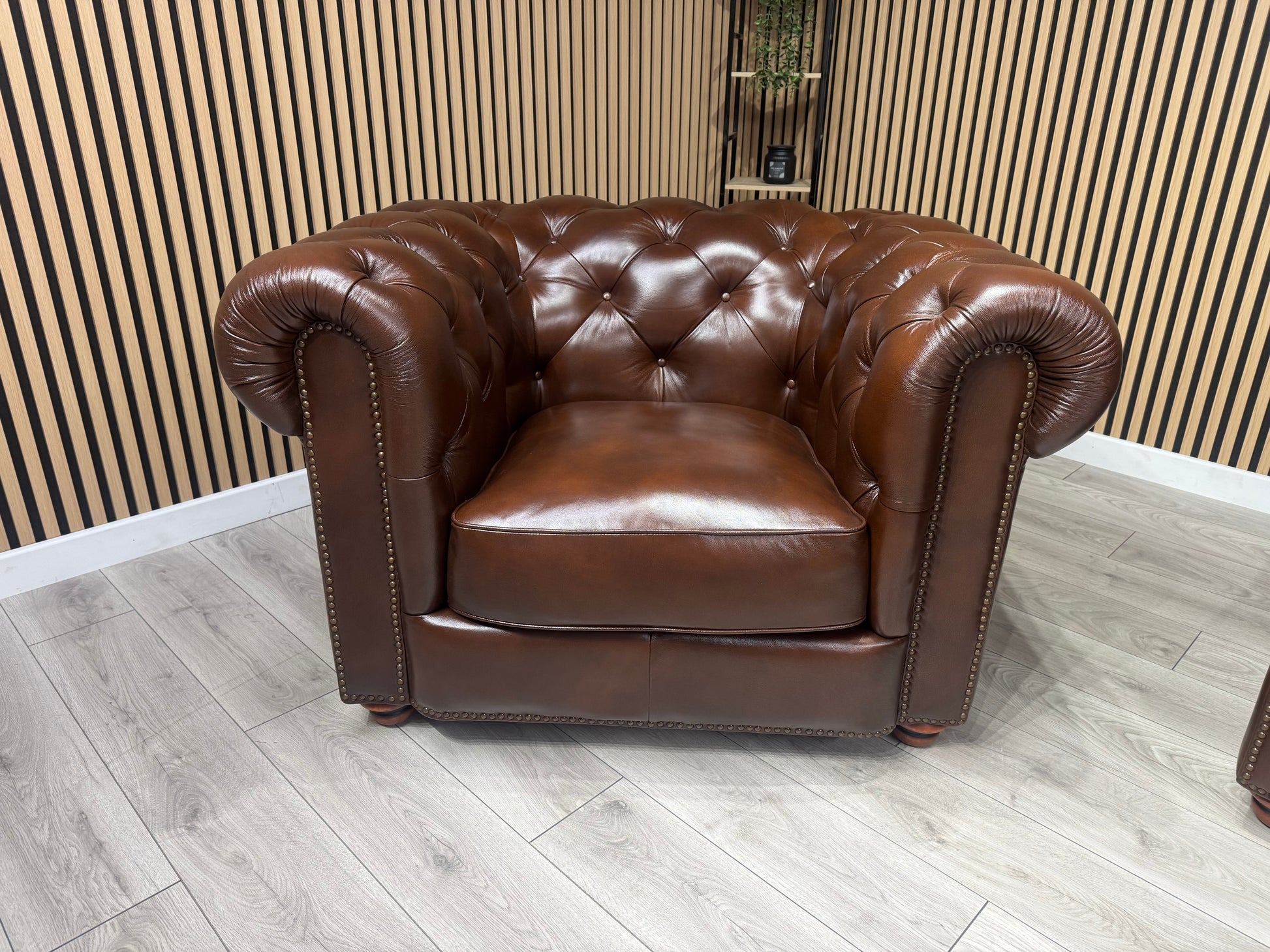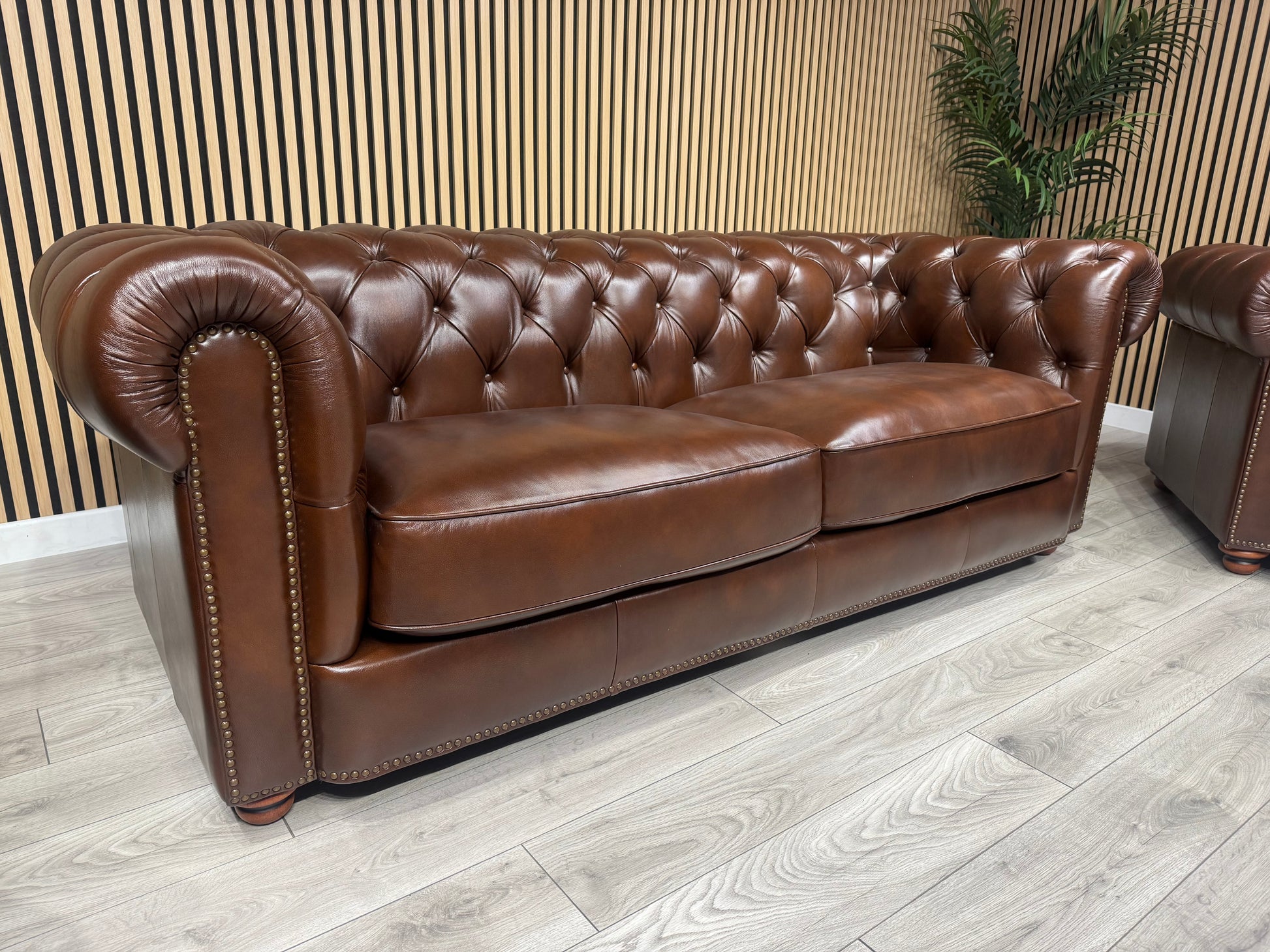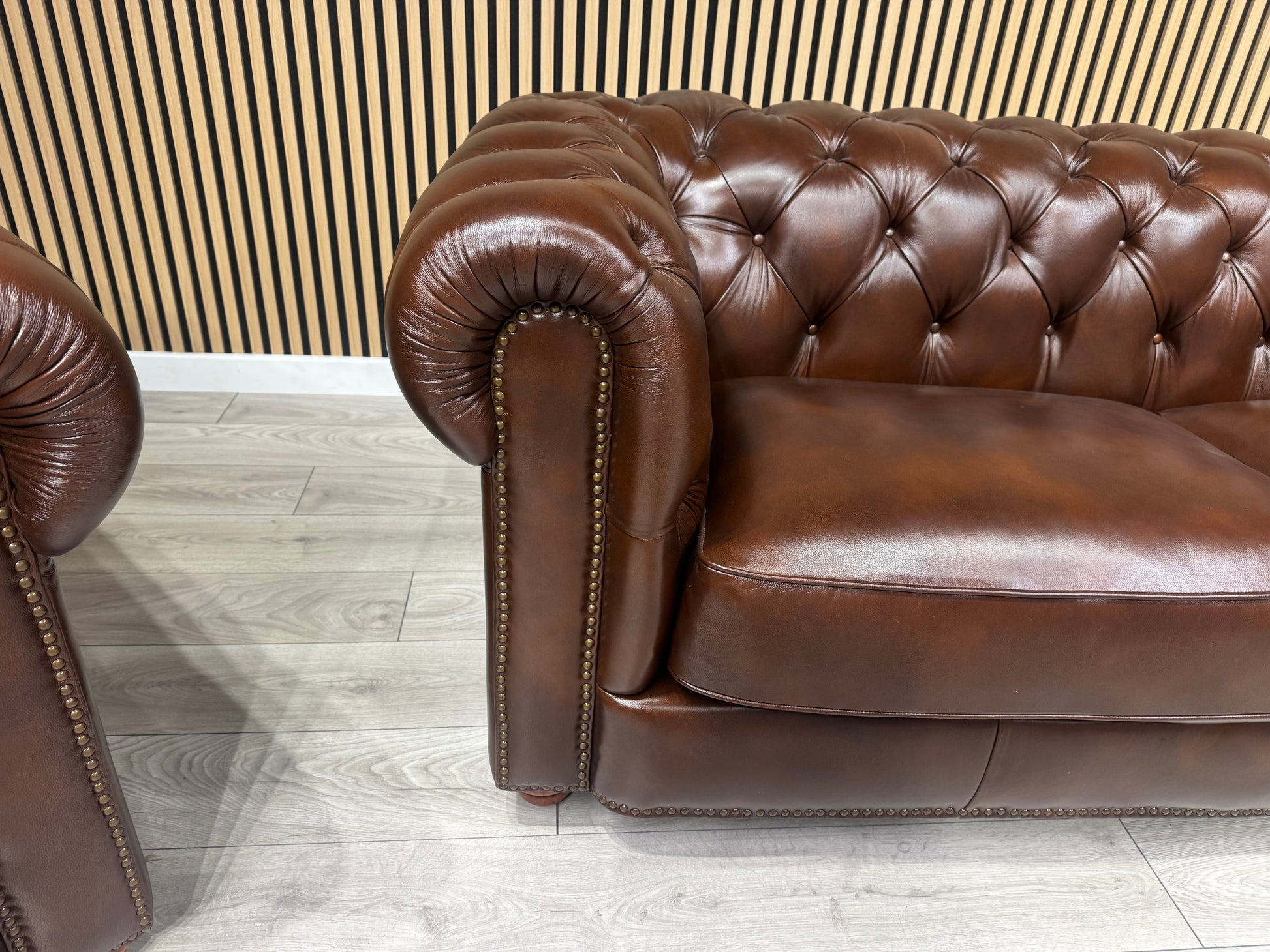 At The Helm Shackleton Style 3 Seater Sofa + 2 Armchairs Leather Chesterfield Set.