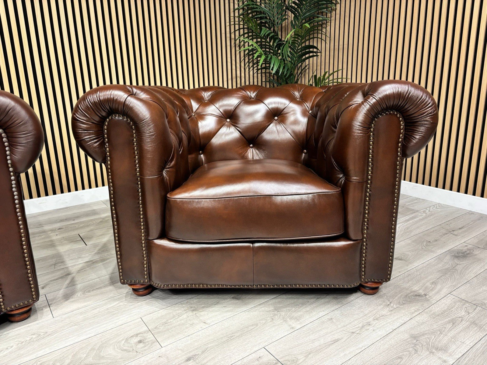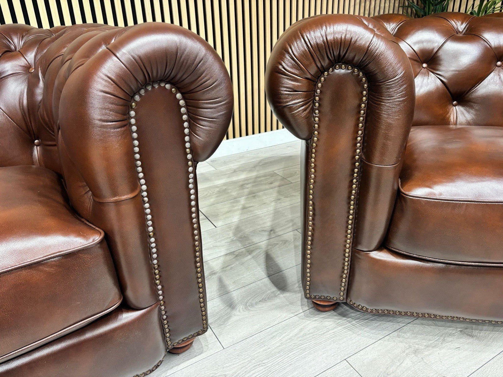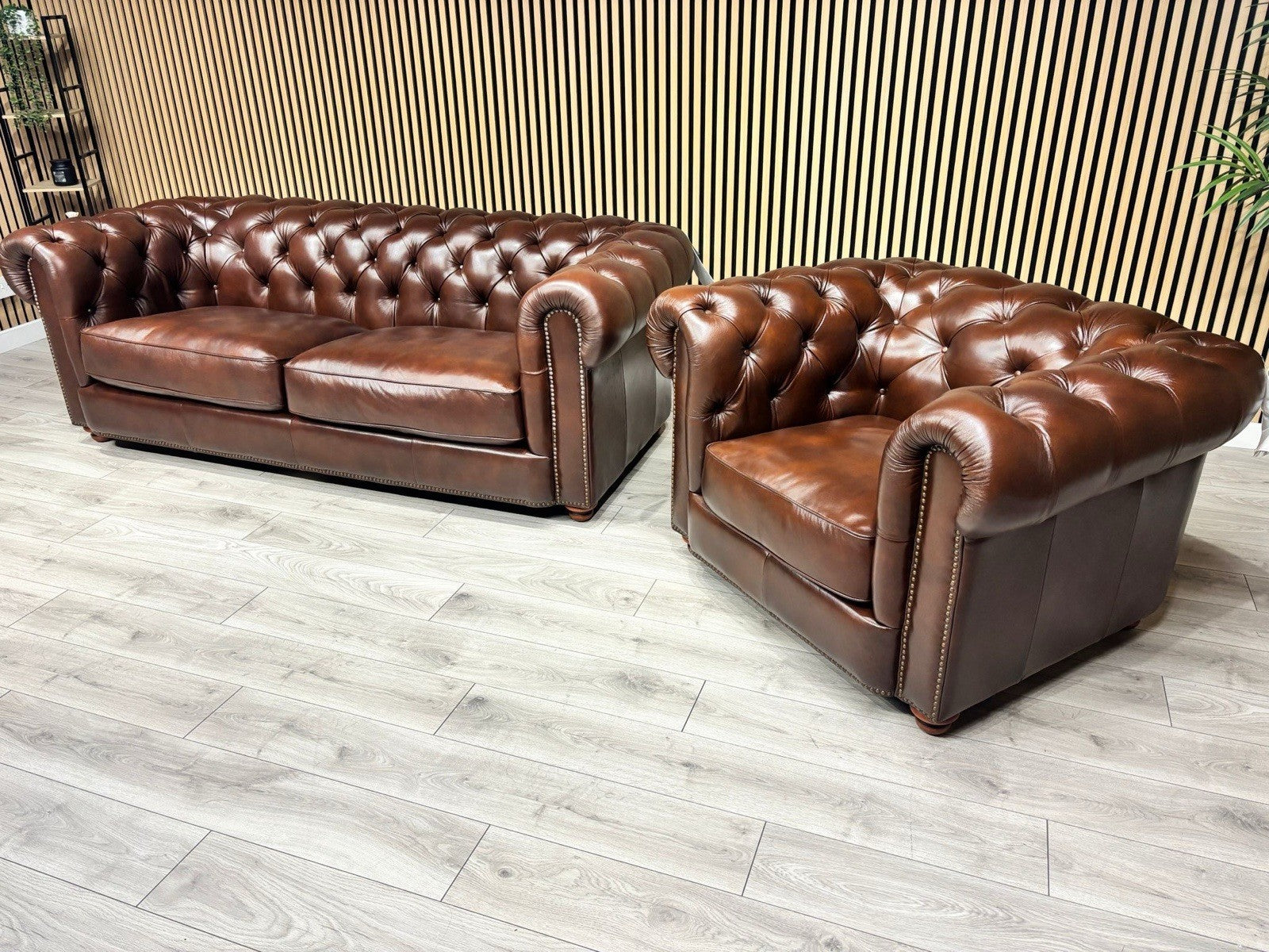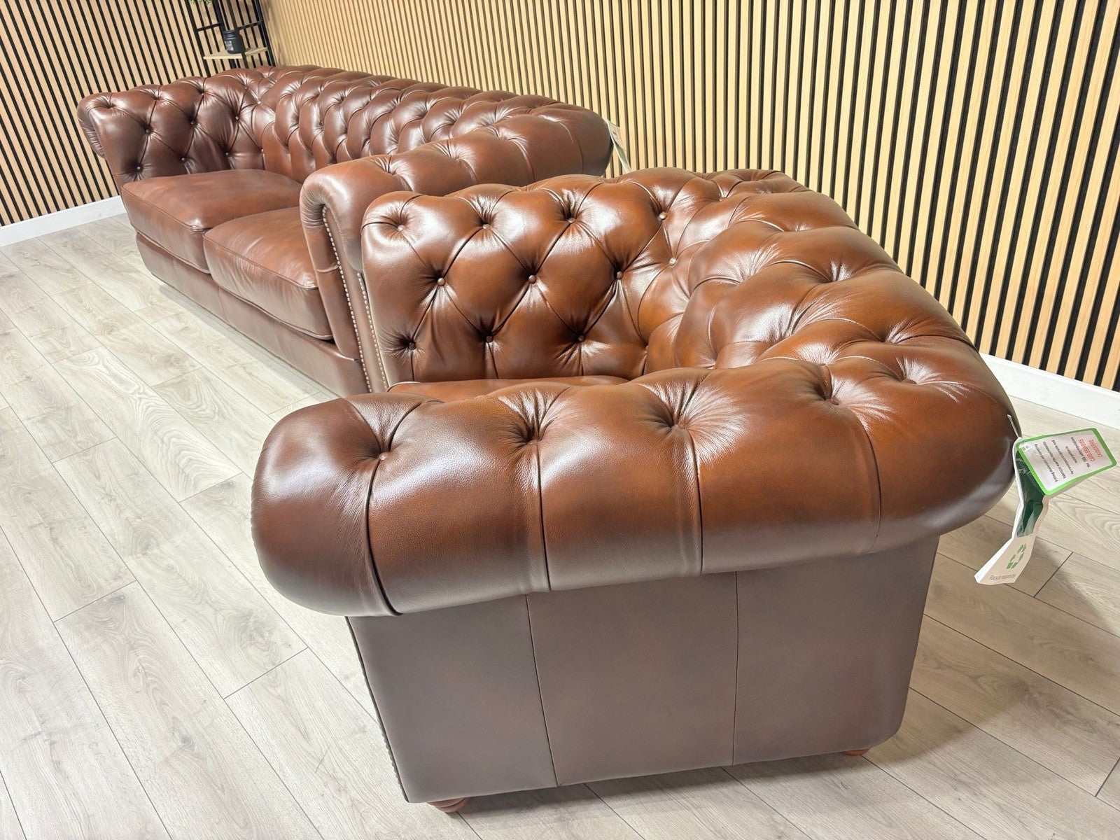 At The Helm Shackleton Style 3 Seater Sofa + Armchair Leather Chesterfield Set