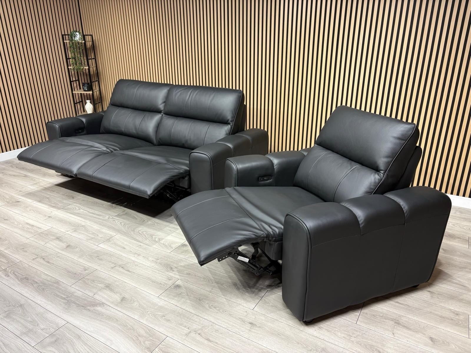 Bellagio Leather 3 Seater + Armchair Sofa Set, Power Recliners RRP: £3440