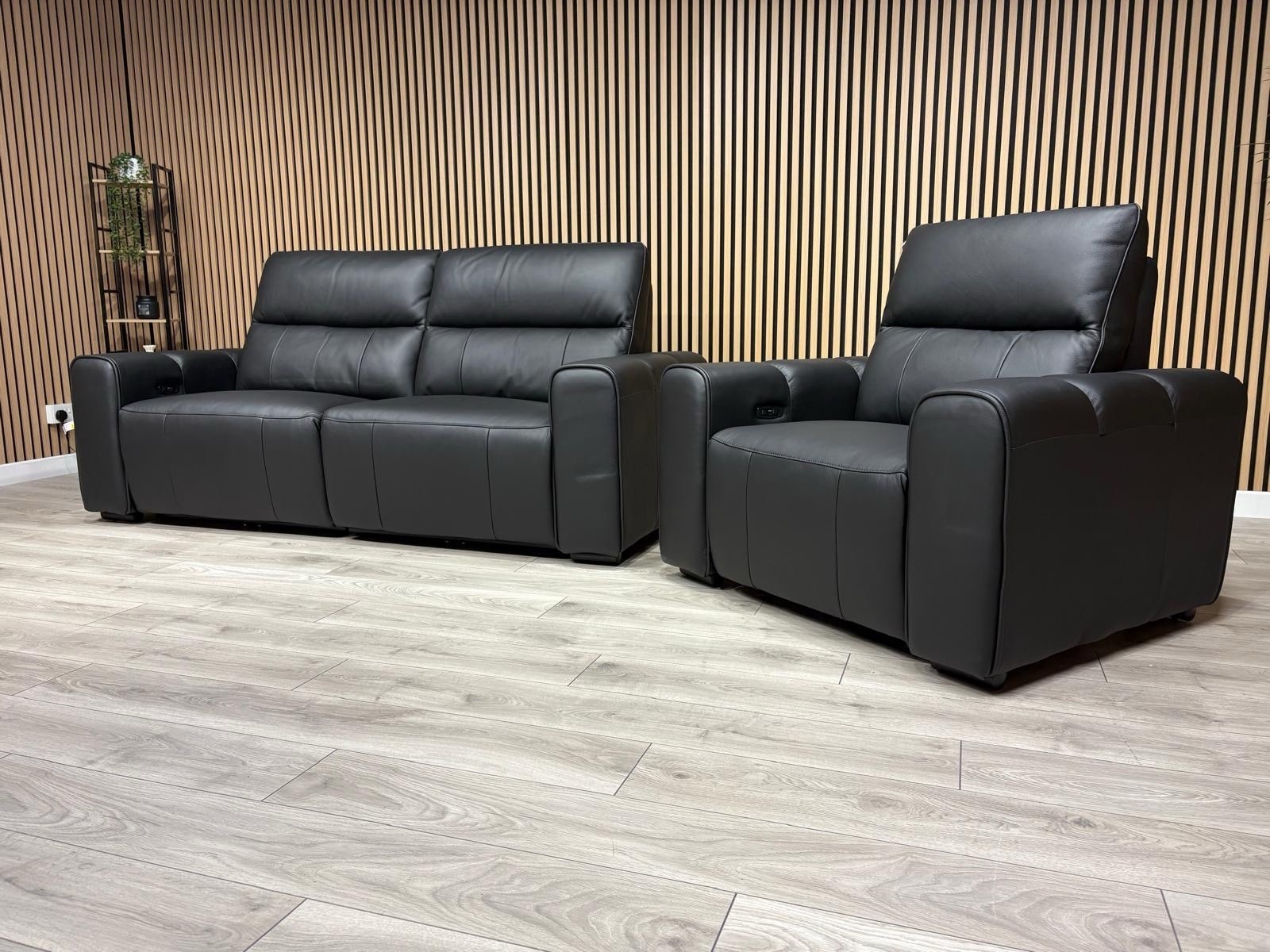Bellagio Leather Power Recliner 3 Seater + Armchair Sofa Set.Colour: Black.