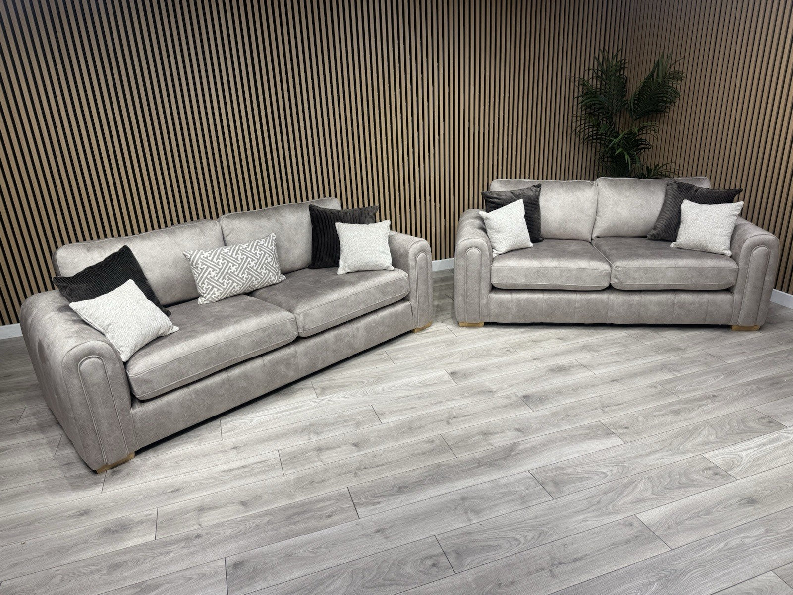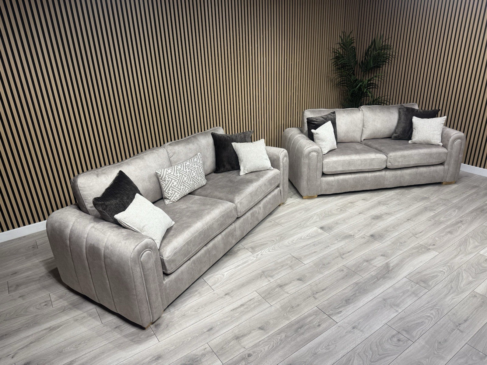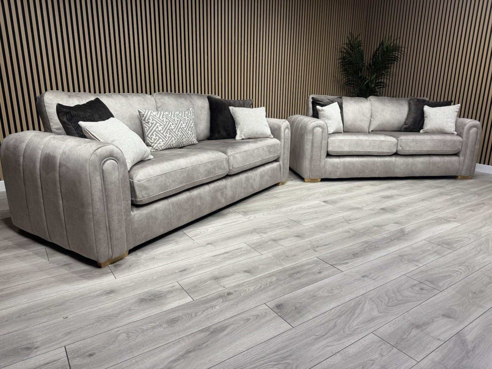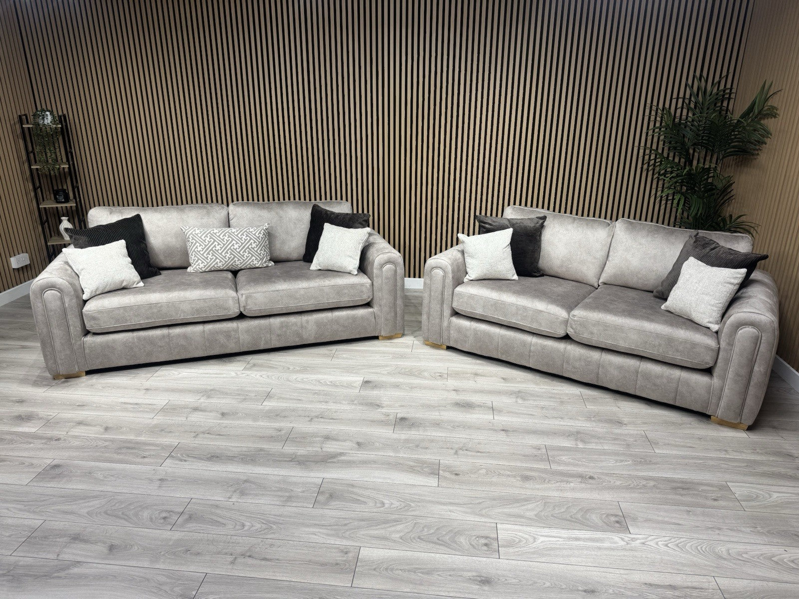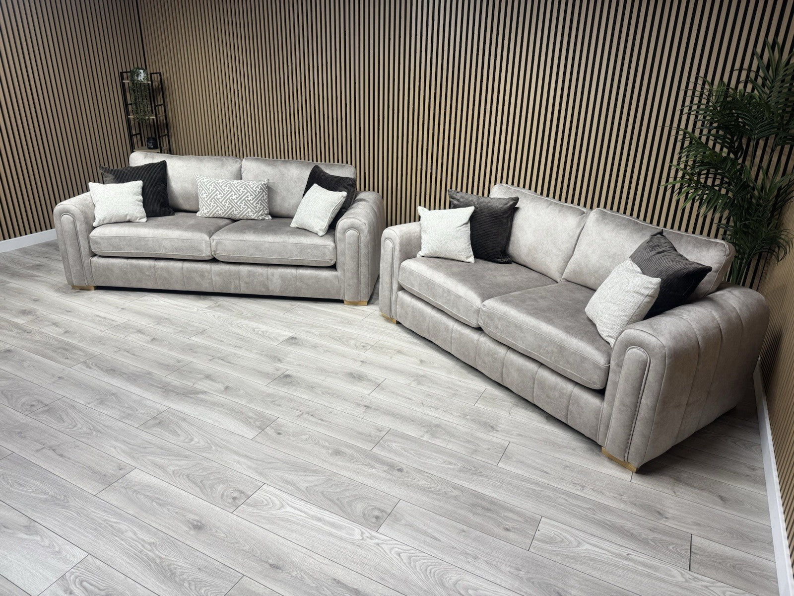 DEVINE Glamour Fabric 3 Seater + 2 Seater Sofa Set, Stone - RRP £2,598