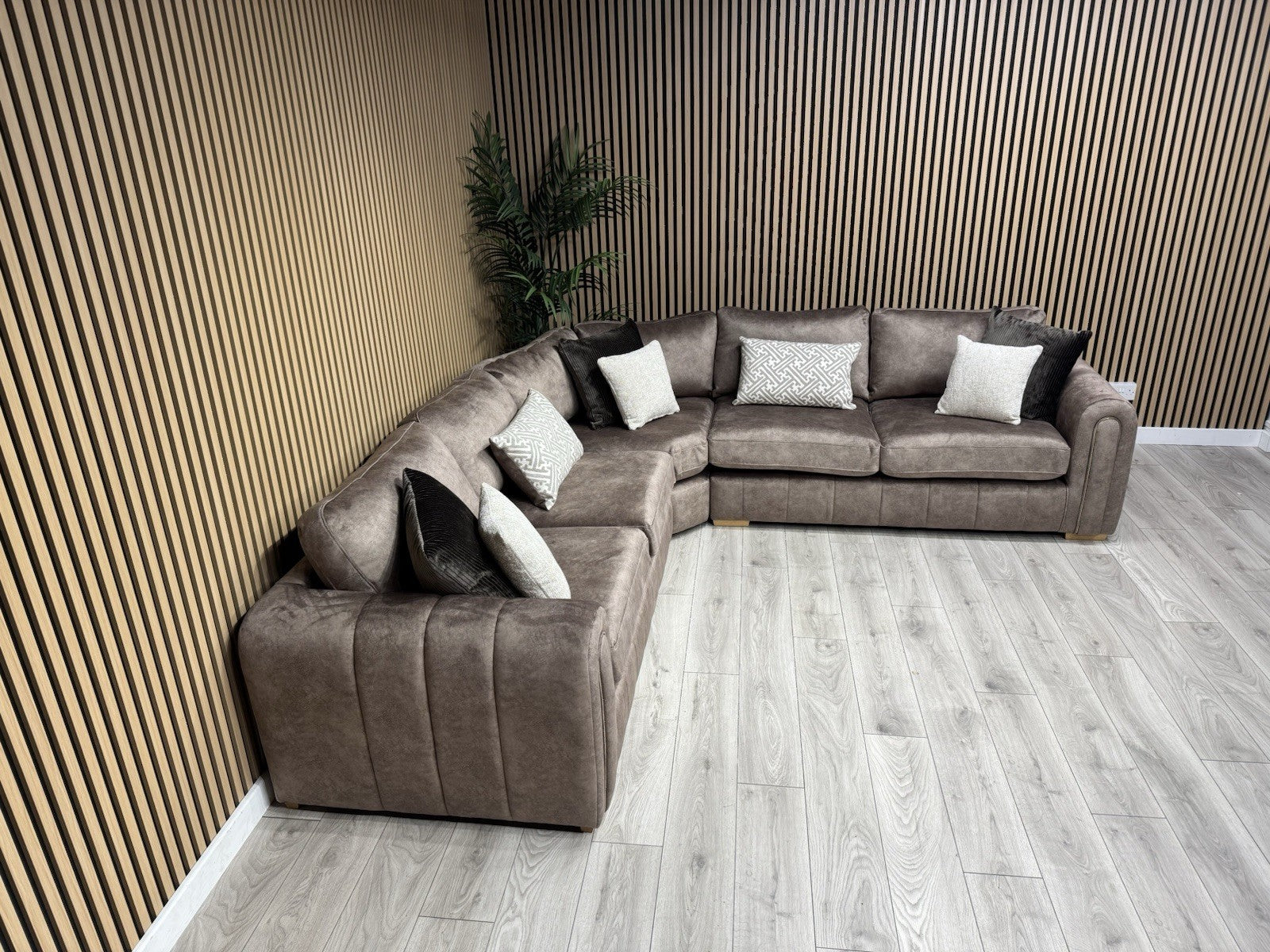 DEVINE Glamour Large Fabric 2 Corner 2 Sofa, Gemini Chocolate - RRP £2,695