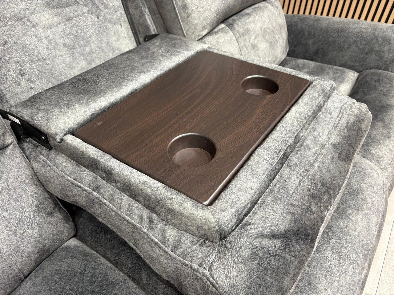 The Dylan sofa set combines indulgent comfort with modern convenience. Upholstered in Grey Mayson—a luxurious suede-look fabric with velvet-soft feel and natural veining—this 3 and 2 seater pairing delivers plush support through responsive foam cushions that maintain their shape beautifully. Dual power recliners let you adjust head and footrests independently, while the fold-down centre table, integrated cup holders, and built-in USB/USB-C charging keep everything you need within reach. Designed for those who refuse to compromise on comfort or functionality.