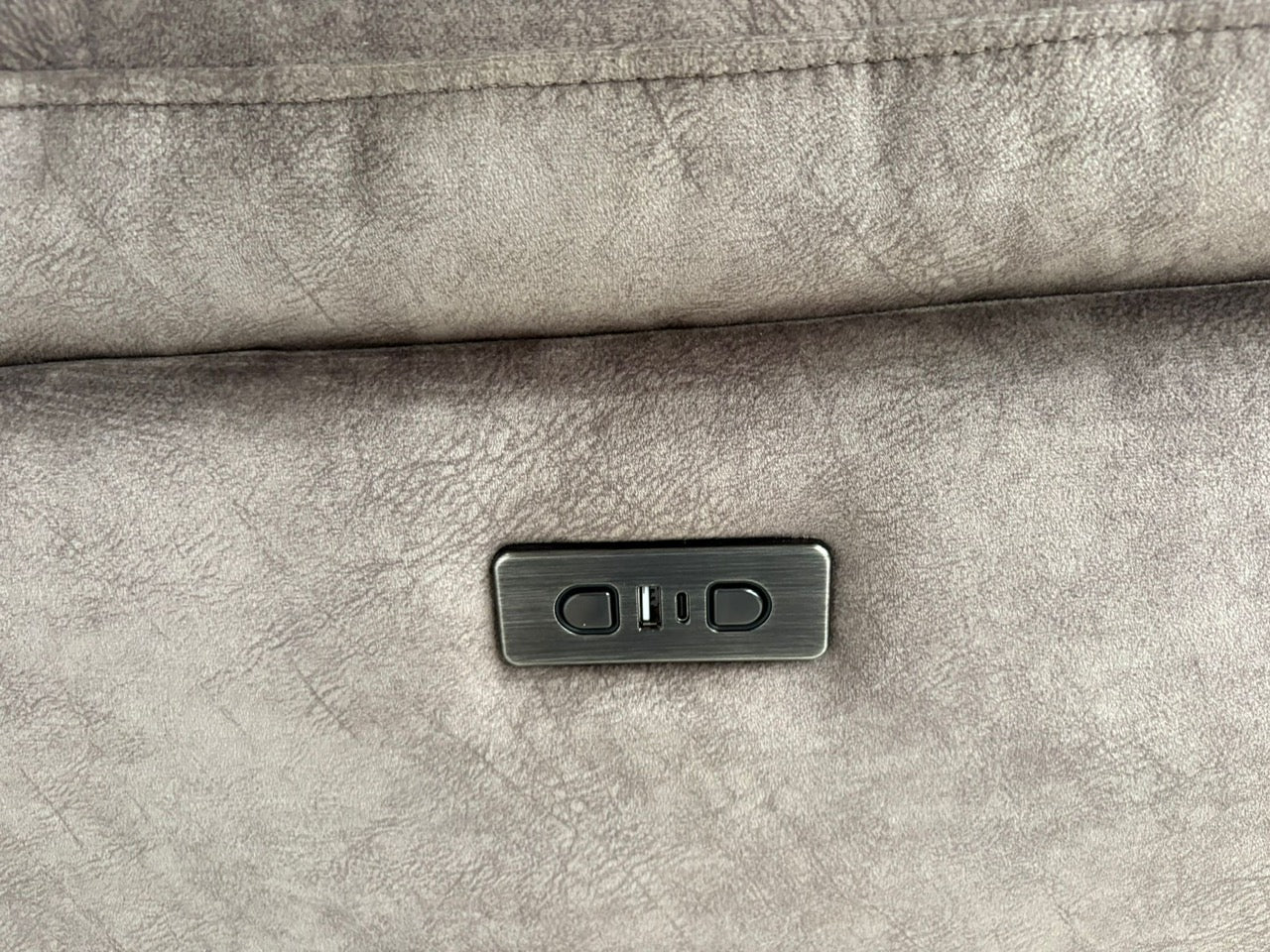 The Faxon Express power recliner sofa combines luxury with practicality. Upholstered in a sumptuous dapple fabric that mimics suede's look with velvet's softness, it features a brushed finish and natural veining for understated elegance. The supportive foam seat cushions maintain their plump appearance with minimal upkeep, while the high back provides excellent support for extended relaxation. Choose from 80 customisable reclining positions using the convenient arm controls, and keep your devices charged with integrated USB and USB-C ports. Designed for quick delivery, this two-seater brings contemporary style and comfort to any living room, ready to become your favourite spot for unwinding.