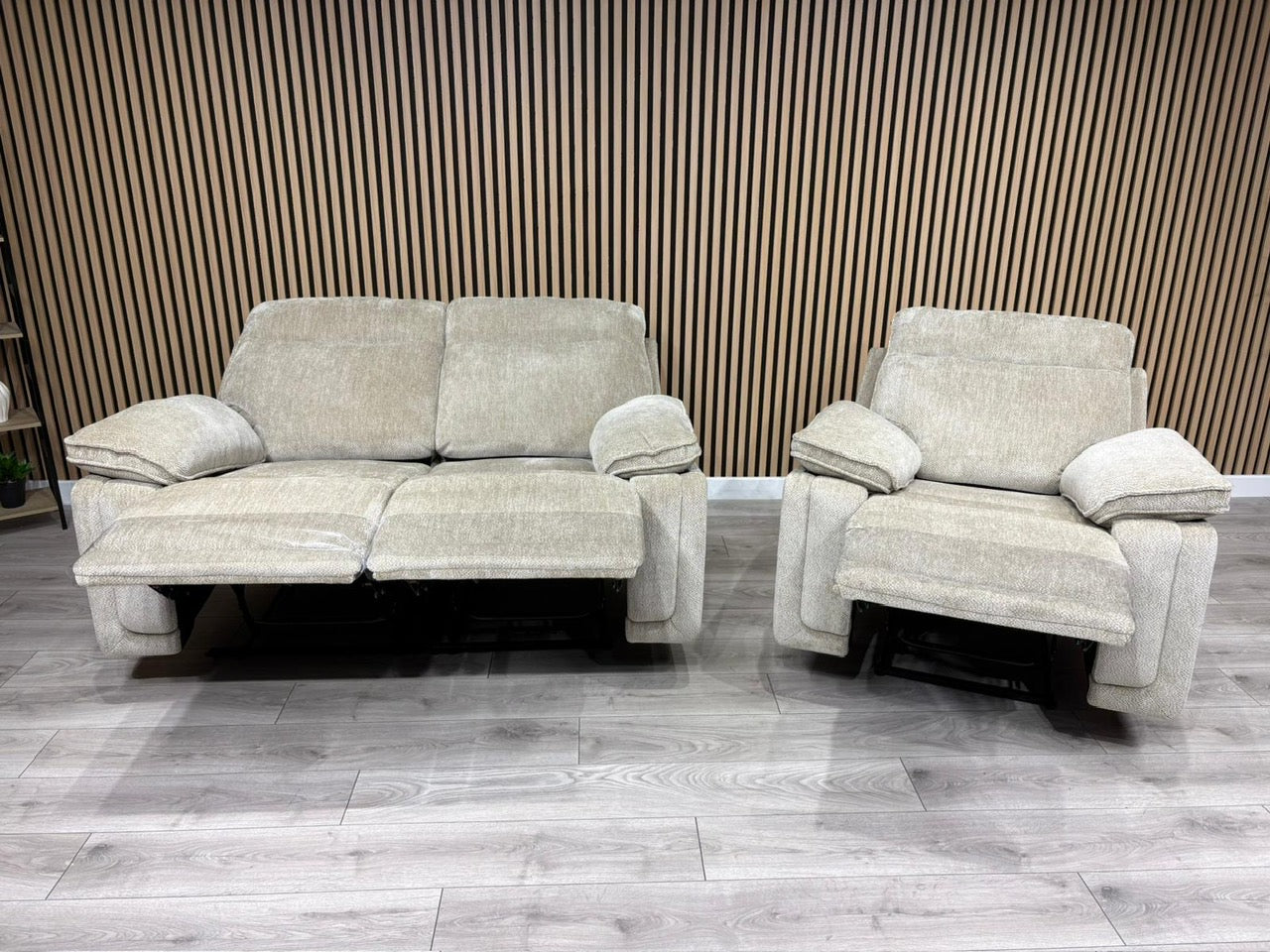 DFS Sample - Cadenza Style Fabric 2 Seater + Armchair Power Sofa Set - RRP £2488