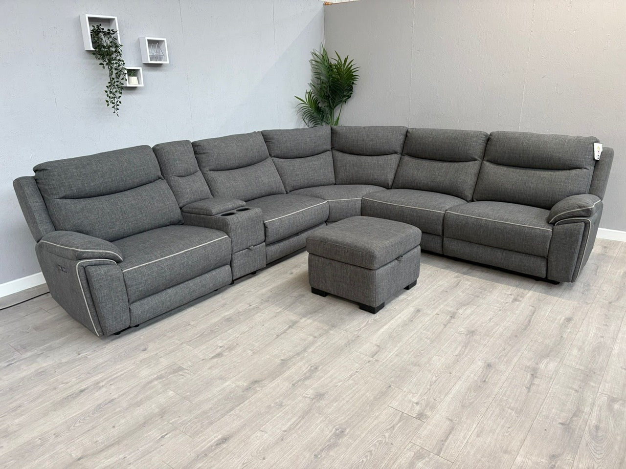 DFS Trek Fabric 2 Corner 2 Power Recliner Sofa with Console + Footstool