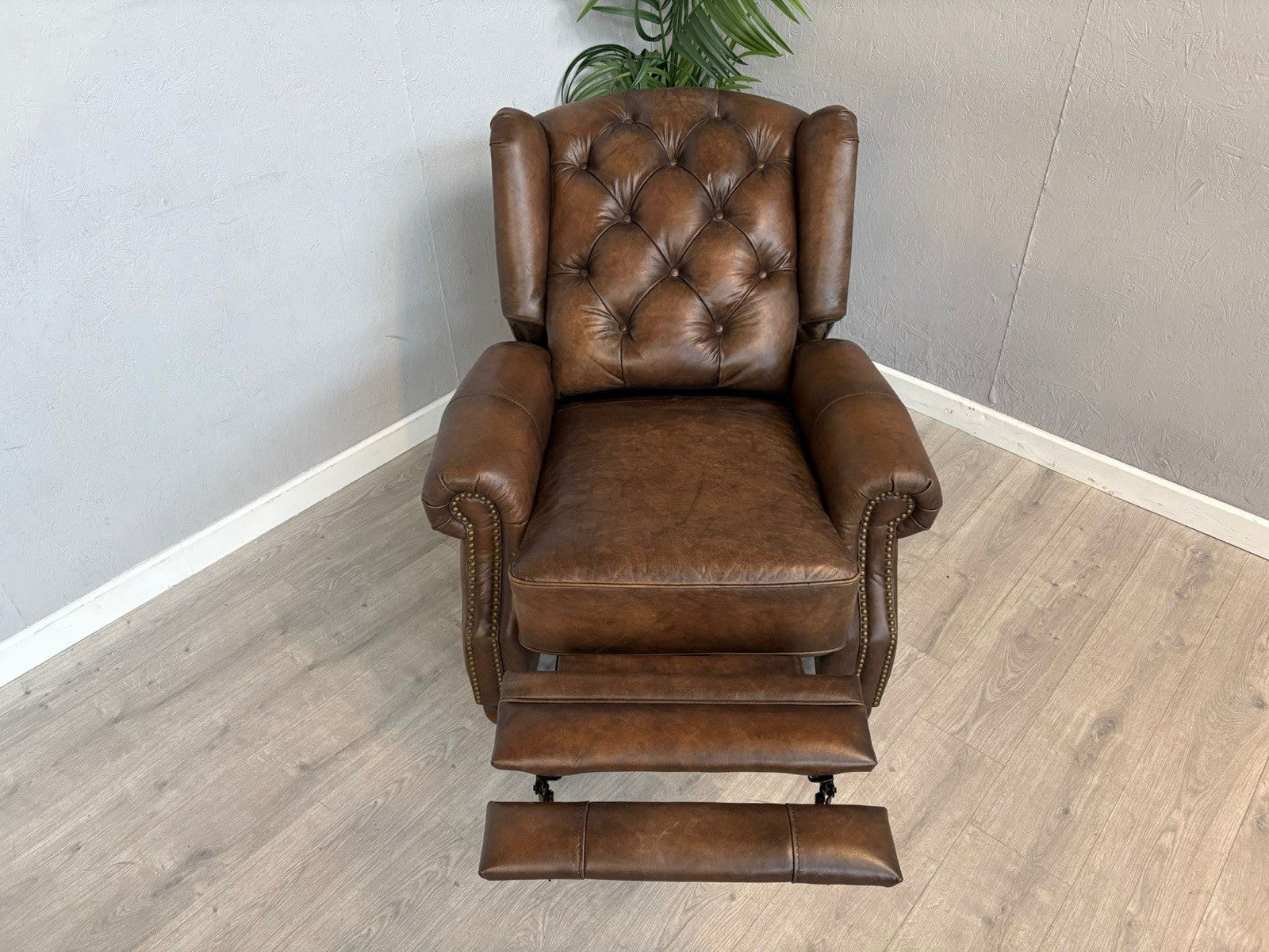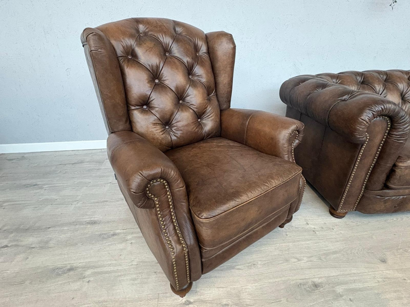 Furniture Village 'At The Helm' Shackleton 4 Seater Sofa + Armchair + Power Recliner Wing Chair Leather Chesterfield Set