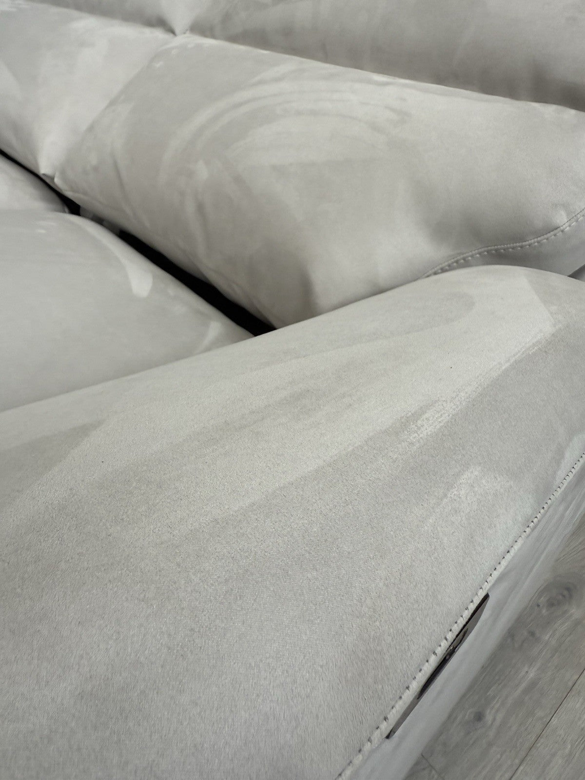 **Brand New clearance stock from Furniture Village, stunning fabric sofa set with massive savings against RRP. Item might have a couple of slight cosmetic transit marks but nothing that affects the quality, look or use of the sofa...**
