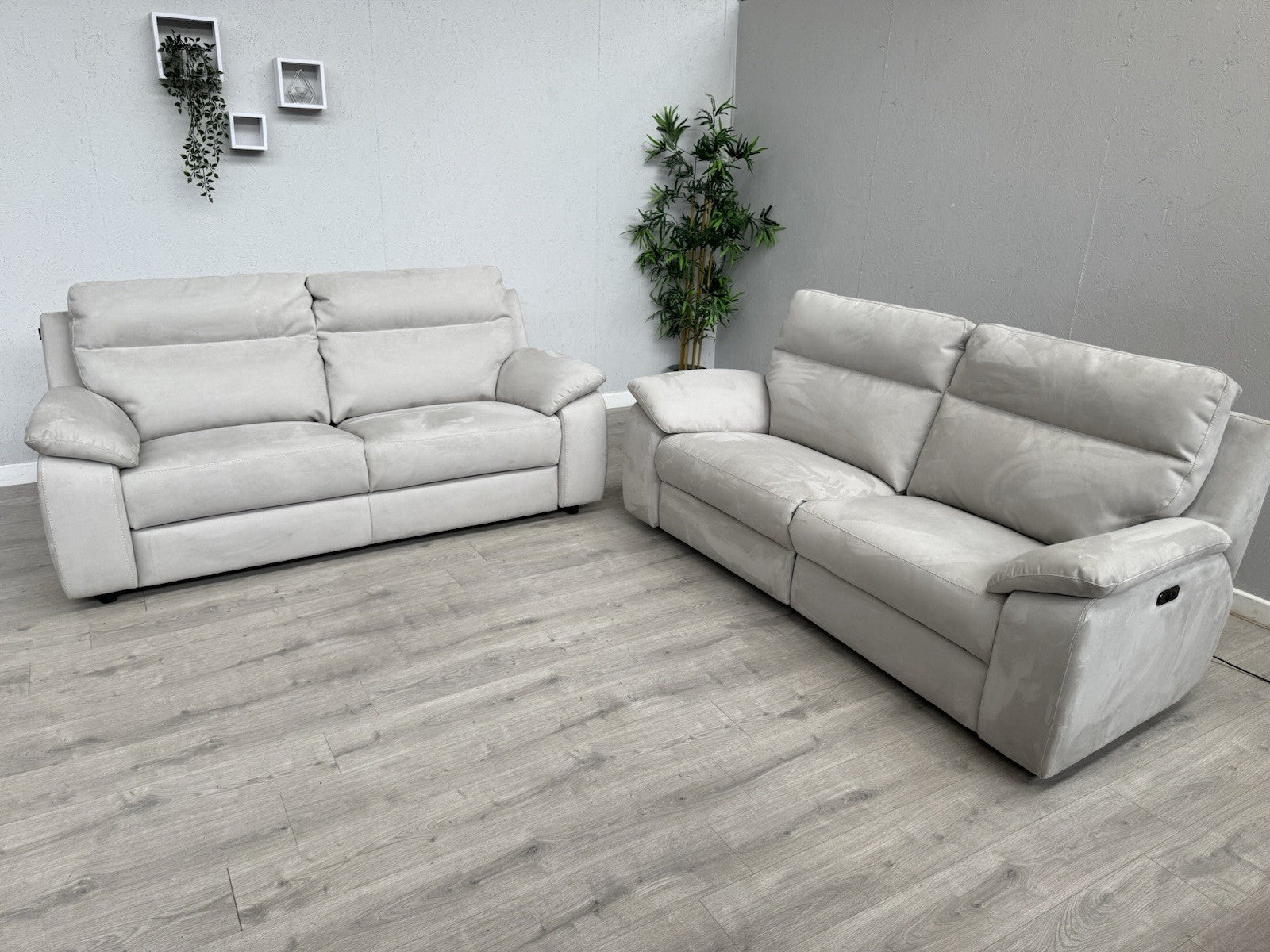 Furniture Village - Nicoletti PEPINO 2 x 3 Seater Fabric Sofa Set ( 1 x Power Recliner / 1 x Static Non Recliner )