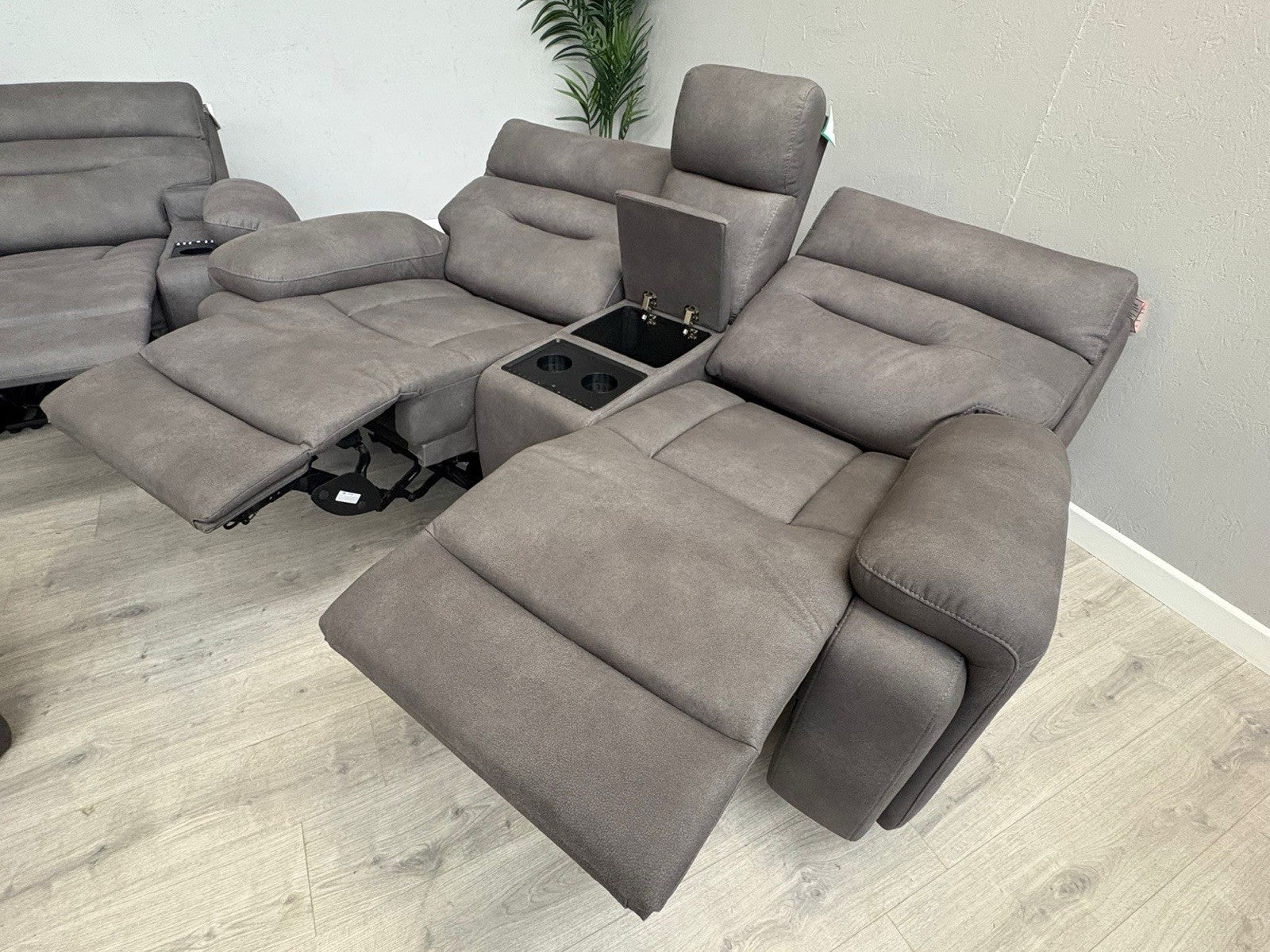 Furniture Village - CINEMAX Fabric 3 Seater + 2 Seater Media Power Sofas ( With Power Recliners / Power Headrests / Media Arms / Media Console )