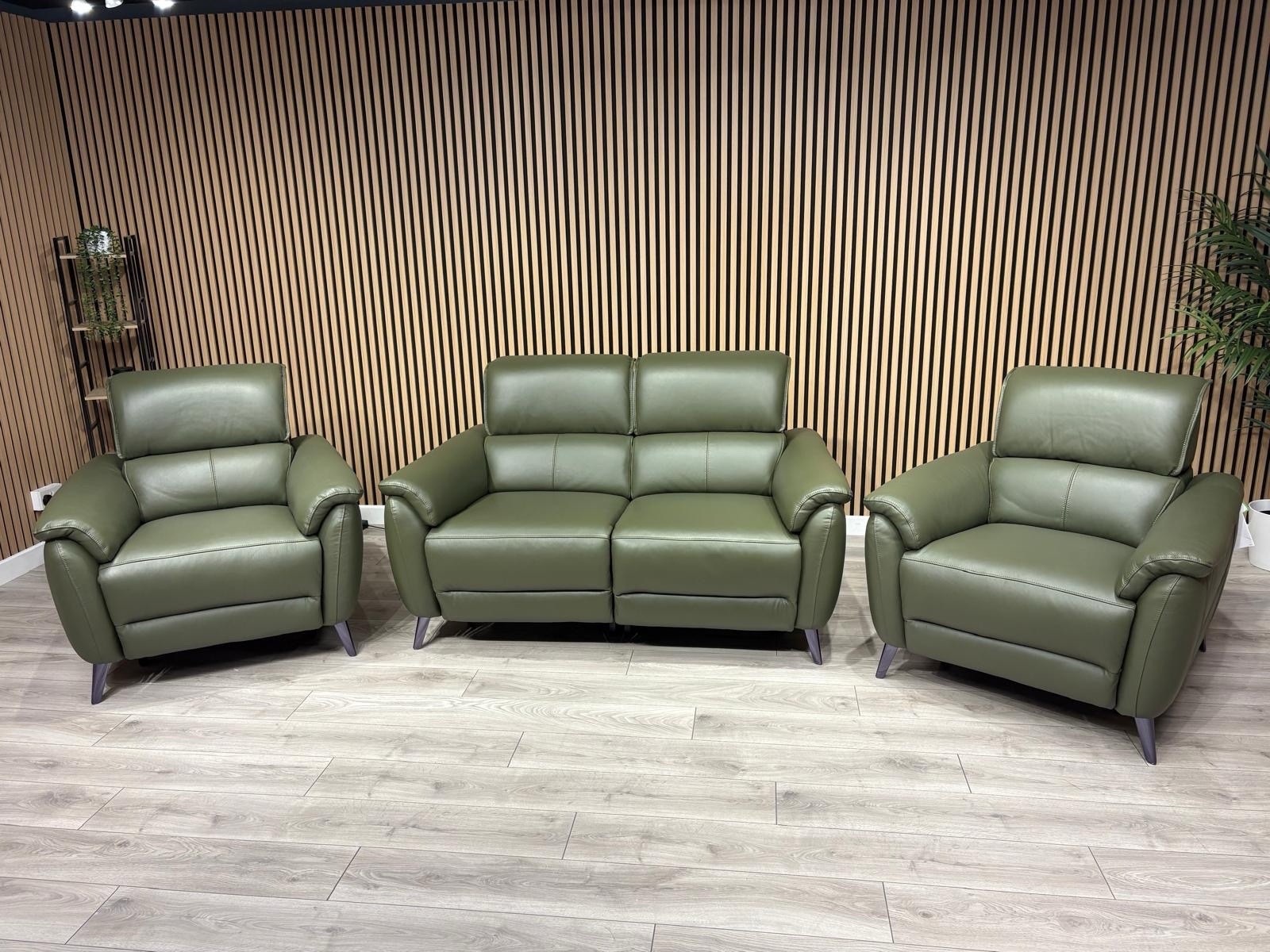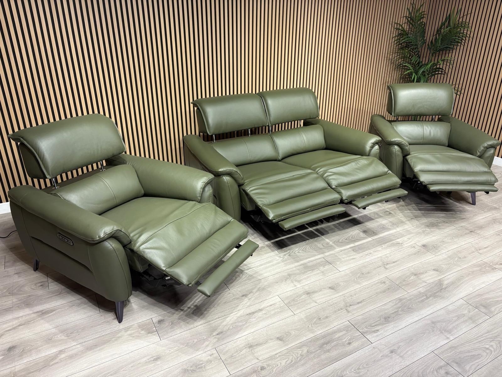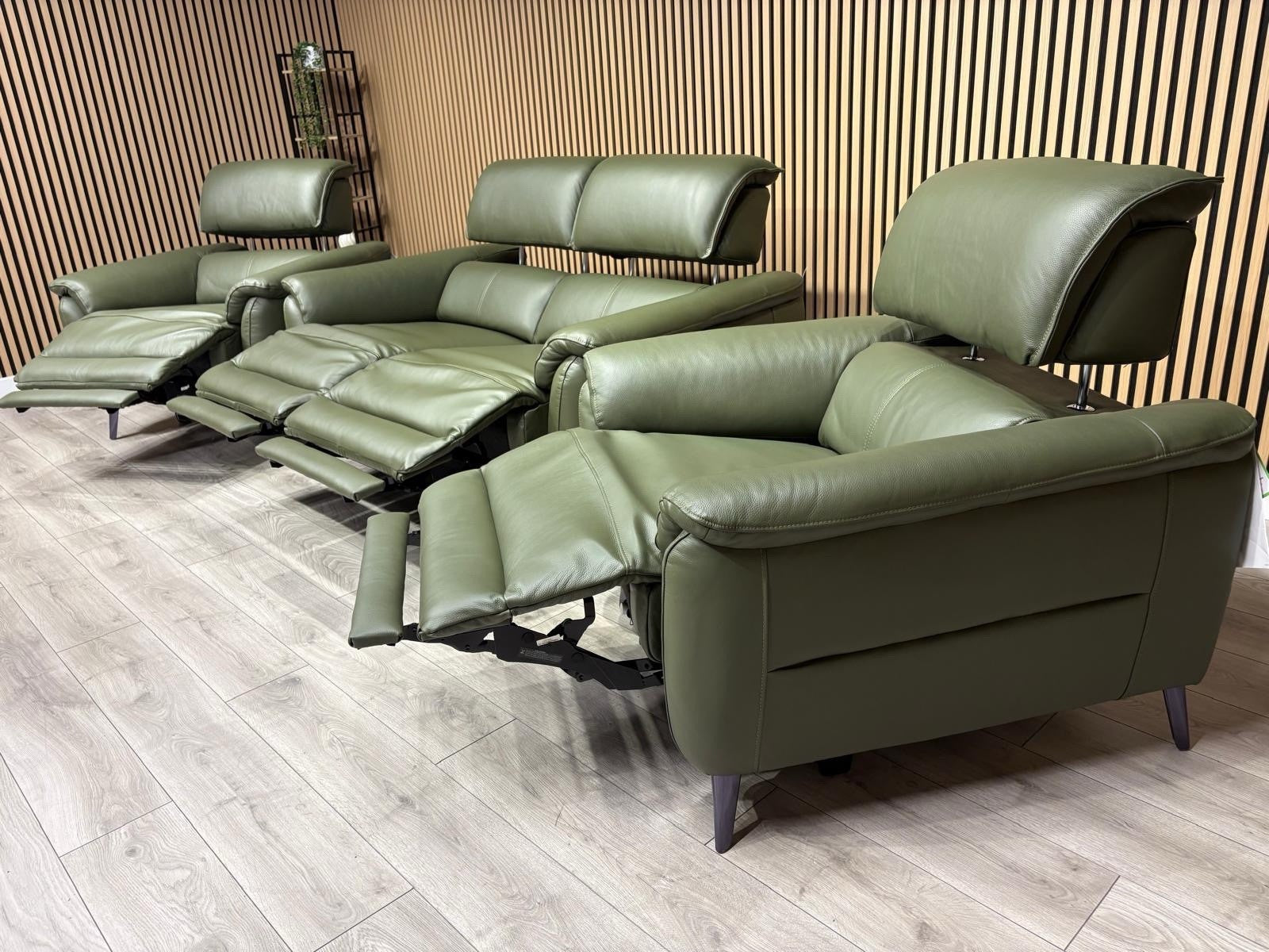 Furniture Village - JUDE Style Leather 2 Seater Sofa + 2 x Armchairs Set. ( Power Recliners and Power Telescopic Headrests )