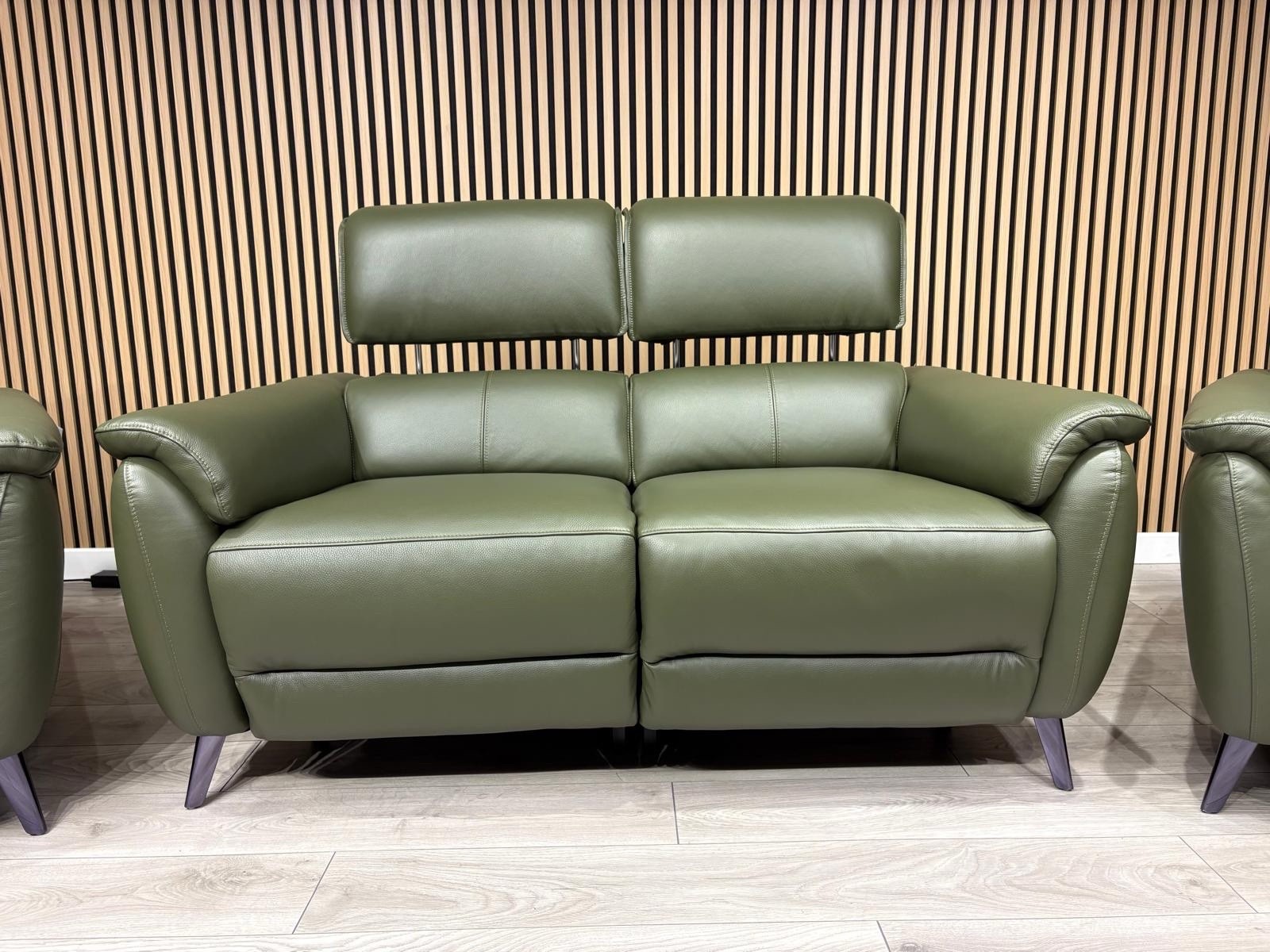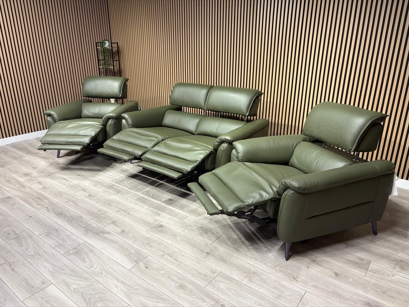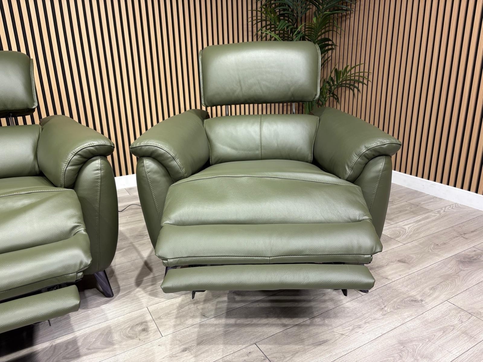 Furniture Village - JUDE Style Leather 2 Seater Sofa + 2 x Armchairs Set. ( Power Recliners and Power Telescopic Headrests )