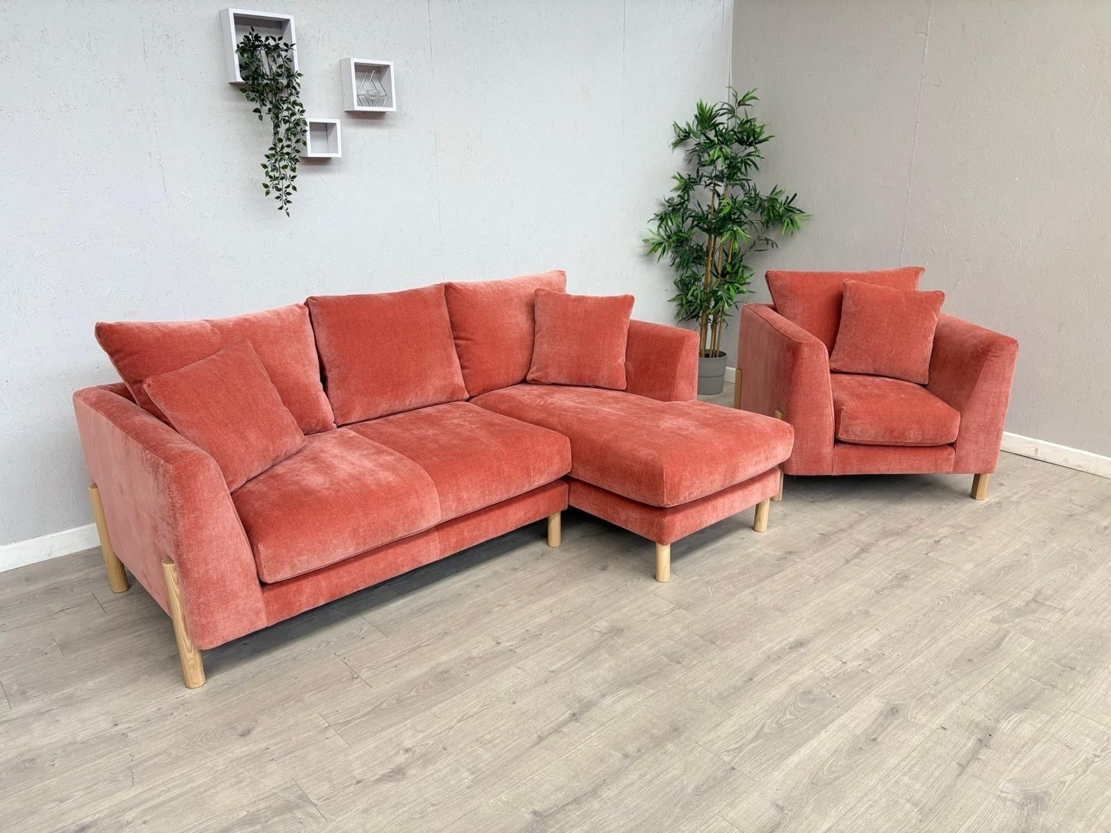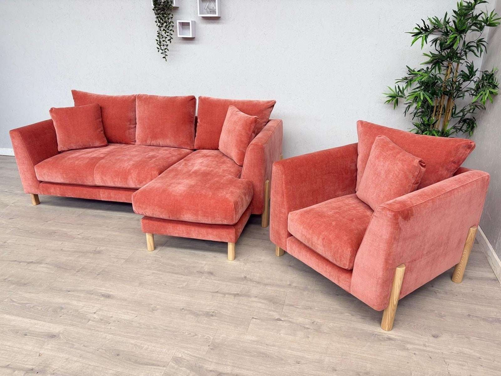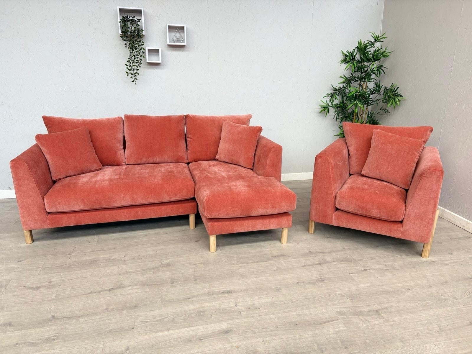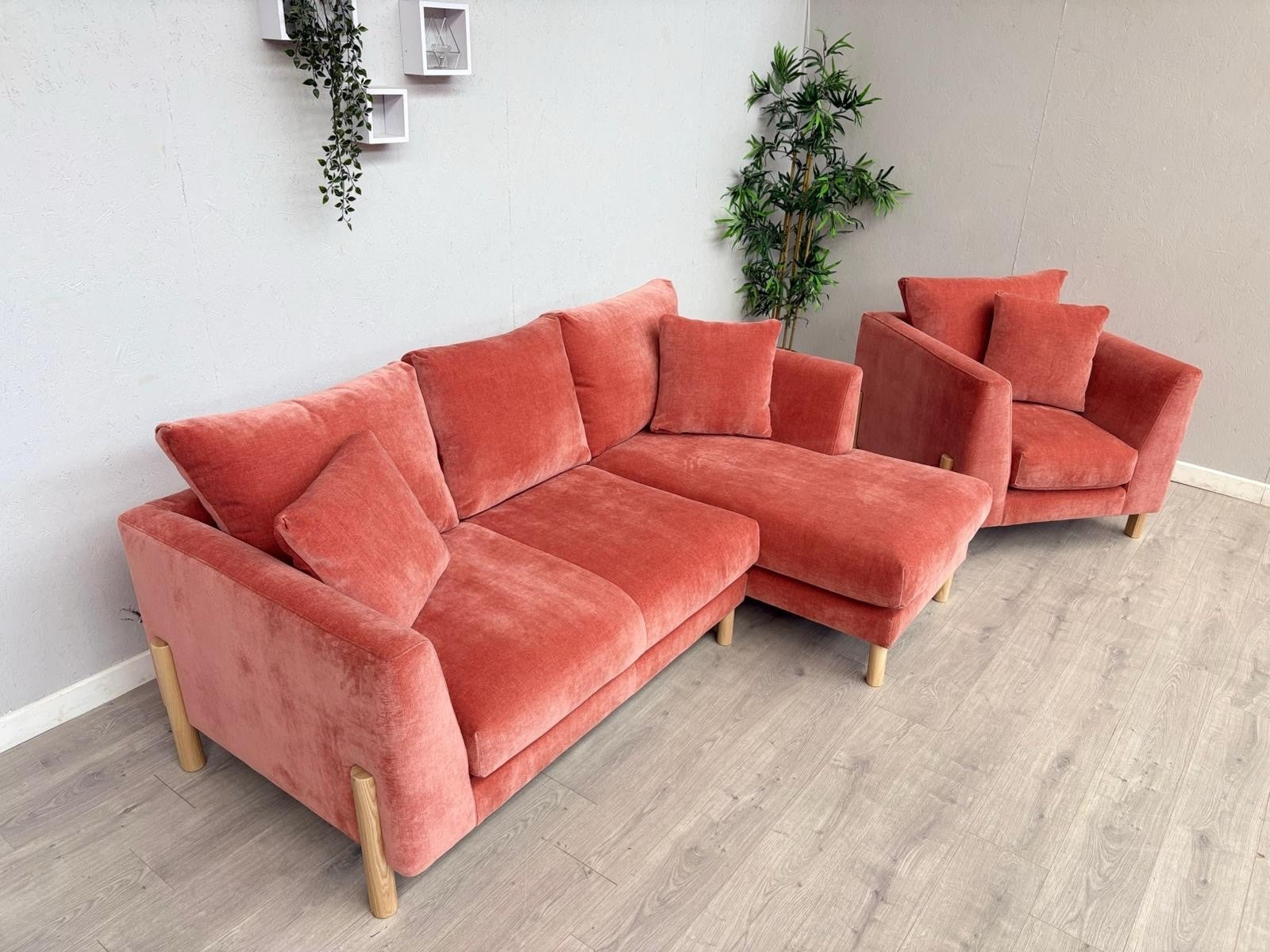 Habitat ASTON Fabric RHF Chaise Corner Sofa + Armchair, Papaya - RRP £2,350