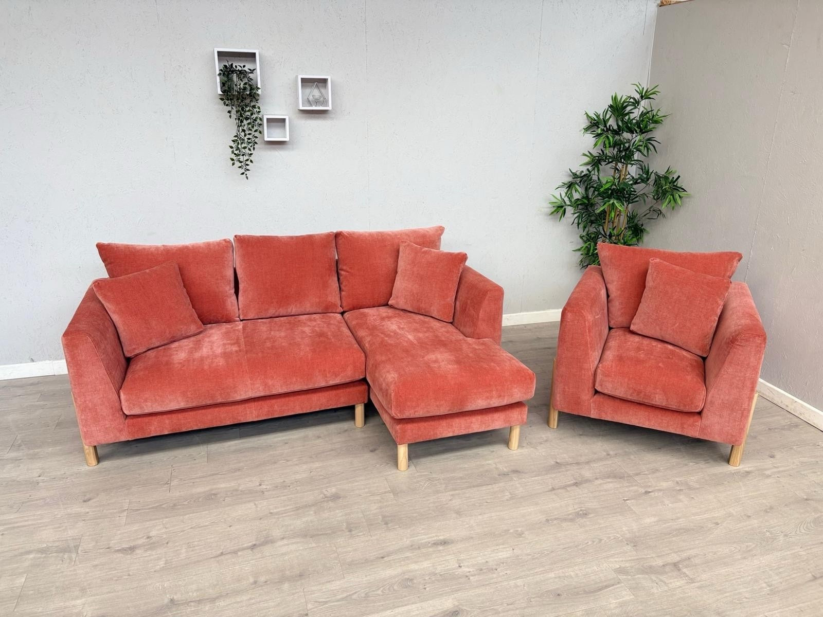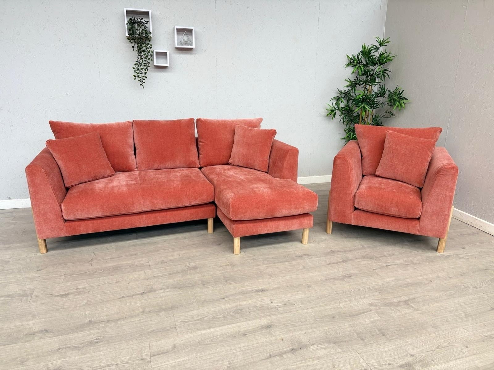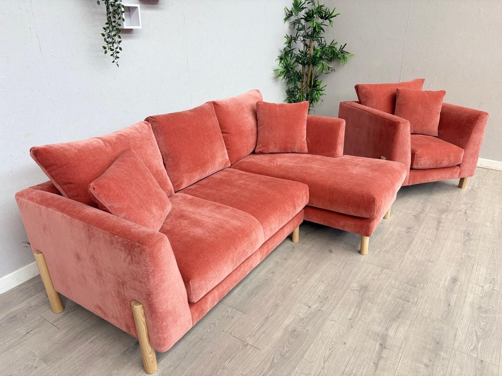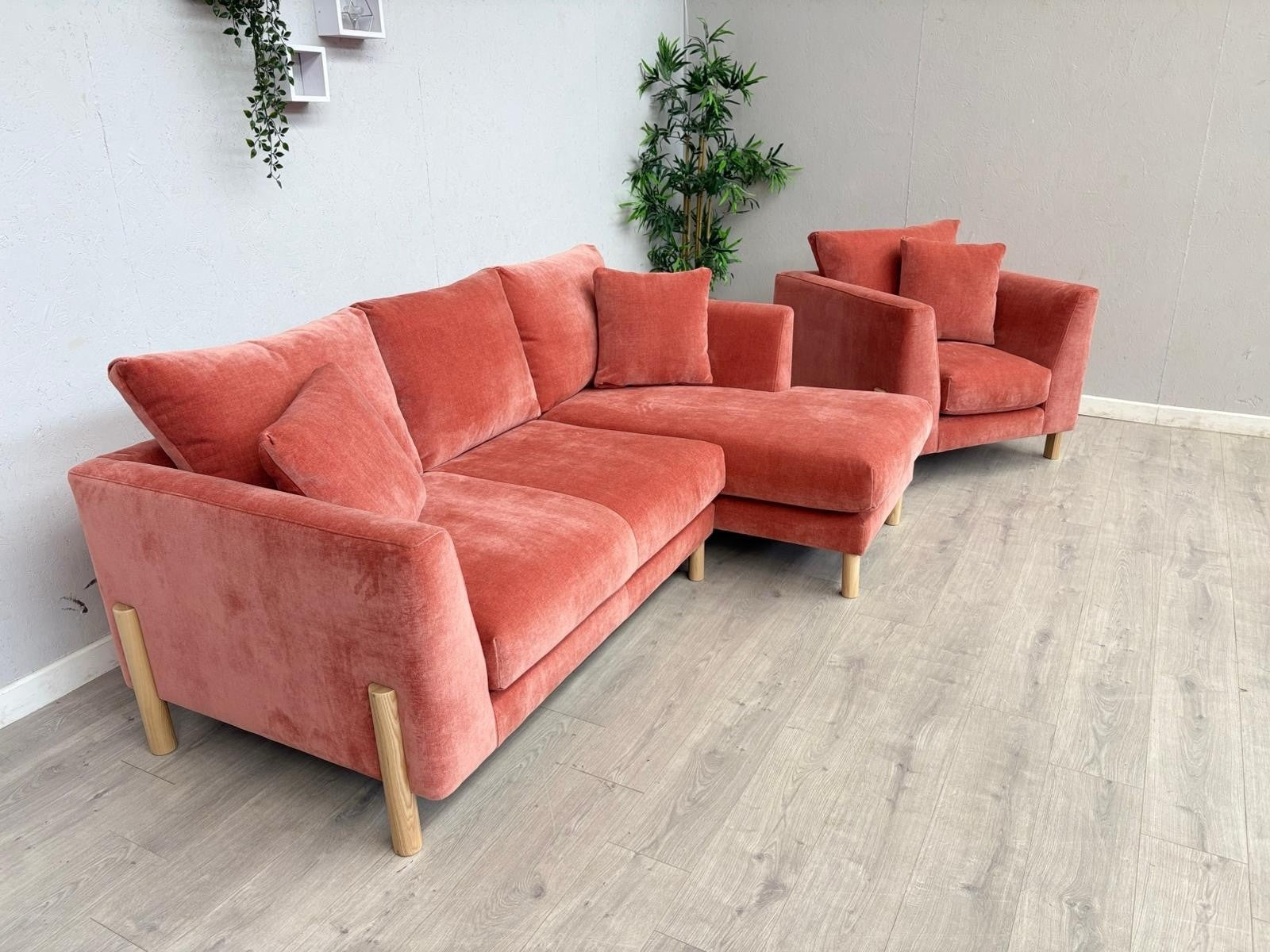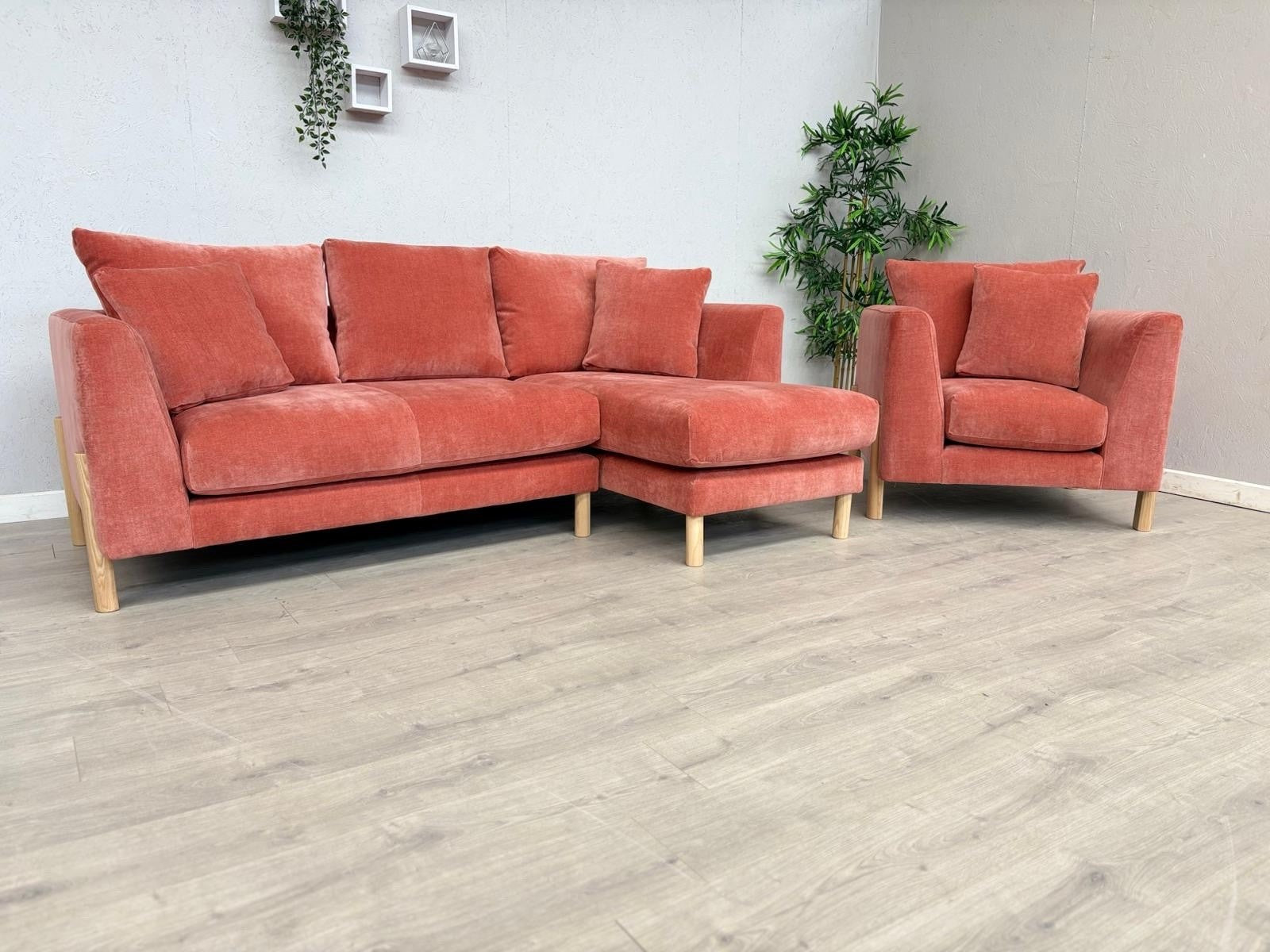 Habitat ASTON Fabric RHF Chaise Corner Sofa + Armchair, Papaya - RRP £2,350