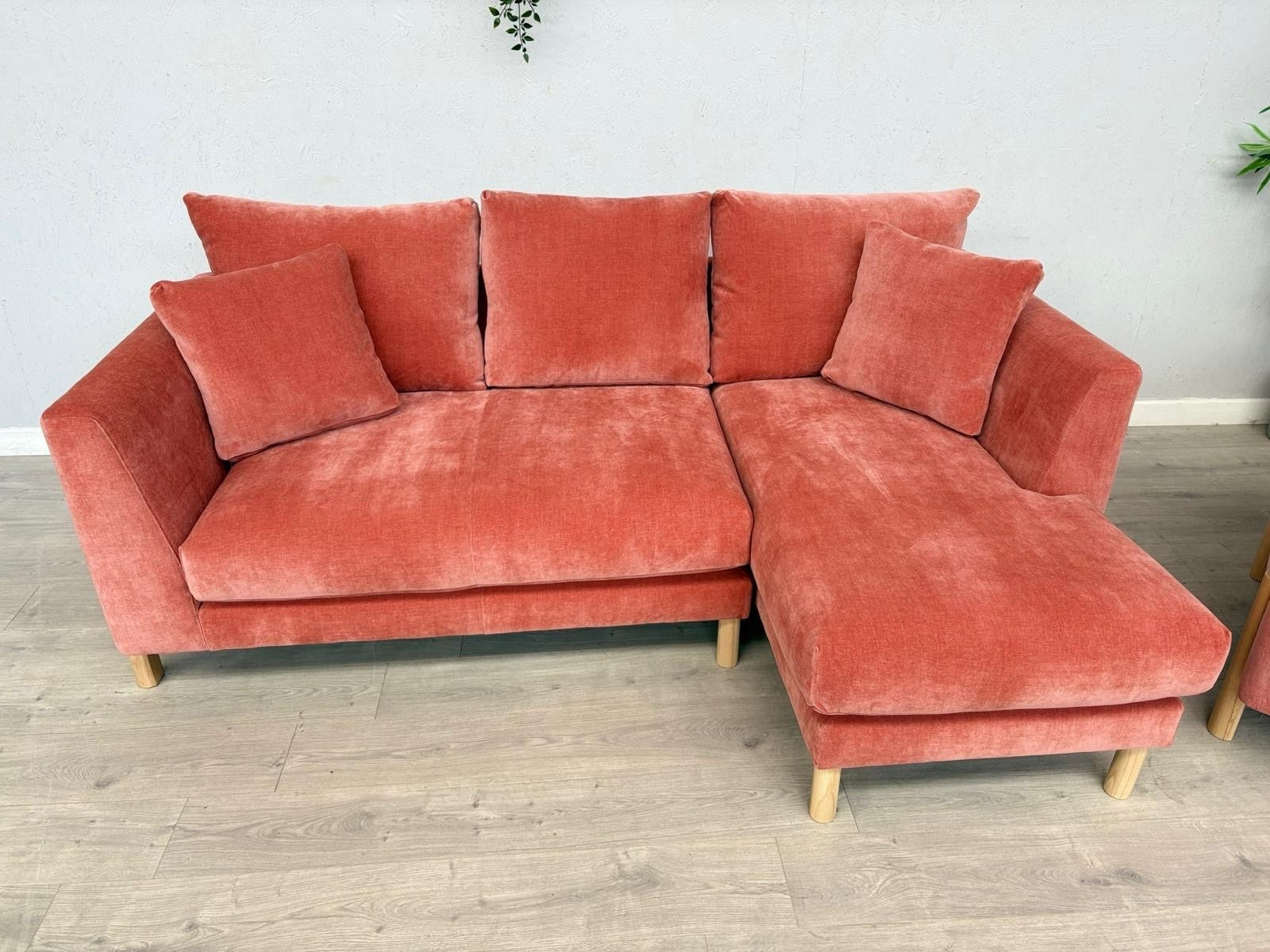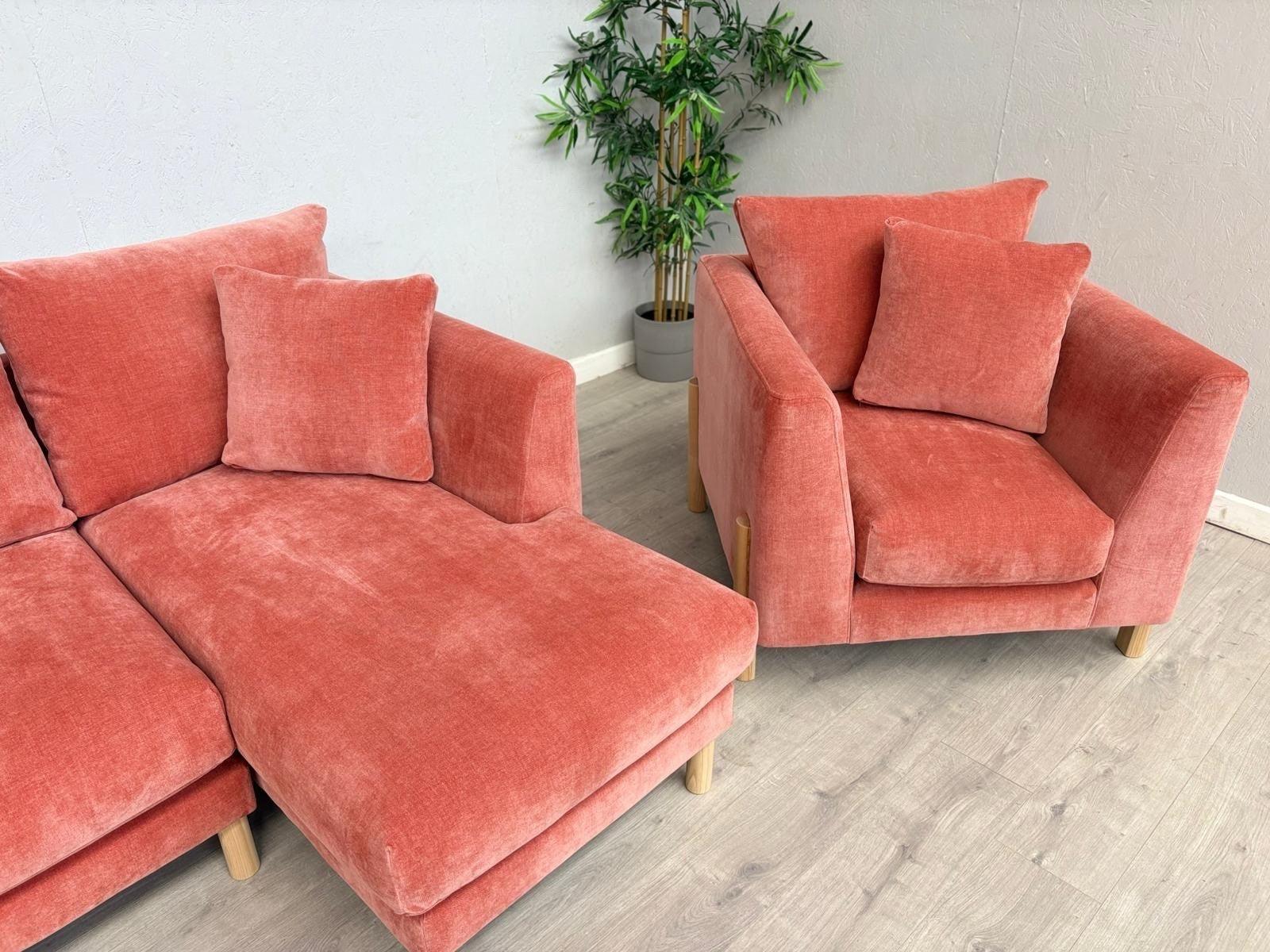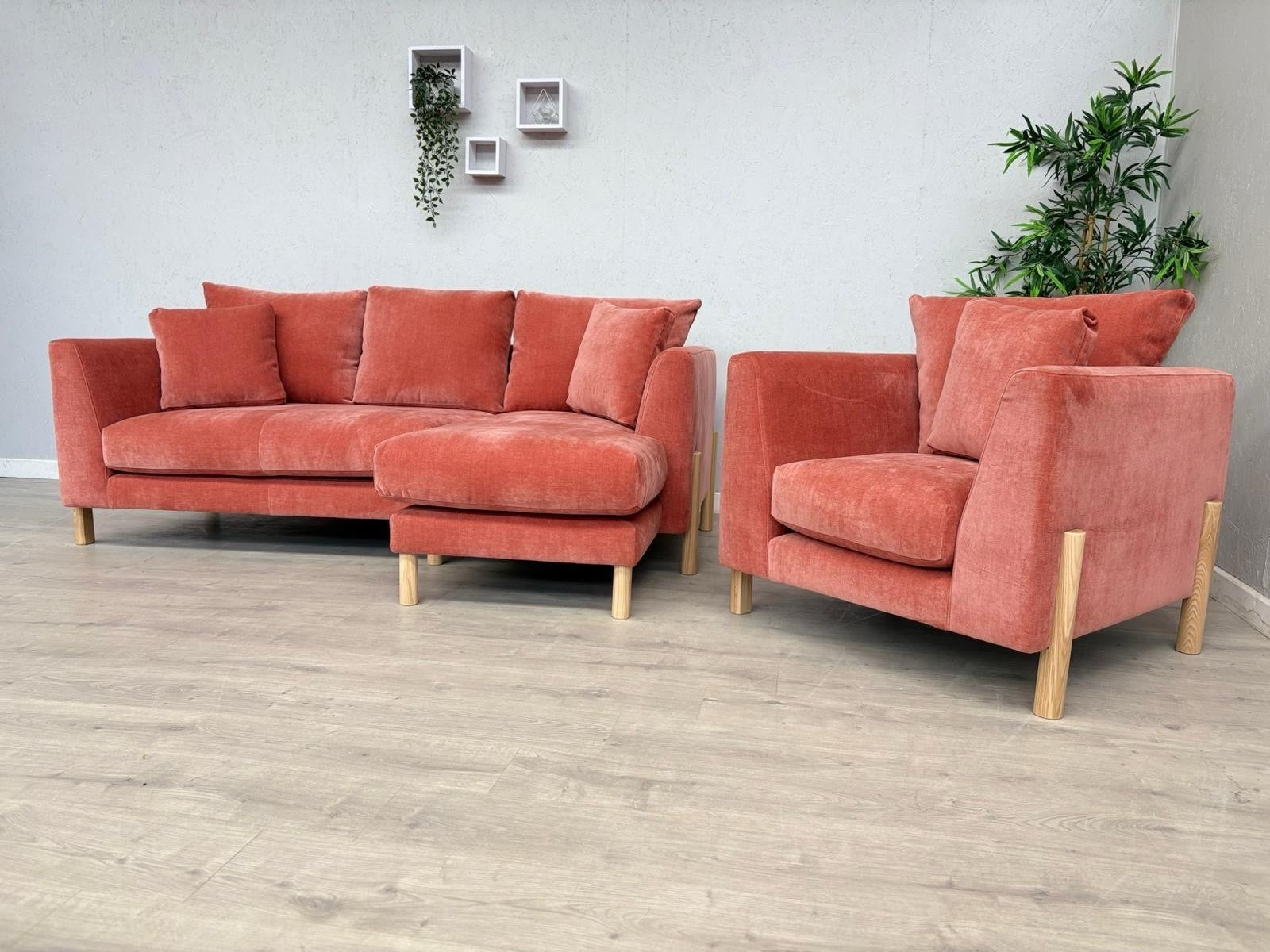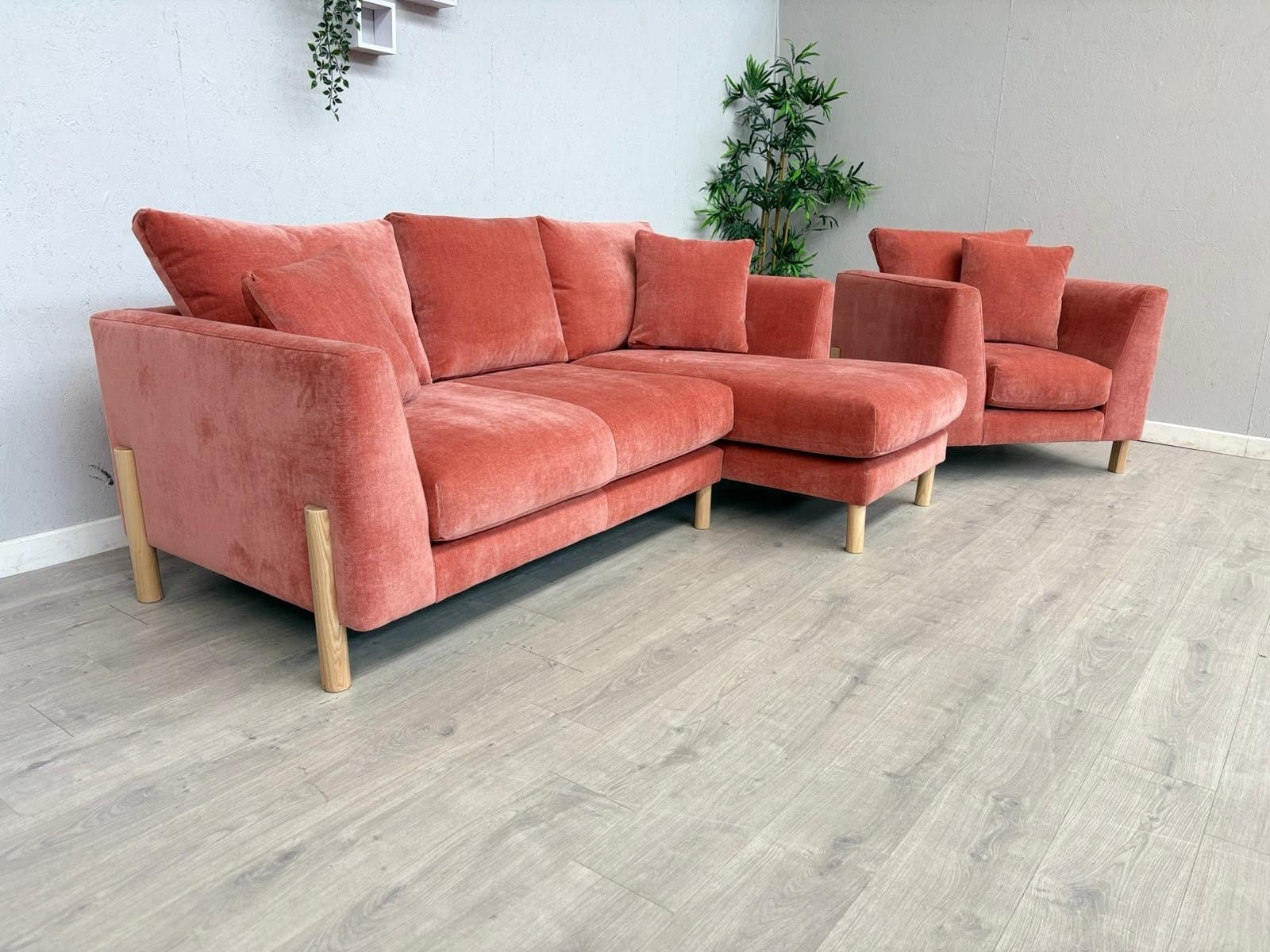 Habitat ASTON Fabric RHF Chaise Corner Sofa + Armchair, Papaya - RRP £2,350