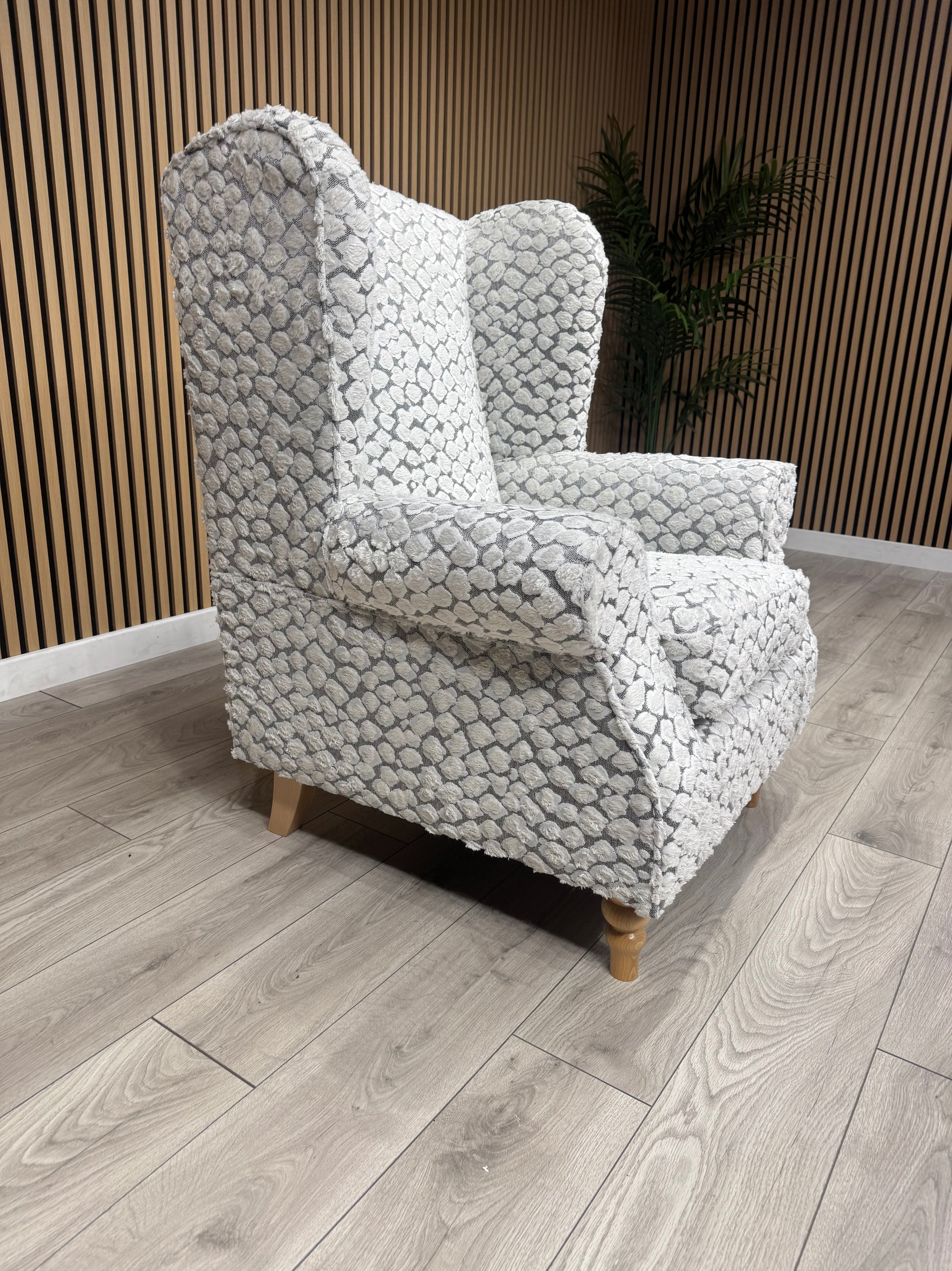 Habitat Fabric Wingback Chair / Armchair, Pebble- RRP £999