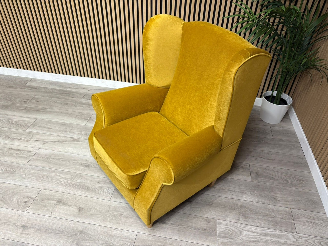 Habitat Fabric Wingback Chair / Armchair, Mustard - RRP £999