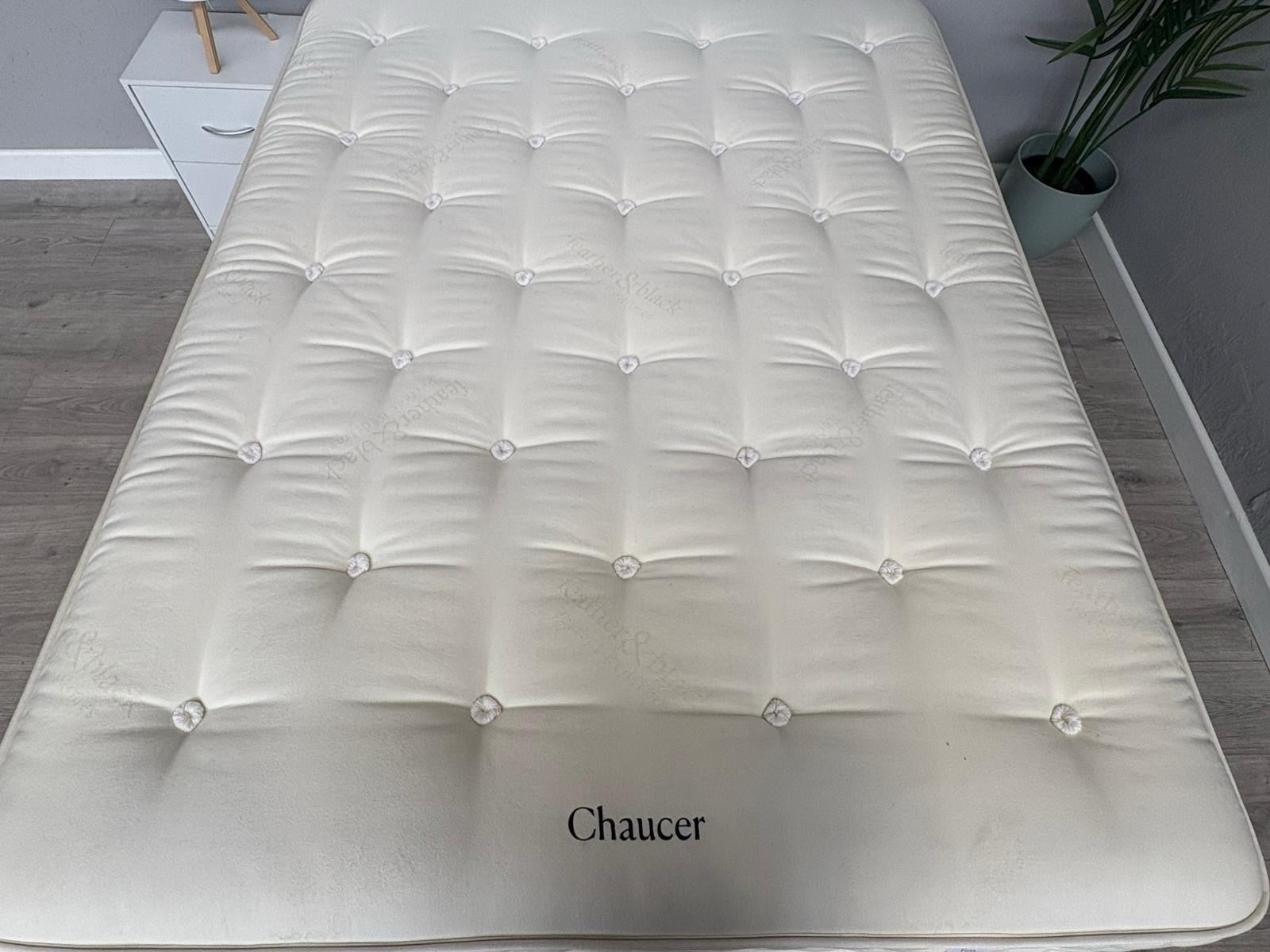 The handcrafted Chaucer mattress offers a beautifully opulent night's sleep, owing to the naturally temperature regulating properties of fully traceable wool, hemp and flax. Harrison Spinks' certified British wool offers a soft and springy sleeping surface, keeping you comfortable in any season.