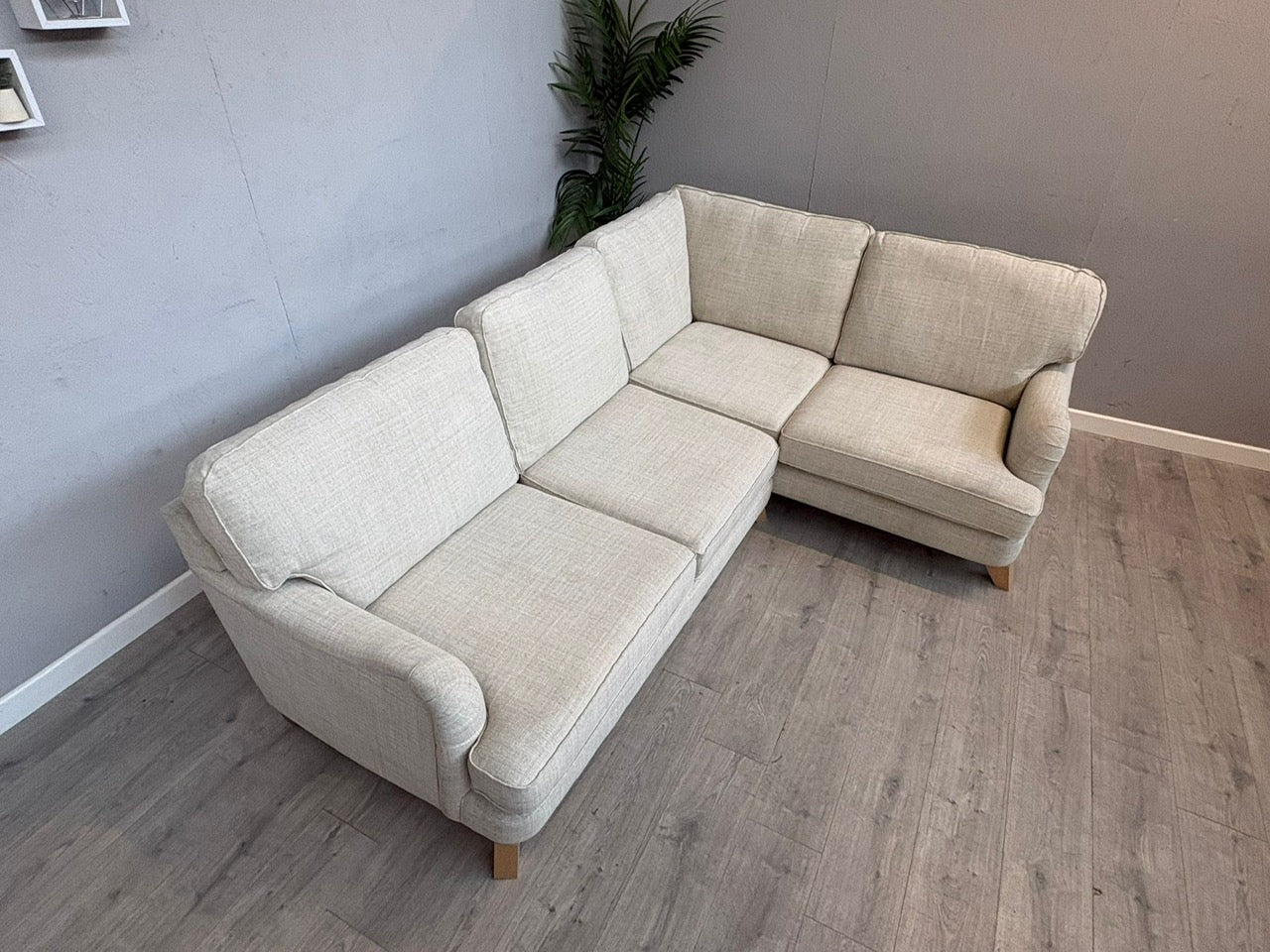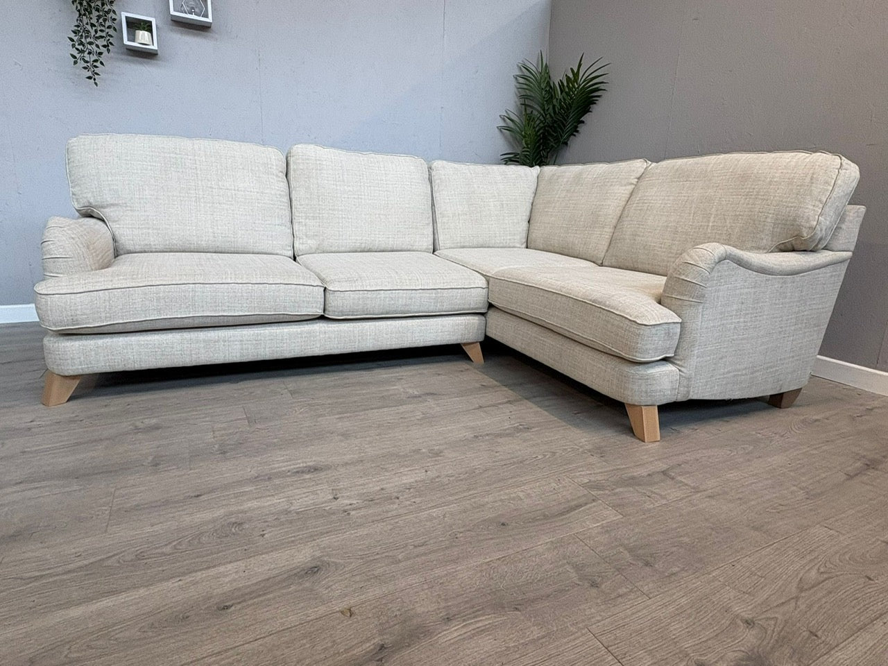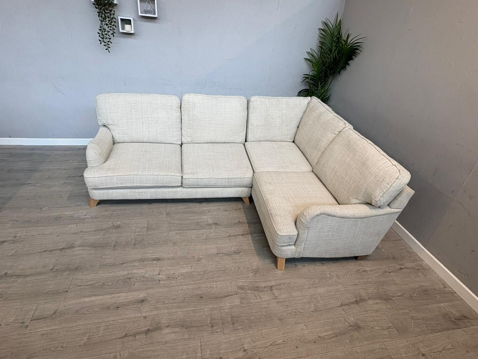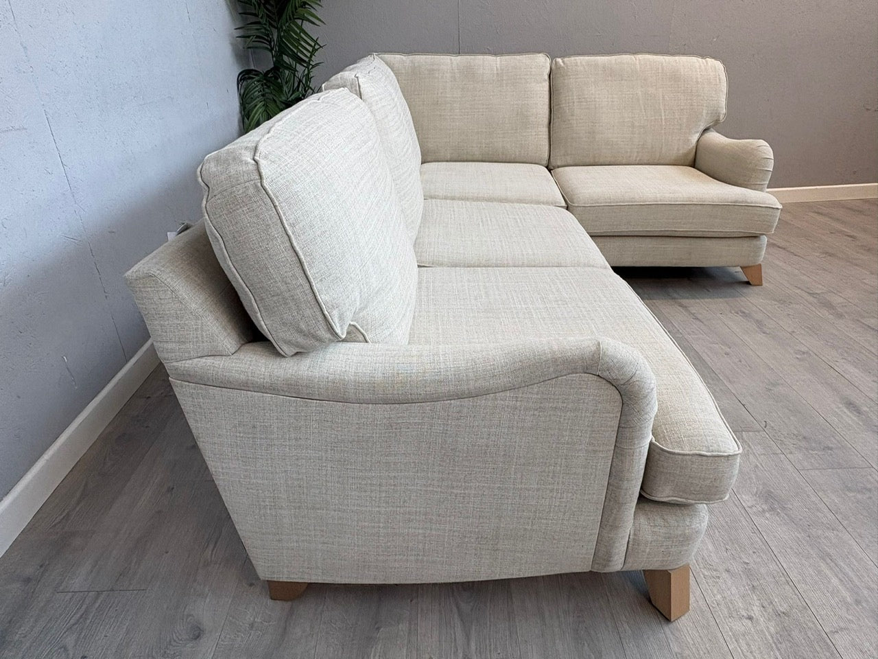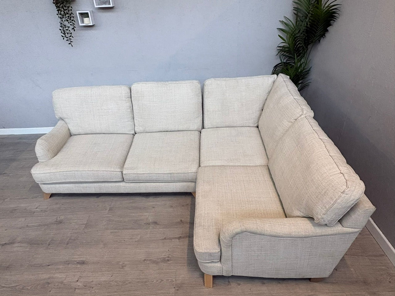 The Rochester Corner Sofa brings designer-quality comfort to your living room at an exceptional value. Originally from Marks & Spencer's premium collection, this L-shaped sectional features gracefully curved arms and natural upholstery that never goes out of style. The solid wooden base and reinforced frame guarantee years of reliable performance, while deeply cushioned seating delivers the support your body craves. Whether you're hosting gatherings or enjoying quiet evenings, this versatile piece adapts to your lifestyle whilst maintaining its sophisticated appeal.
