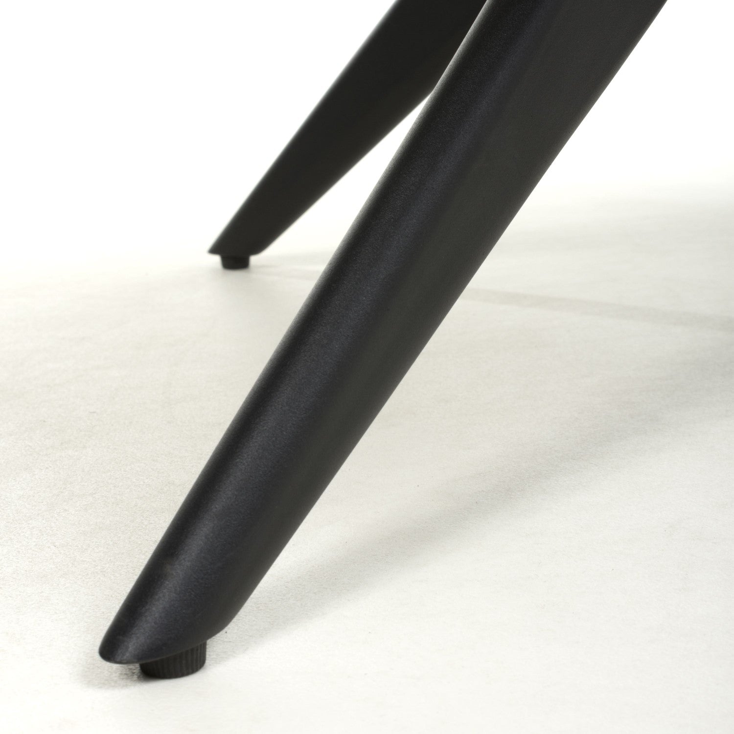 A generously proportioned dining chair, upholstered in plush, sumptuously textured mink fabric. Chunky padded cushions provide extreme support, enhanced by the ergonomic sloped backrest and gently curved rectangular armrests. Feature detailing includes ribbed edging and a rear vertical zip. The chair also swivels a full 360 degrees on its stylish black metal four leg tripod base. Assembly required. Sold in boxes of 2.