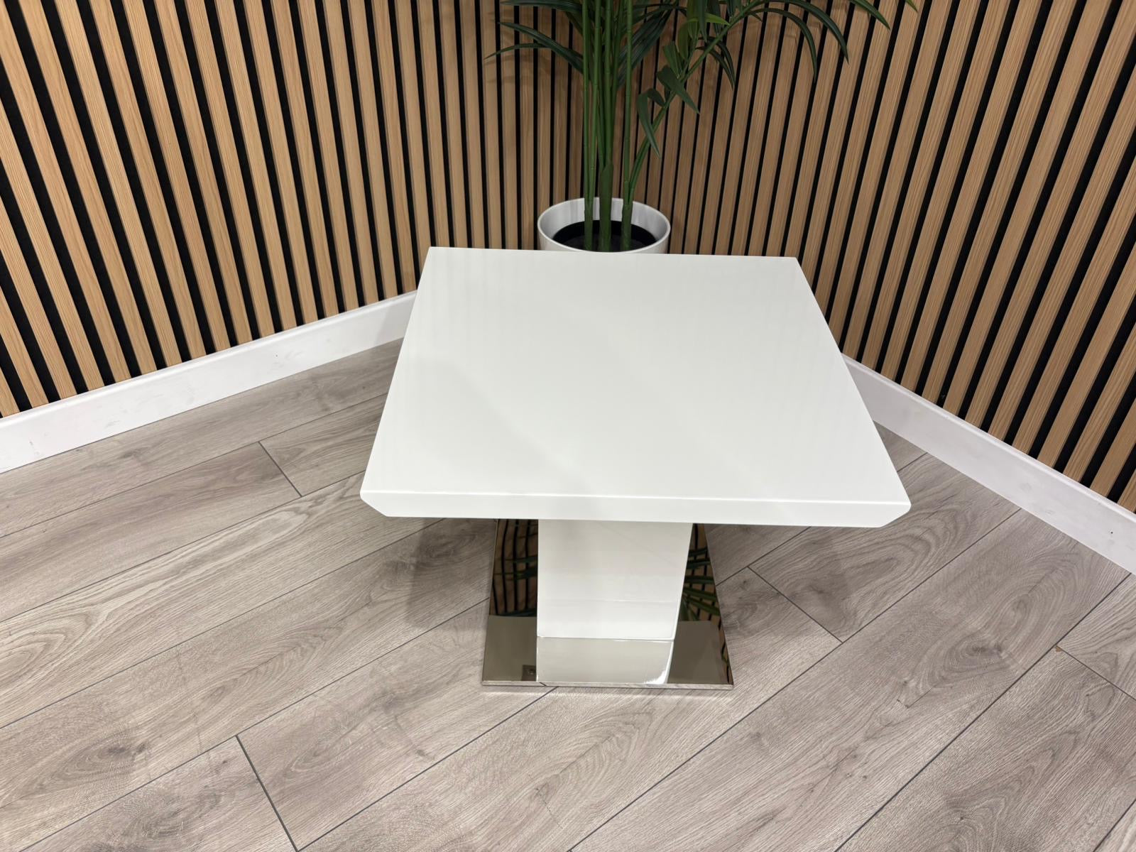 Elevate your living space with this striking Grigio gloss square lamp table. Its pristine white finish and contemporary square design create an instant focal point, while the compact footprint makes it perfect for any room. Ideal for displaying lamps, books, or decorative pieces, this versatile side table combines modern aesthetics with practical functionality. The high-gloss surface reflects light beautifully, brightening your interior whilst adding a touch of sophisticated style. A smart investment for those seeking quality furniture that doesn't compromise on elegance.