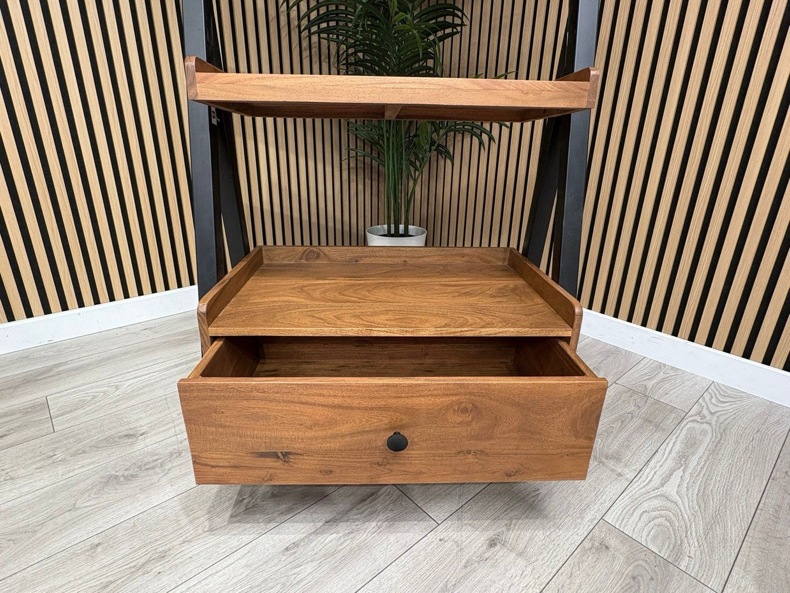 The New Bronx Ladder Bookcase Display Unit is a modern and stylish storage solution, perfect for showcasing books, décor, and personal items. Made from acacia wood, it features a unique ladder design with multiple shelves for ample d isplay space. Its rich wood finish and contemporary look make it a versatile addition to both modern and traditional interiors, adding both elegance and practicality to any room.
