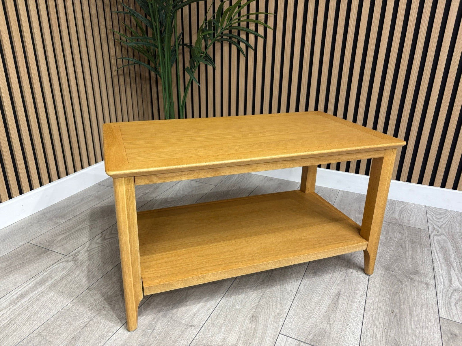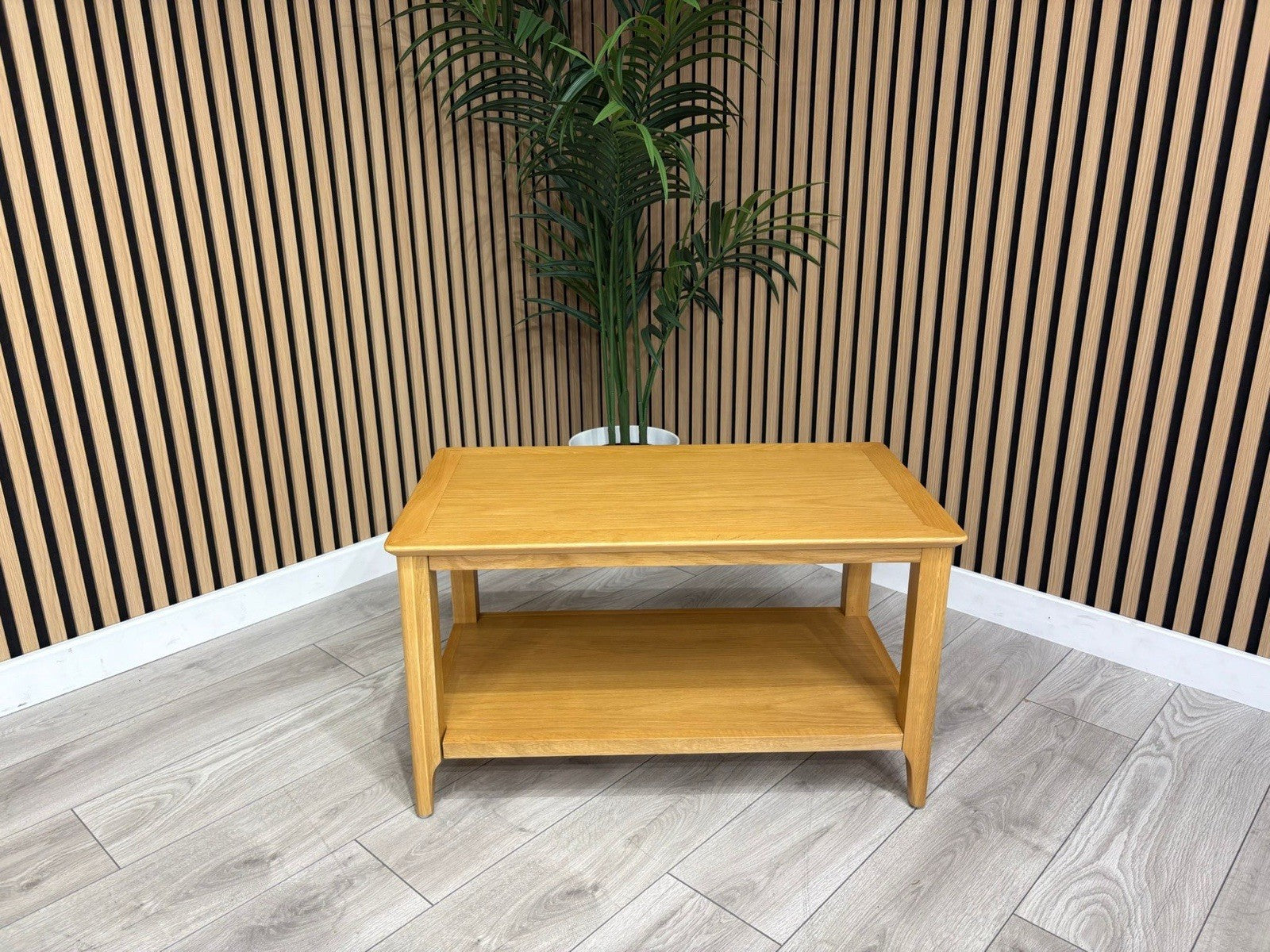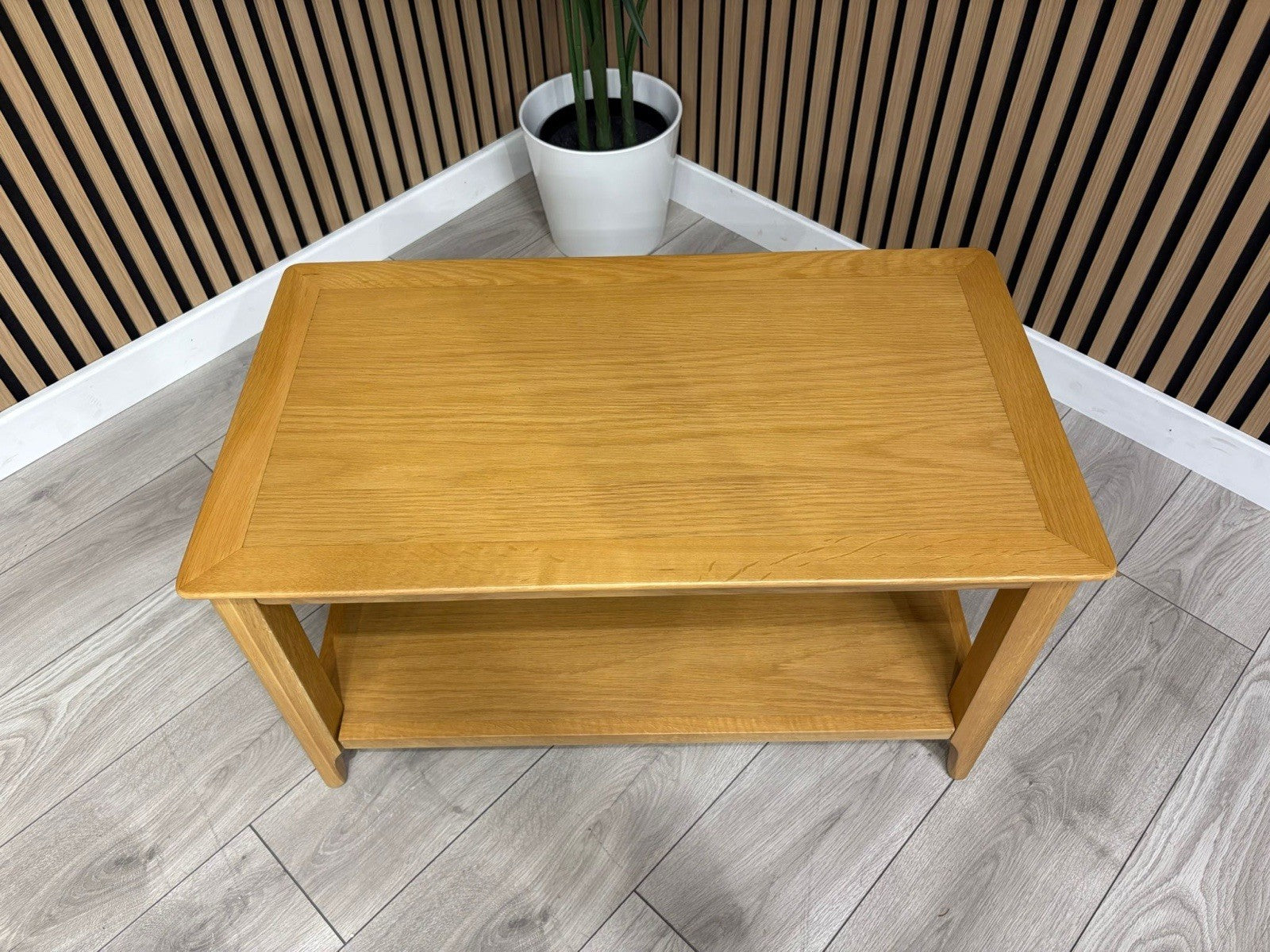 The Saxby Coffee Table with Shelf is a stylish and practical addition to your living room. Crafted with a sleek design, it features a spacious tabletop for drinks and décor, along with a lower shelf for extra storage or display. Its timel ess finish and versatile style make it a perfect fit for both modern and traditional interiors, offering both elegance and functionality.
