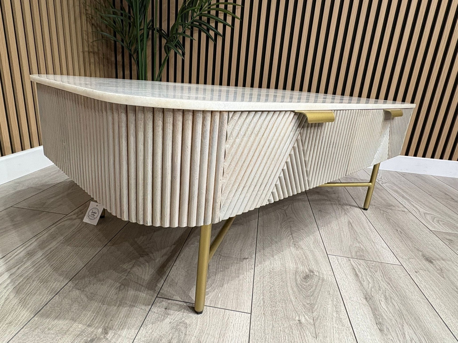The Amiri range blends luxury and elegance with its smooth marble surfaces and rich mango wood, complemented by sleek gold iron. Detailed fluted designs add a refined touch, combining natural textures with sophisticated metallic accents for a timeless, modern appeal.
