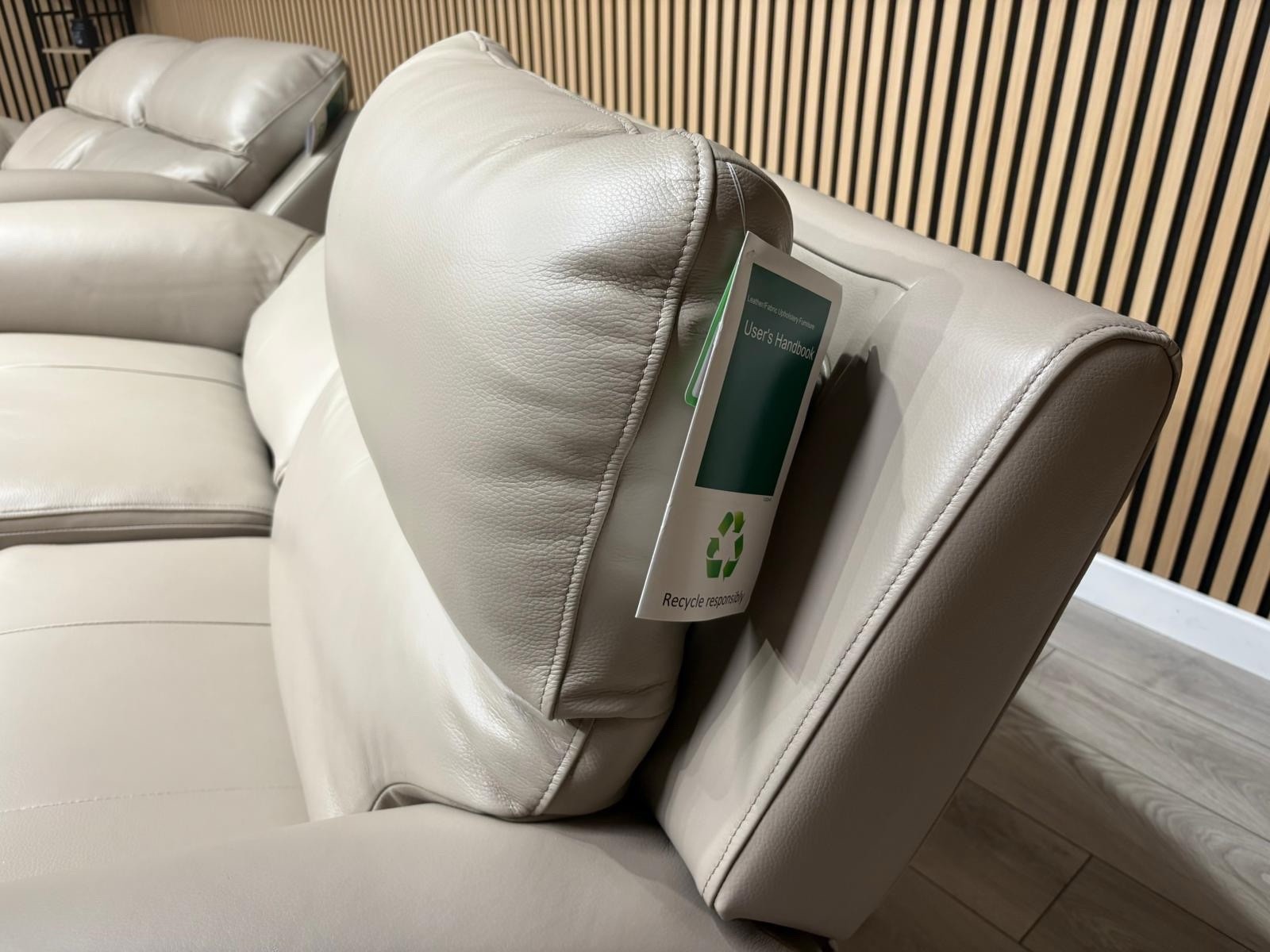 Maximise comfort in your living space with our Ezra modular 2 seater electric recliner sofa, featuring power headrests and lumbar support. Designed for unparalleled relaxation, the adjustable headrests and lumbar function allow you to find the perfect position for kicking back after a long day. Pocket-sprung seats and the Oyster leather combine perfectly to provide ultimate sink-in comfort.