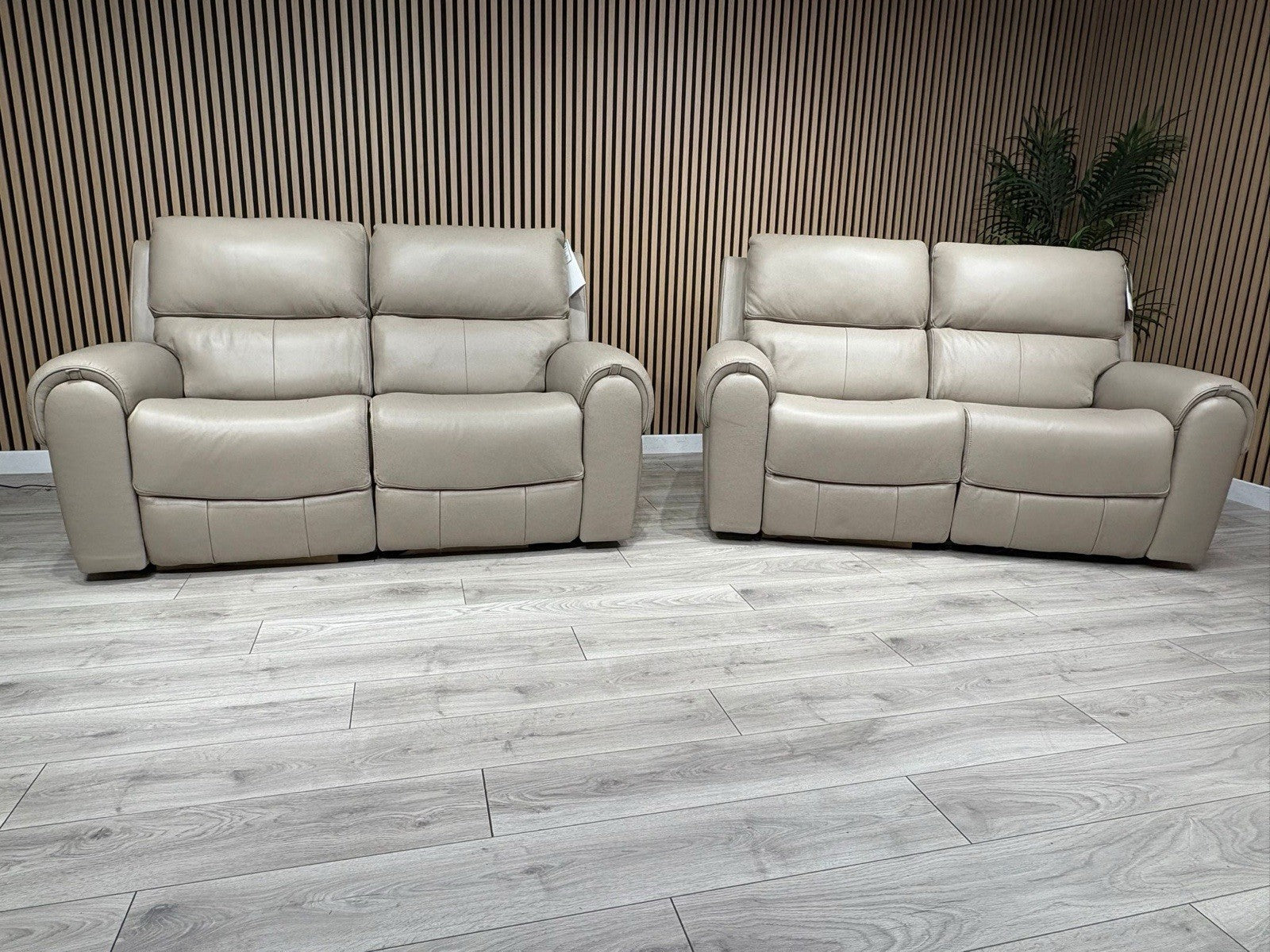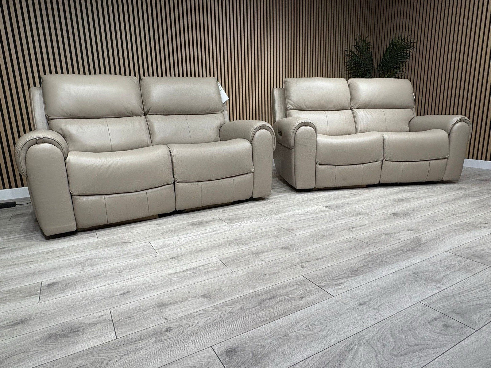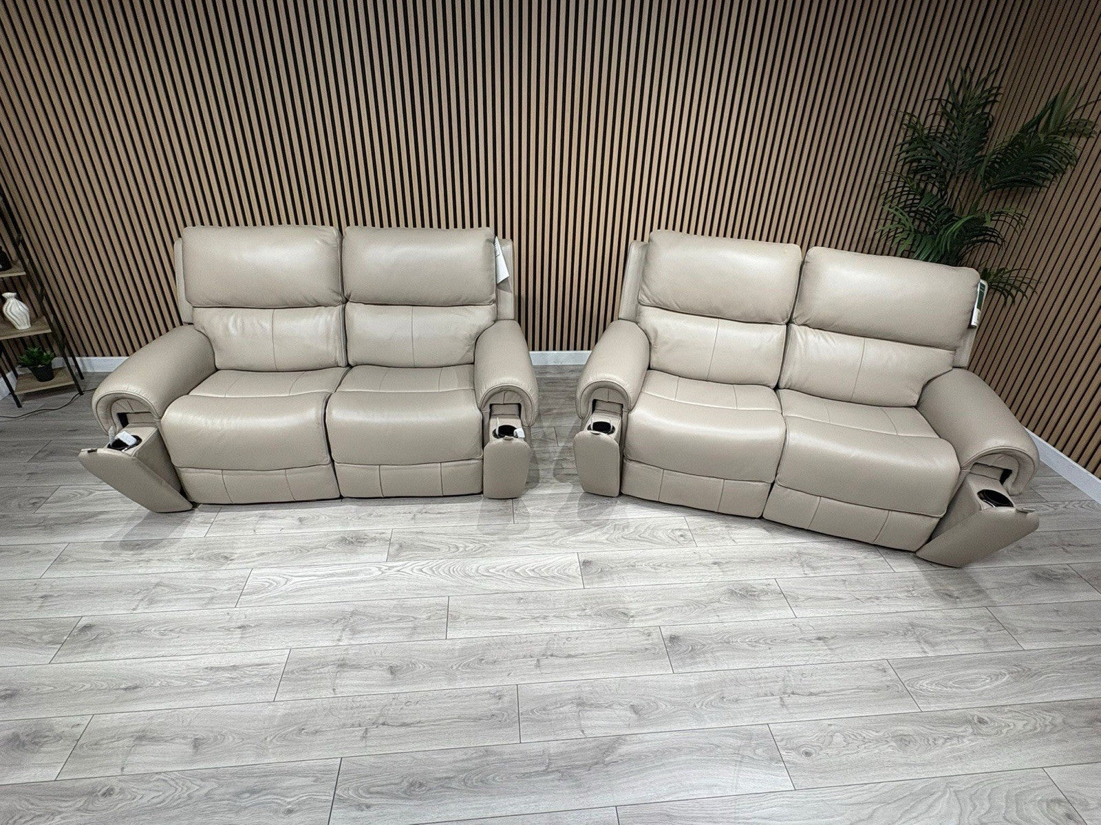 Oak FurnitureLand - EZRA Leather 2 x 2 Seater Power Recliner Sofa Set. RRP £5000