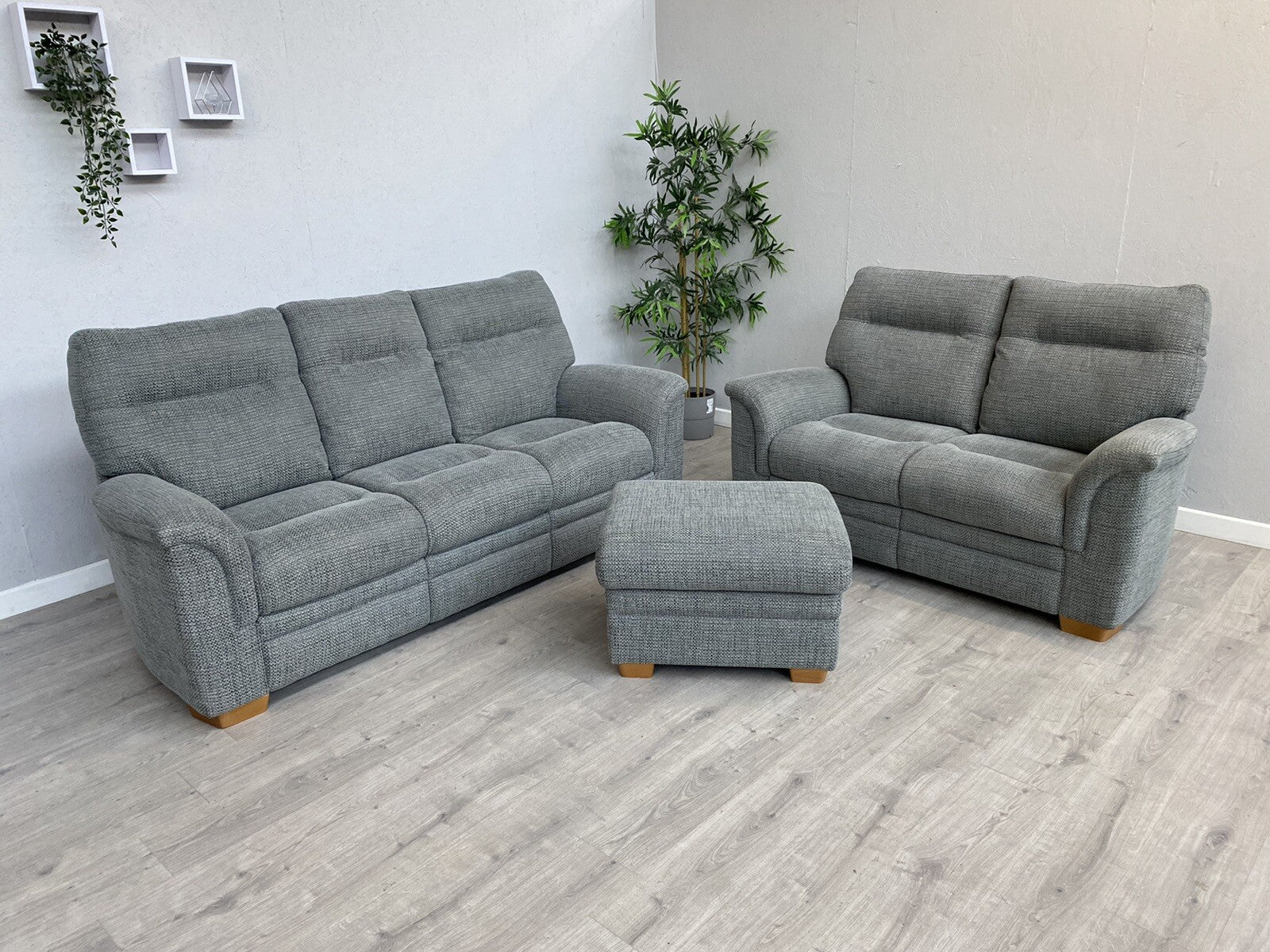 Parker Knoll - HUDSON 23 Fabric 3 Seater + 2 Seater Sofas + Stool - RRP £5,215