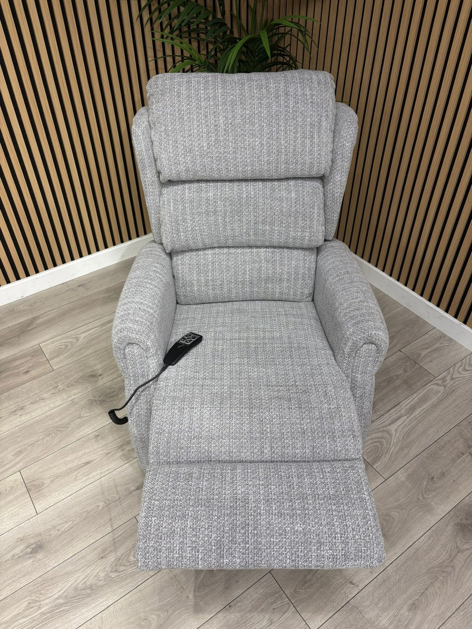 Rise & Recline Armchair Experience ultimate comfort with this elegantly designed chair featuring scrolled arms, a waterfall back, and refined wings. The Premier Riser Recliner mechanism—our signature system engineered in the UK—delivers exceptional versatility with four independent motors controlling the backrest, leg rest, adjustable lumbar support, and headrest. Achieve unlimited positions tailored to your needs, whether reading, relaxing, or sleeping. The extended 2″ footrest ensures complete head-to-toe support for a truly personalised experience. Remote-controlled for effortless adjustment, this chair combines timeless style with innovative comfort technology.