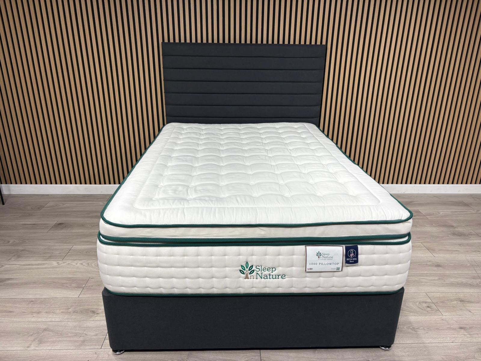 Sleep Nature 1000 Pillow Top Divan Bed Set + Headboard. Available in all sizes