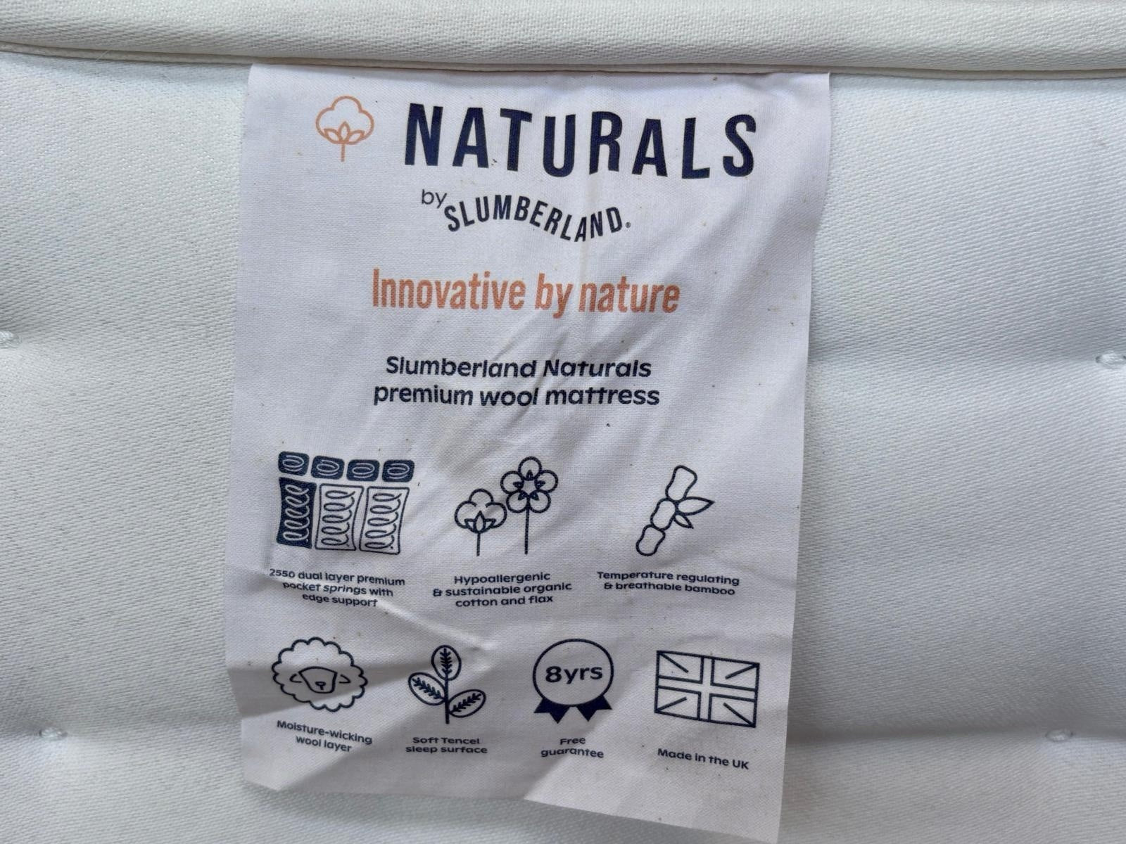 Slumberland NATURALS PREMIUM WOOL 4ft 6 Double Mattress, Firm - RRP £1,099