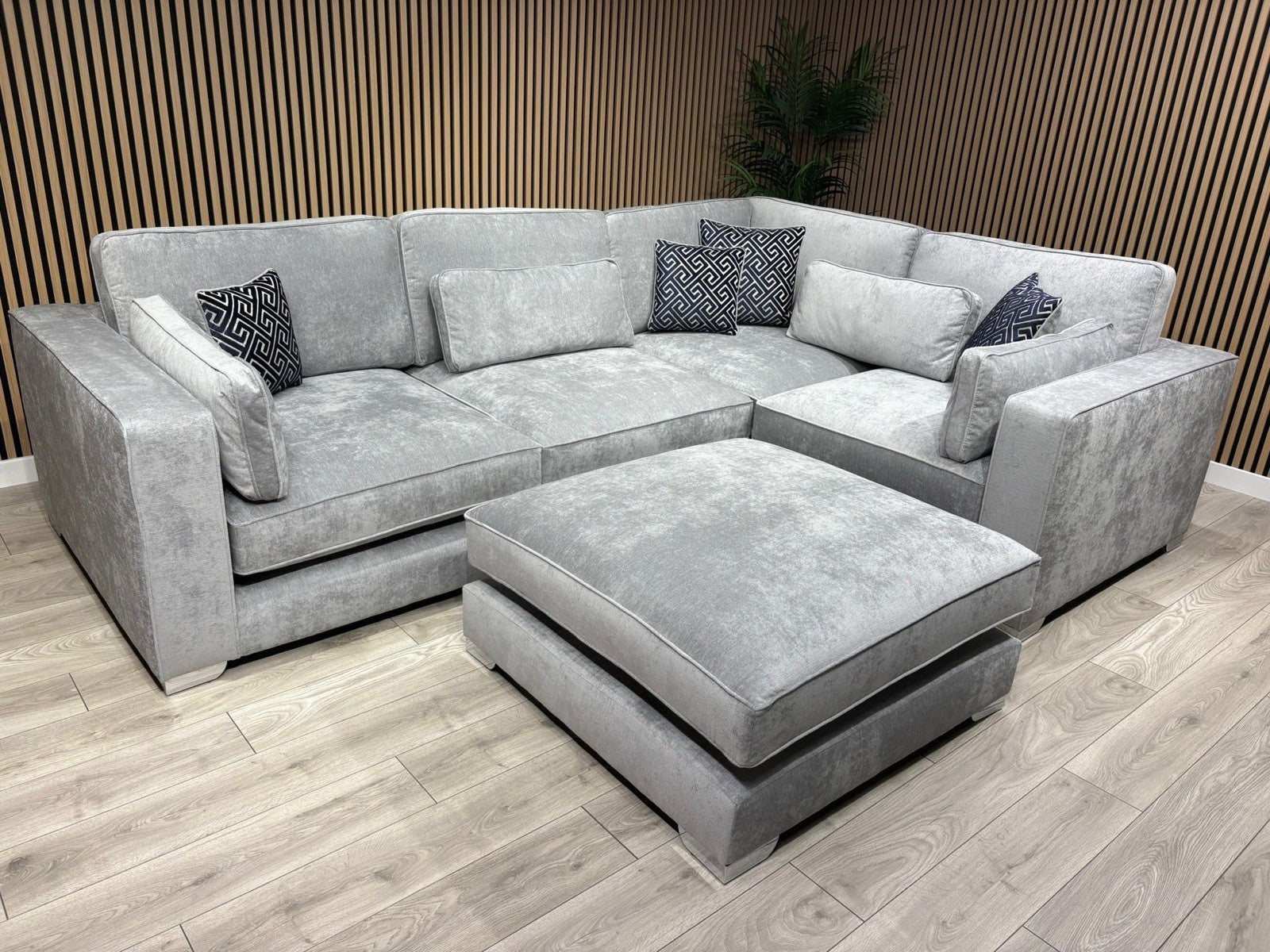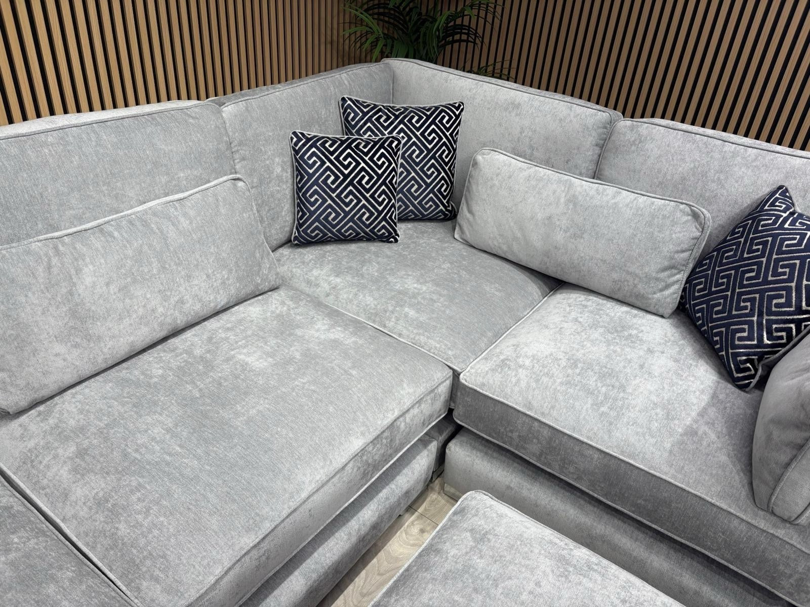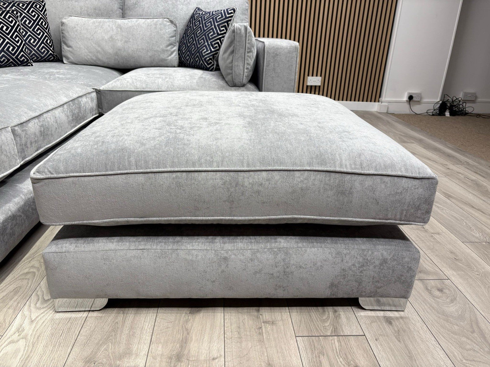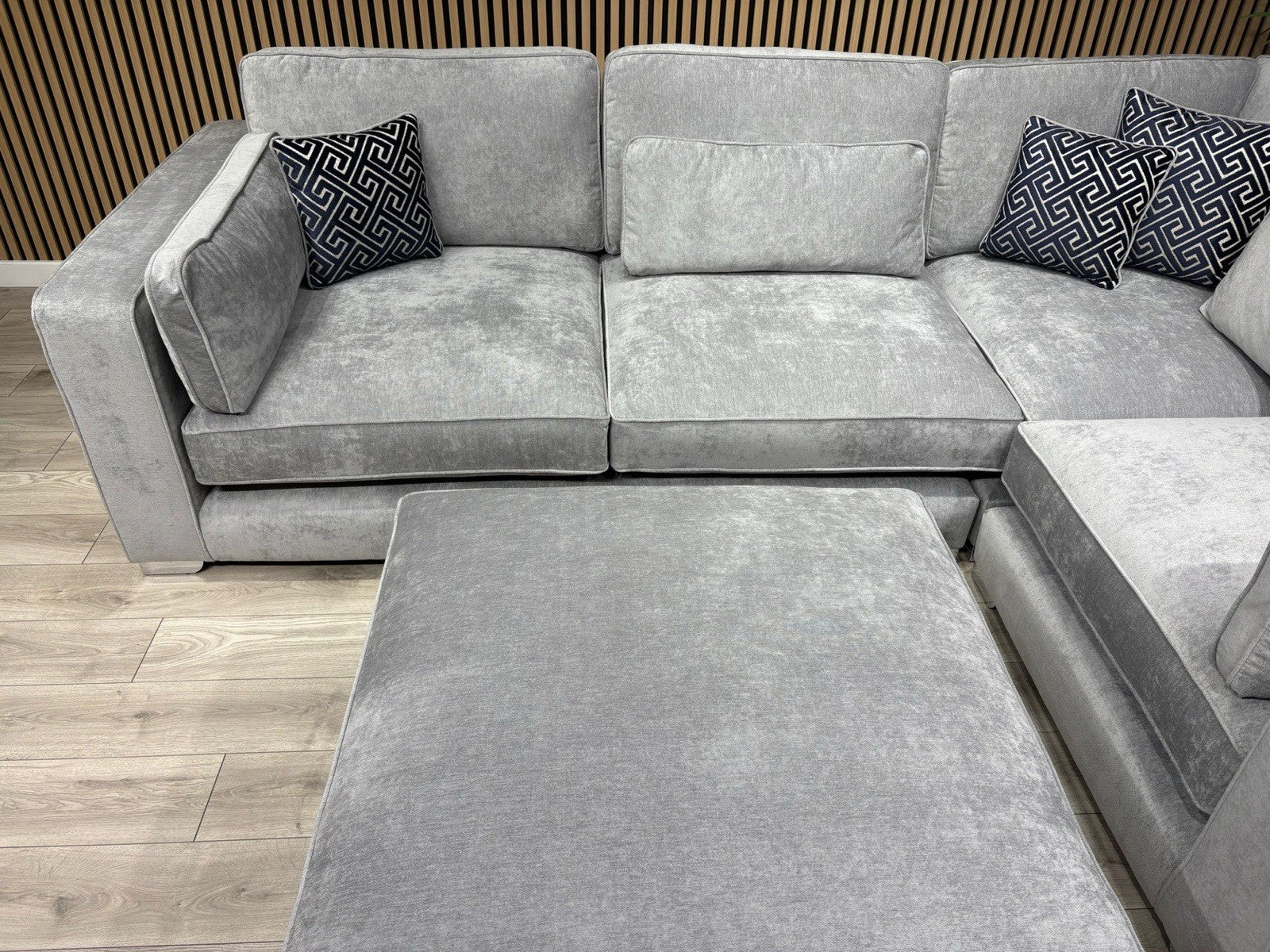 Sofology CAVALLI Style Fabric 3 Corner 1.5 Sofa + Footstool, Silver - RRP £5398