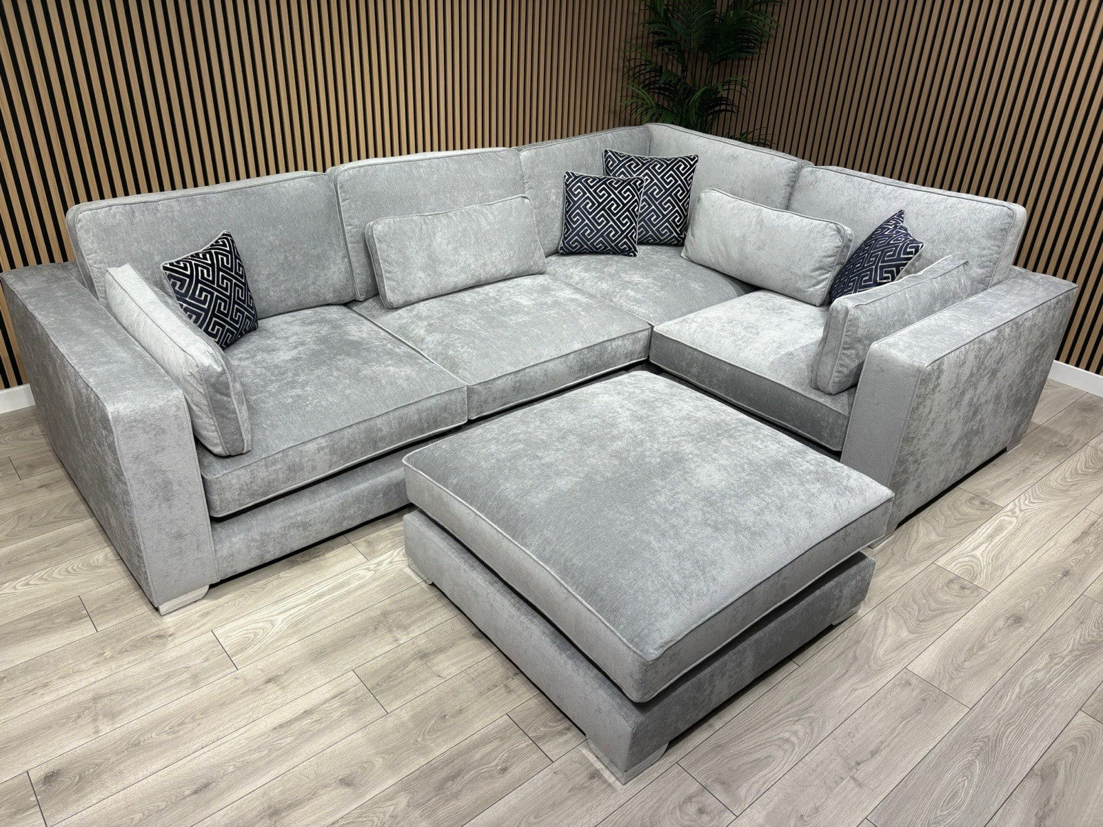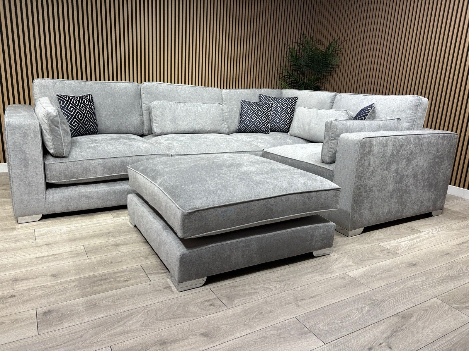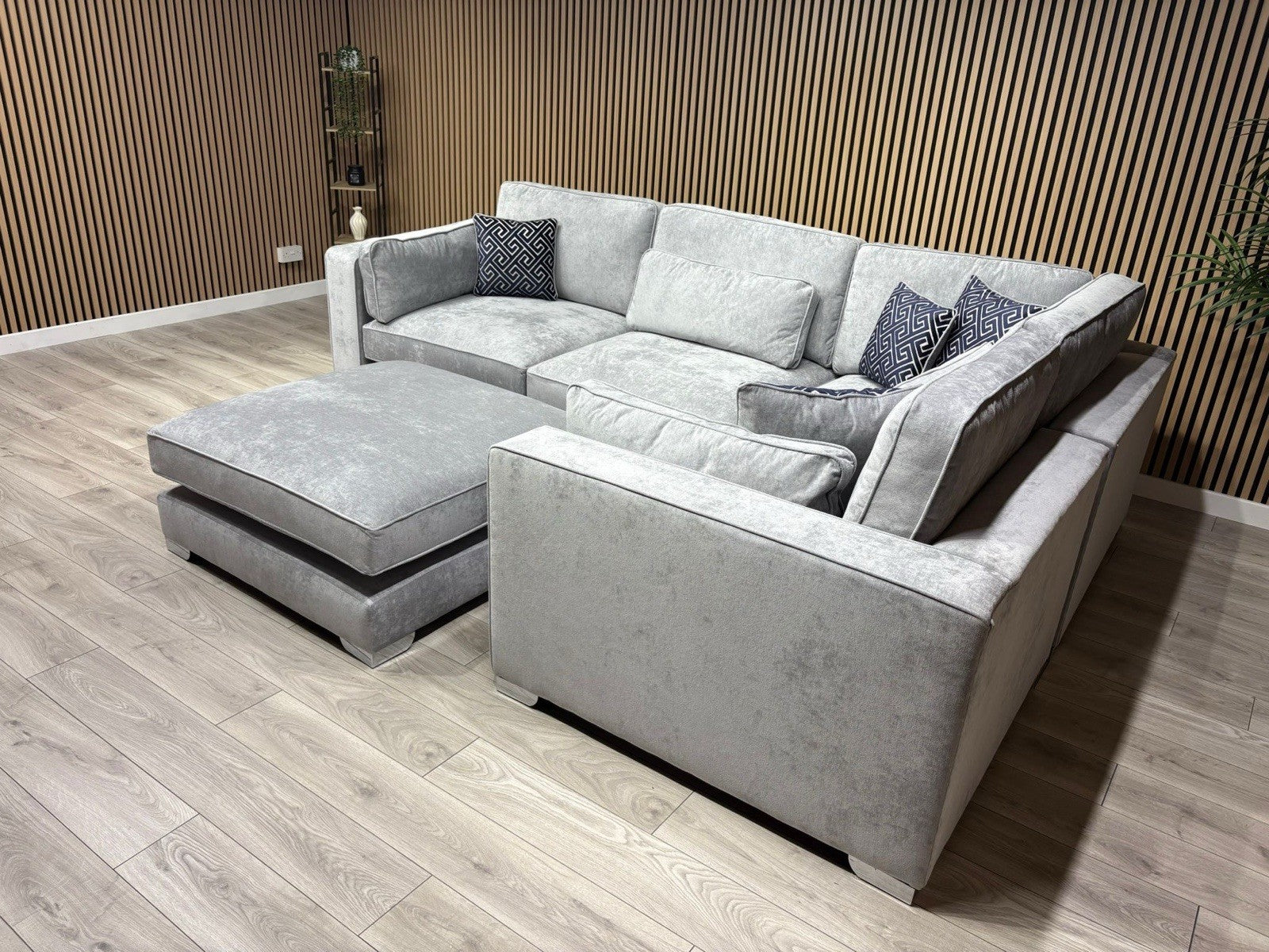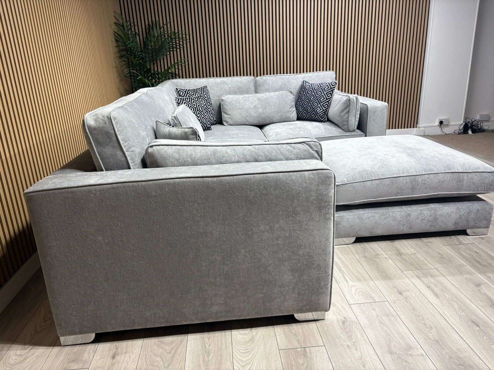 Sofology CAVALLI Style Fabric 3 Corner 1.5 Sofa + Footstool, Silver - RRP £5398