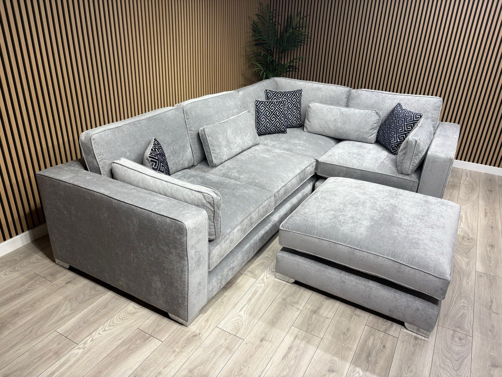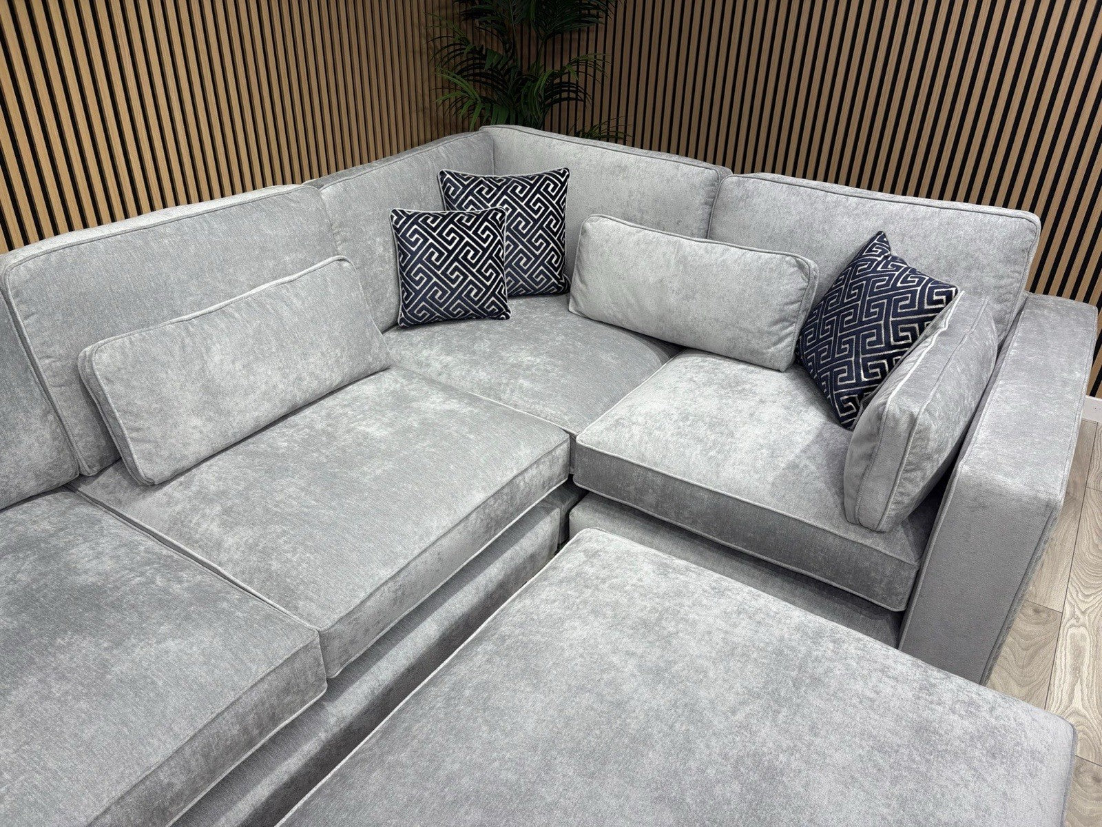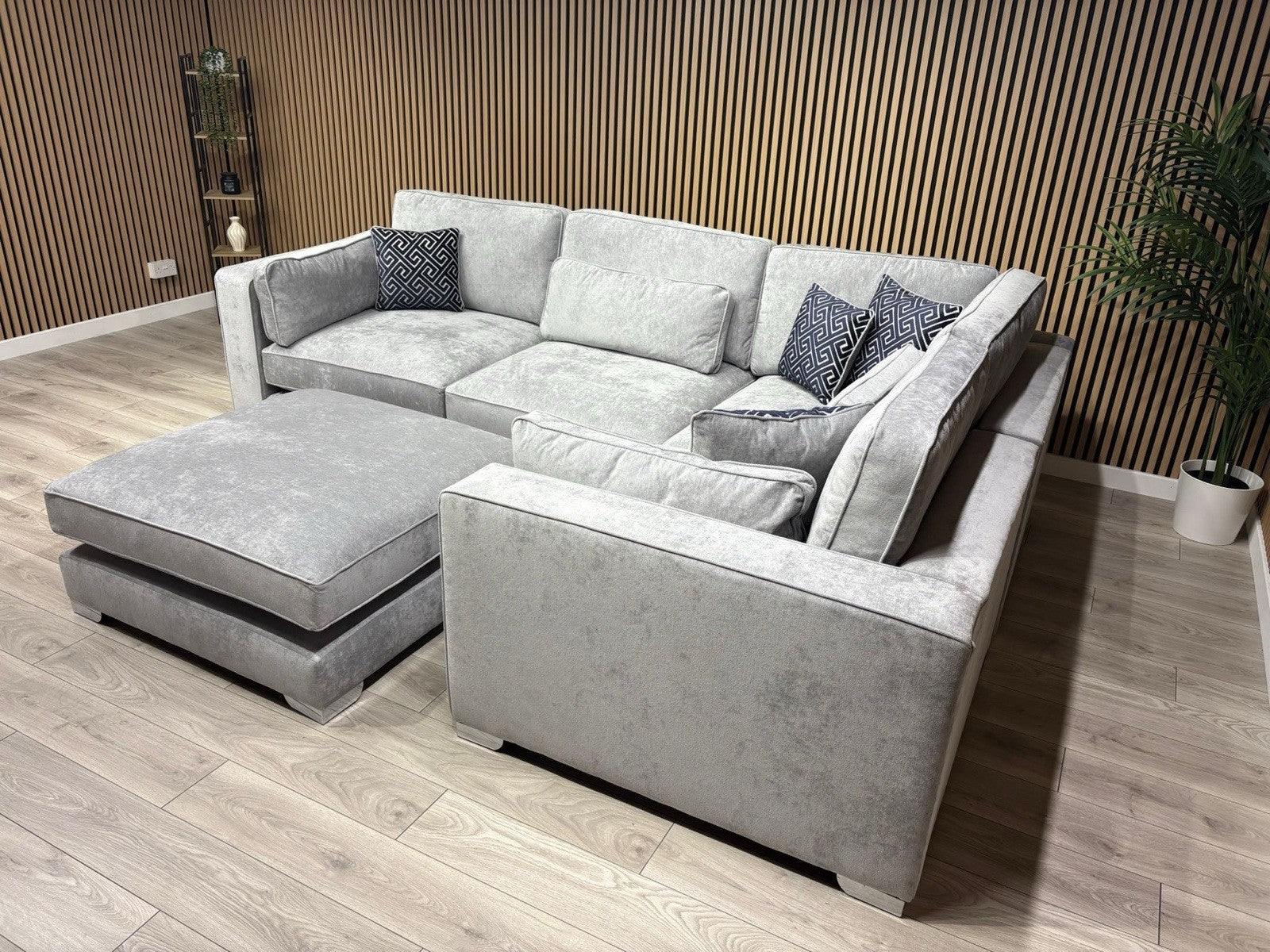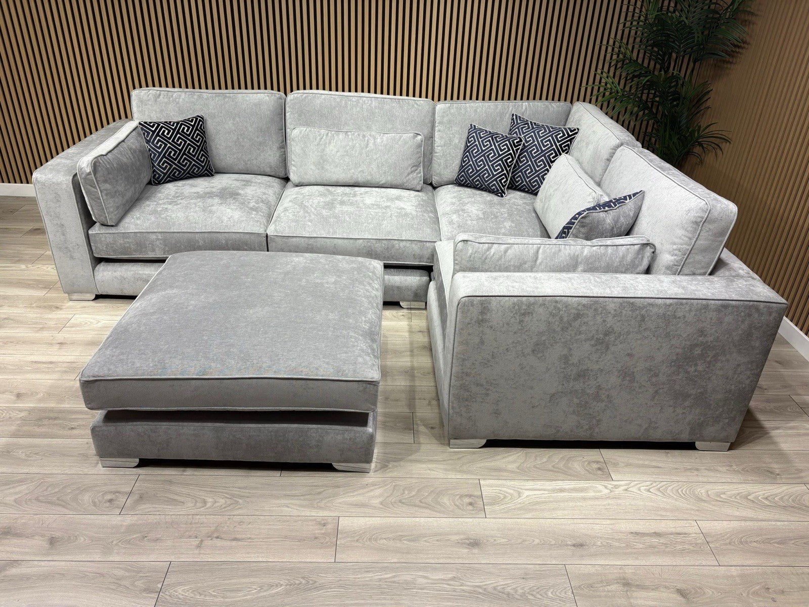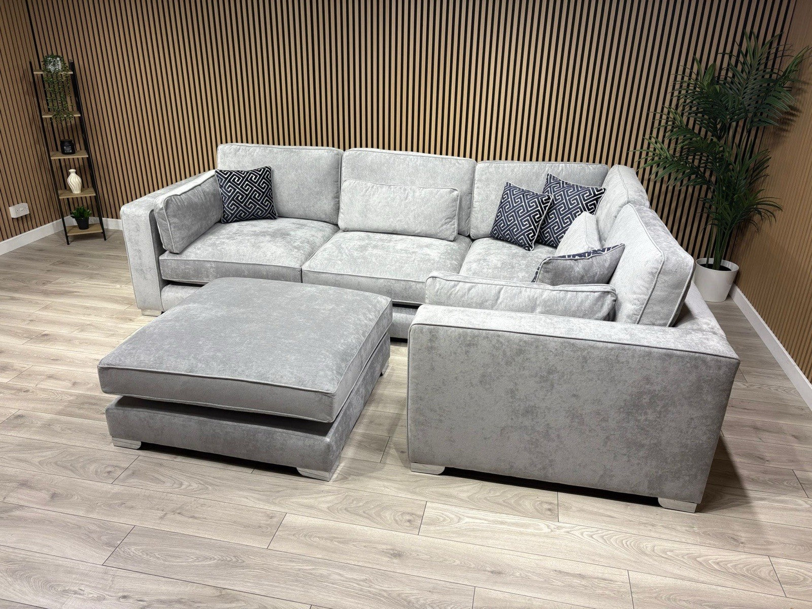 Sofology CAVALLI Style Fabric 3 Corner 1.5 Sofa + Footstool, Silver - RRP £5398