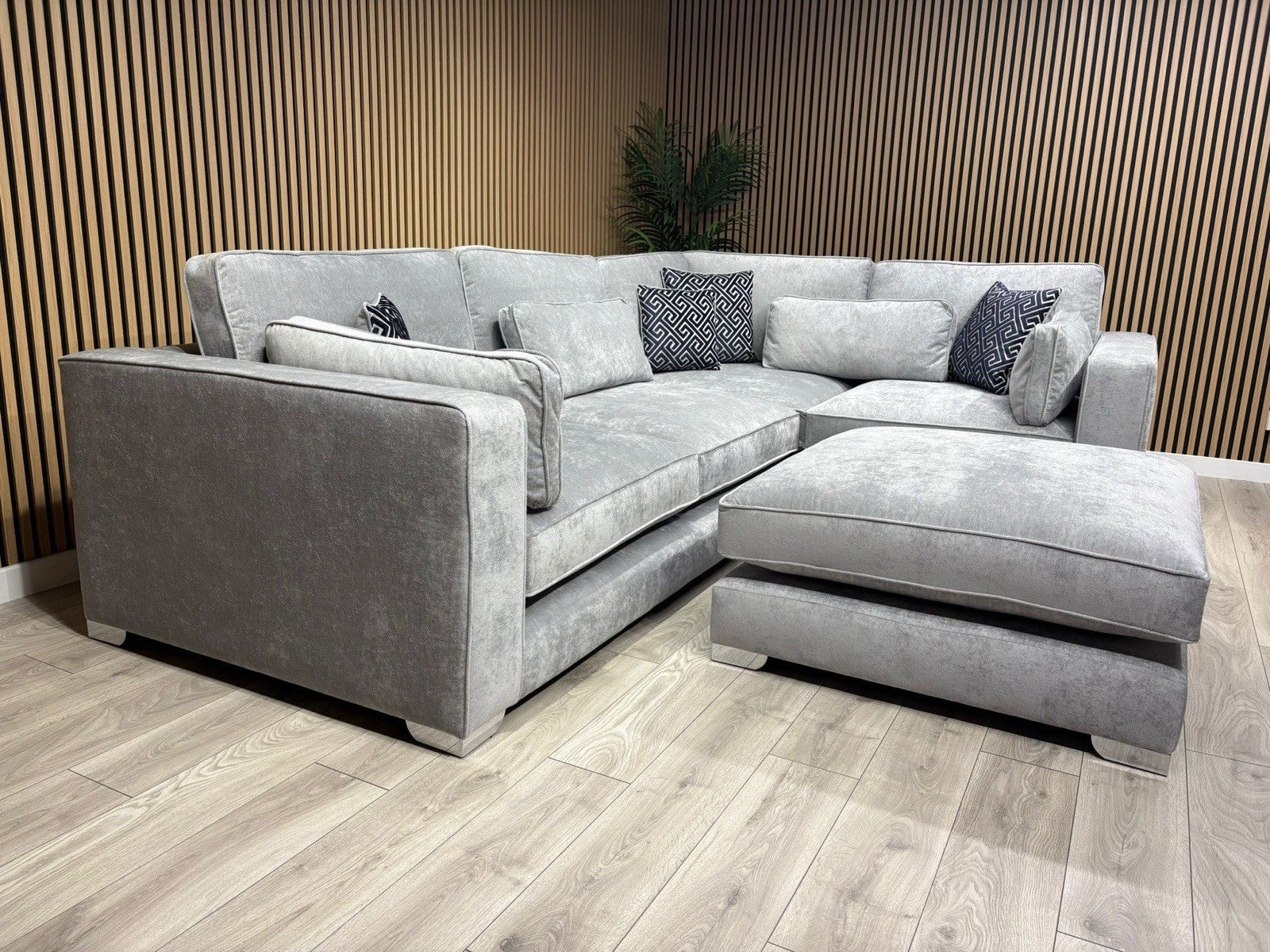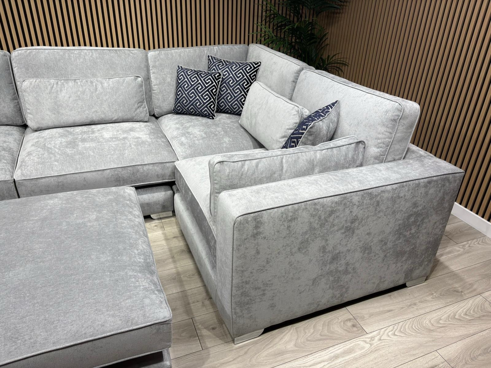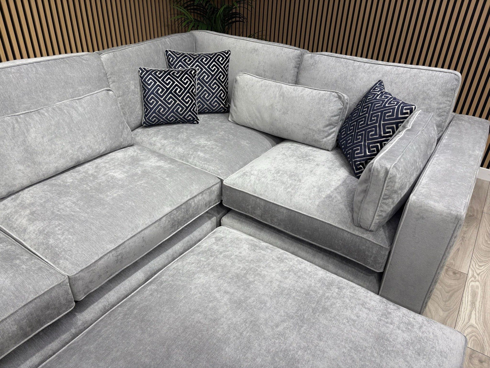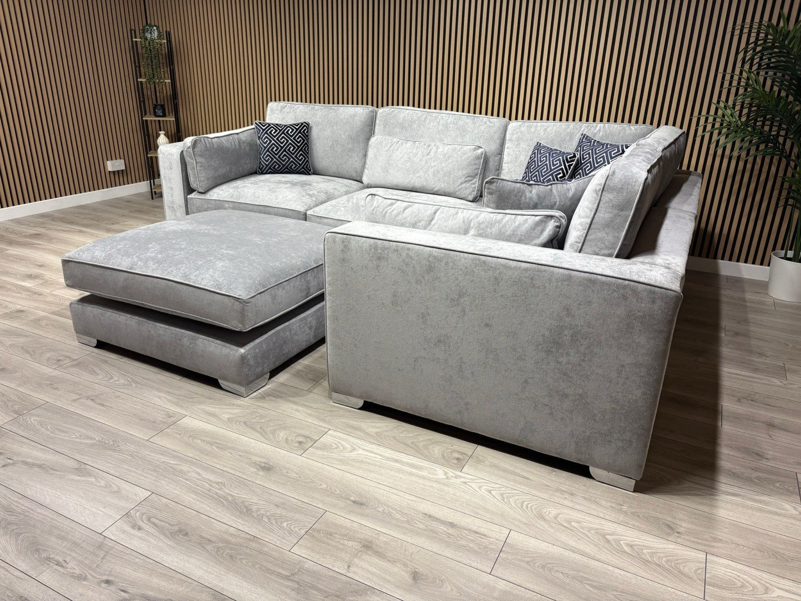 Sofology CAVALLI Style Fabric 3 Corner 1.5 Sofa + Footstool, Silver - RRP £5398