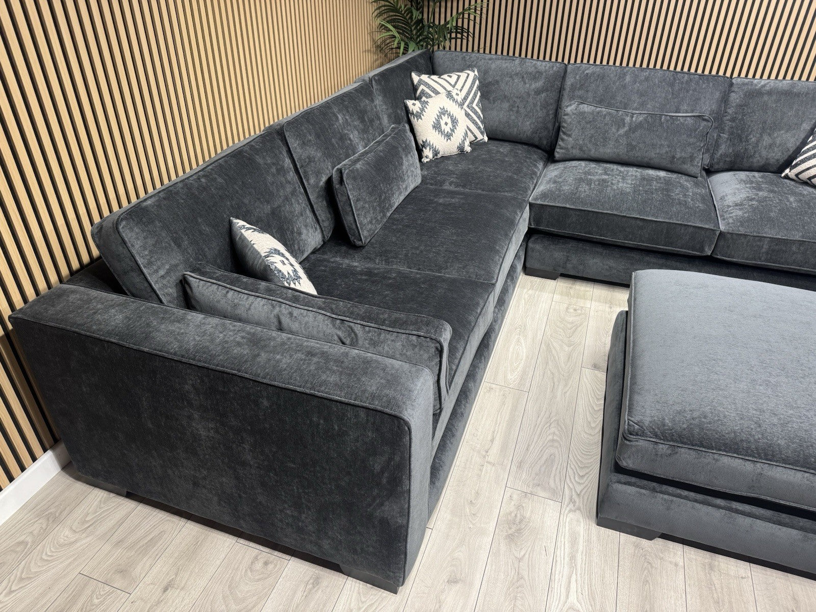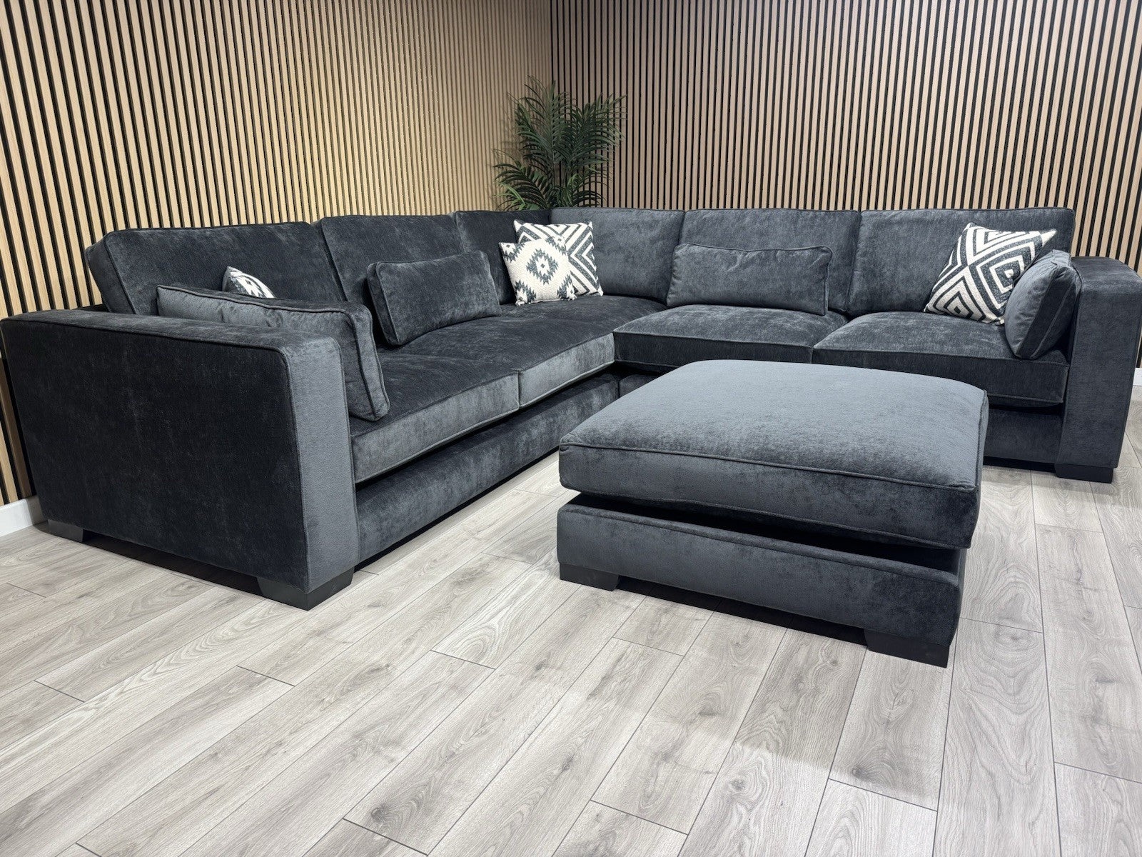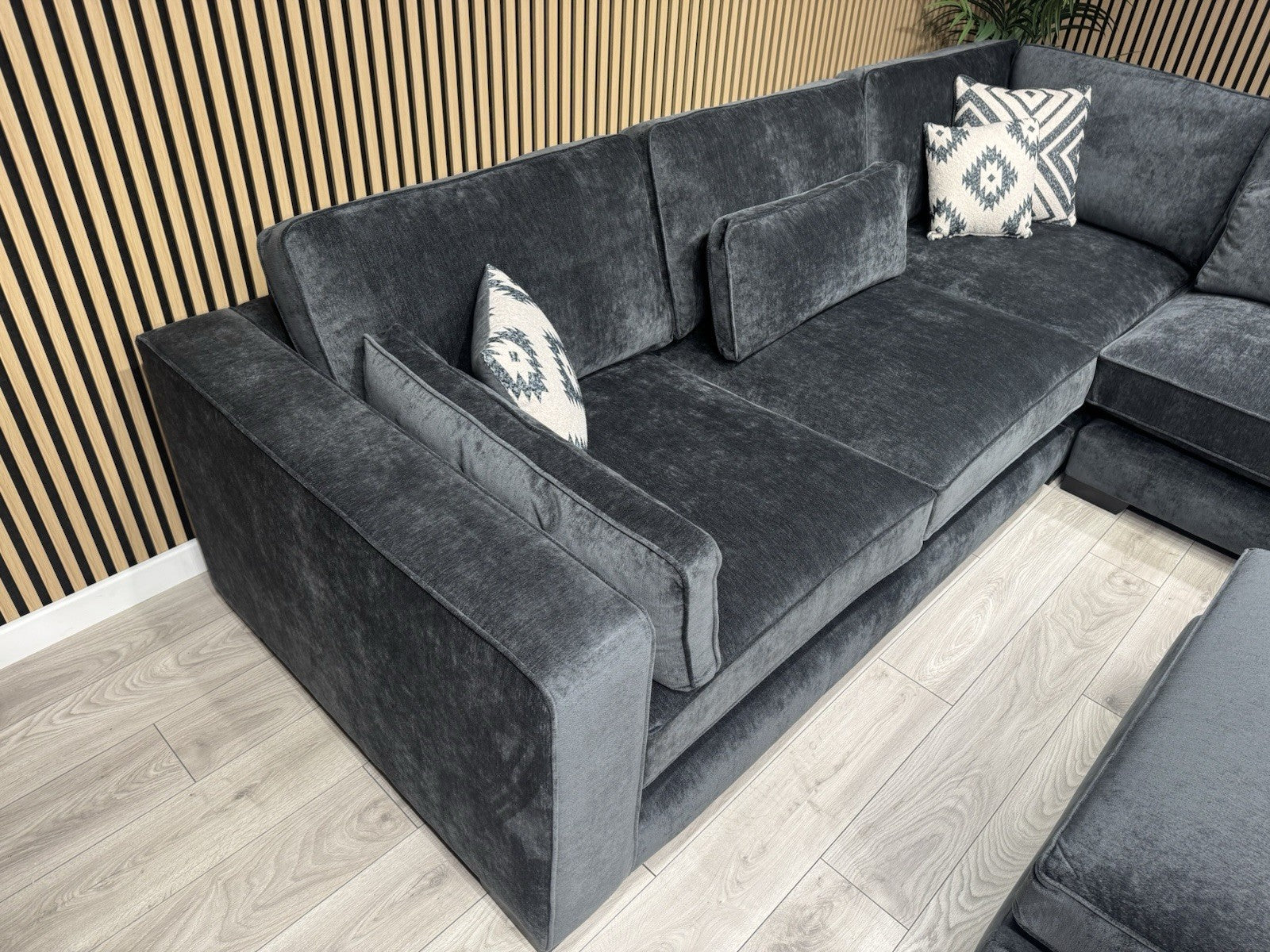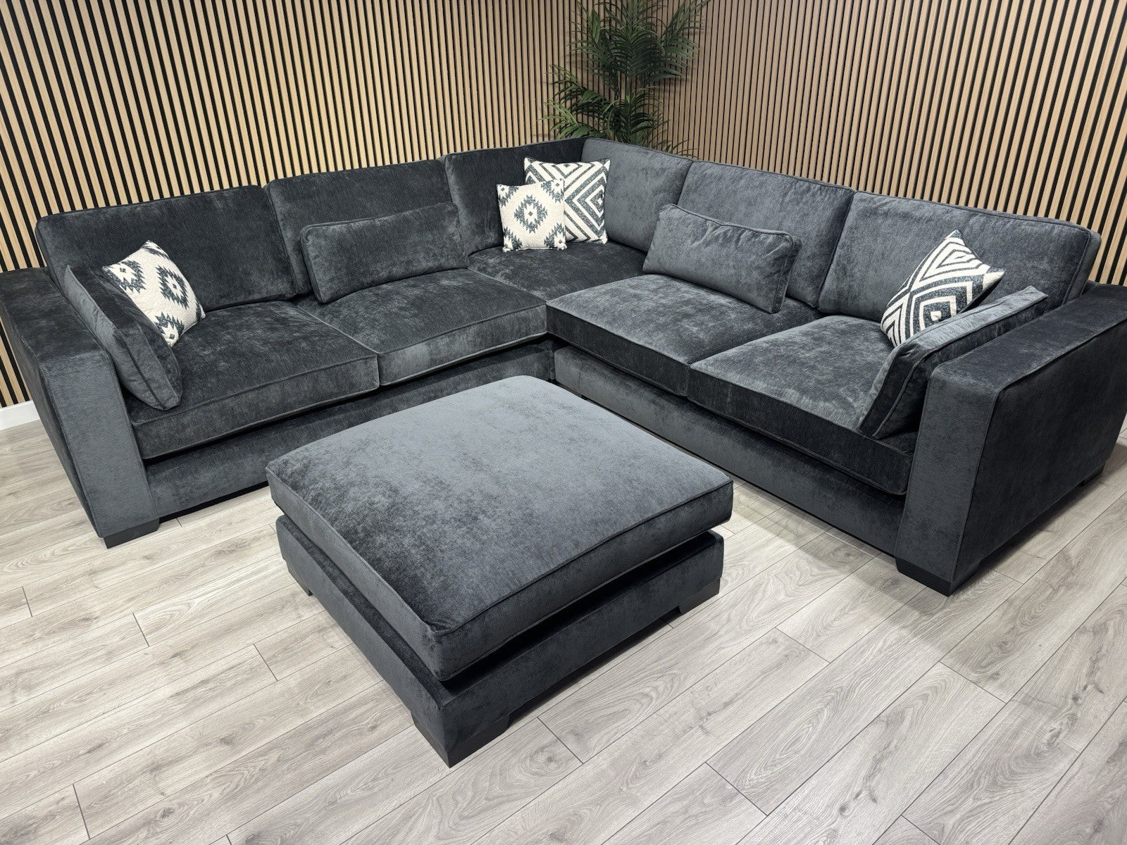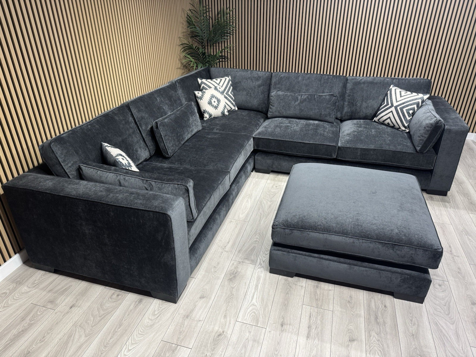 Sofology CAVALLI Style Fabric 3 Corner 3 Sofa + Footstool, Slate - RRP £6,398