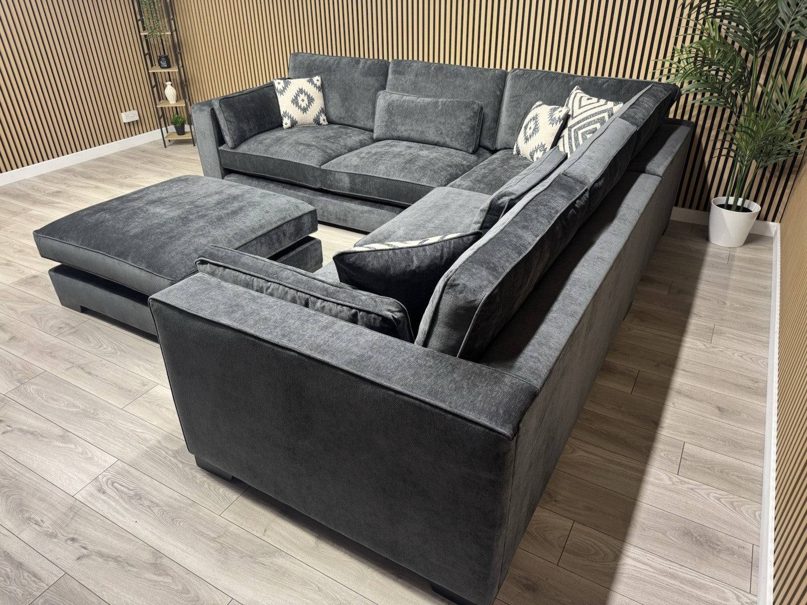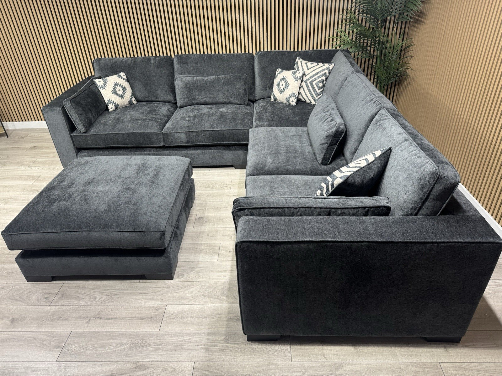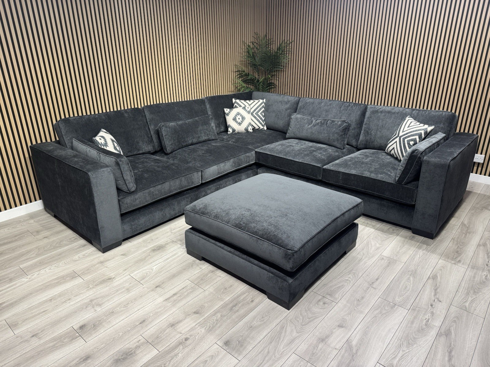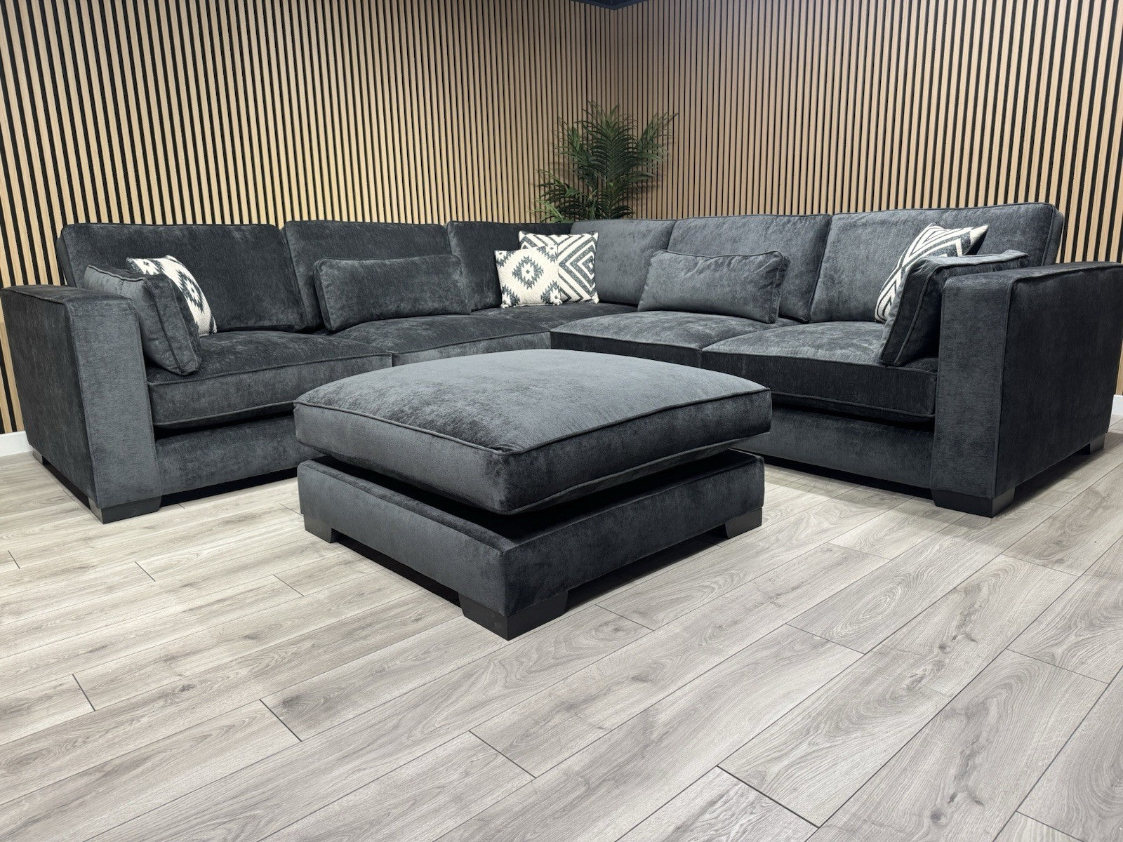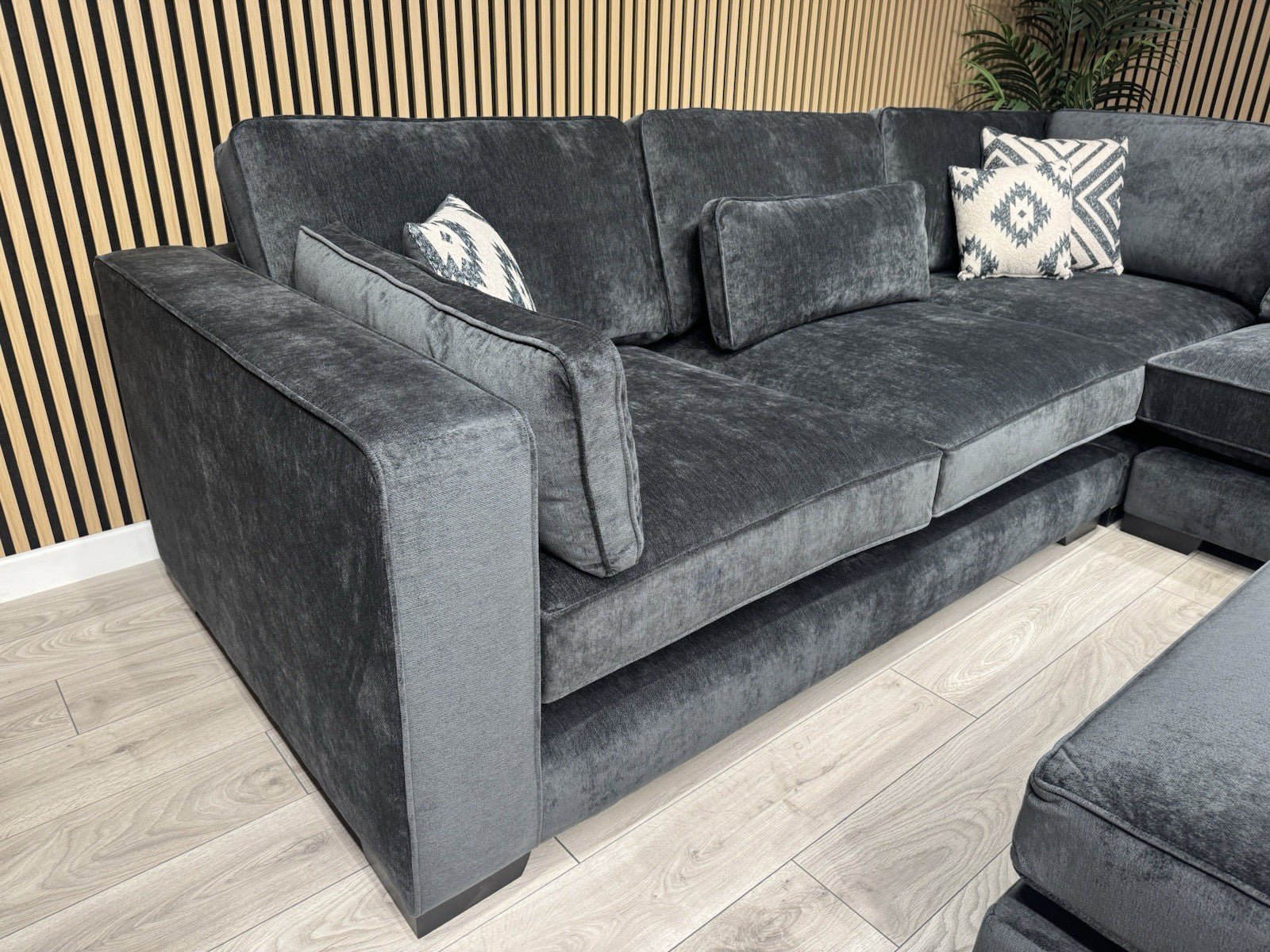 Sofology CAVALLI Style Fabric 3 Corner 3 Sofa + Footstool, Slate - RRP £6,398