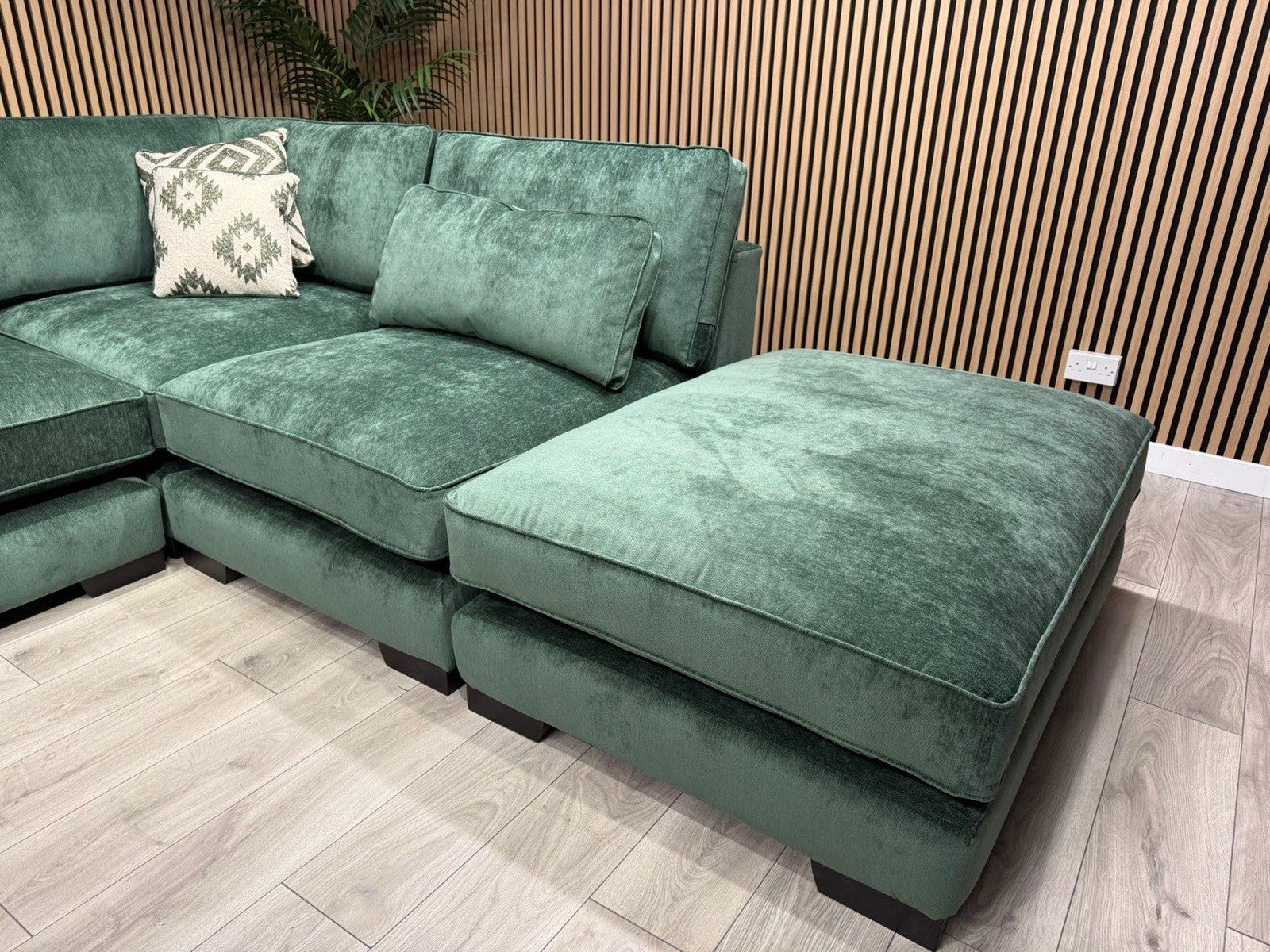 Sofology CAVALLI Style Fabric Open Chaise RHF Corner Sofa + Footstool - RRP £5398