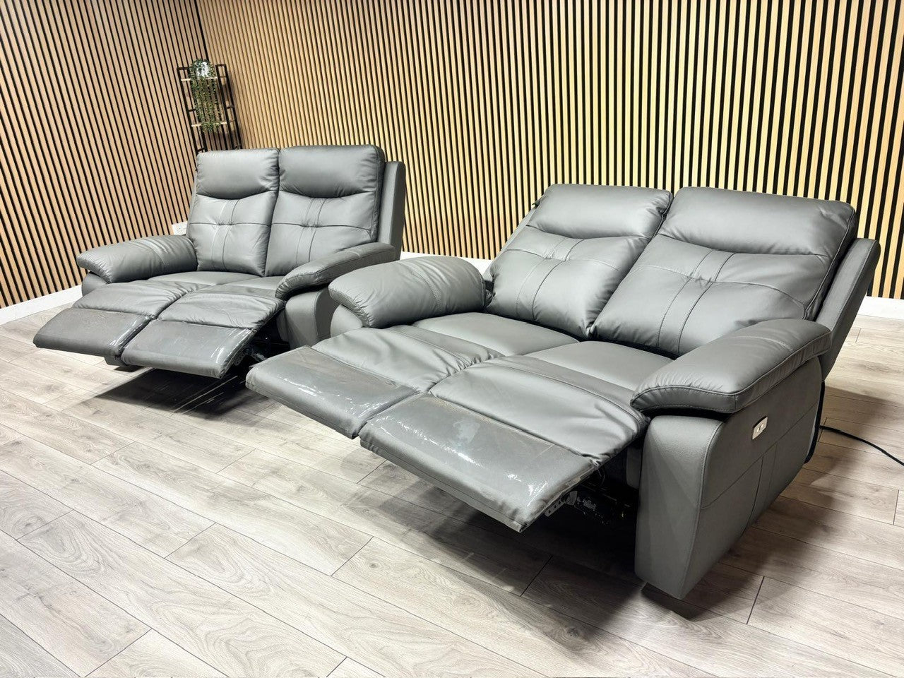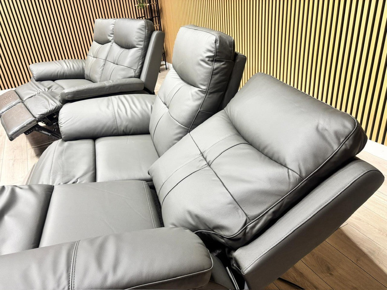 Discover ultimate relaxation with the Sophia Grey Leather Collection, a stunning 2+2 seater power recliner set that marries luxury with everyday comfort. Upholstered in premium grey leather, this sophisticated suite features plush foam-filled cushions and ergonomic lumbar support to cradle your body perfectly. Intelligent stitching details deliver contemporary style, whilst generously proportioned armrests provide the ideal resting spot. Effortless electric recliners let you find your perfect position with a simple touch, and integrated USB charging ports keep your devices powered whilst you unwind. Ideal for families and entertaining, the Sophia Collection transforms your living room into a refined sanctuary of comfort and elegance.