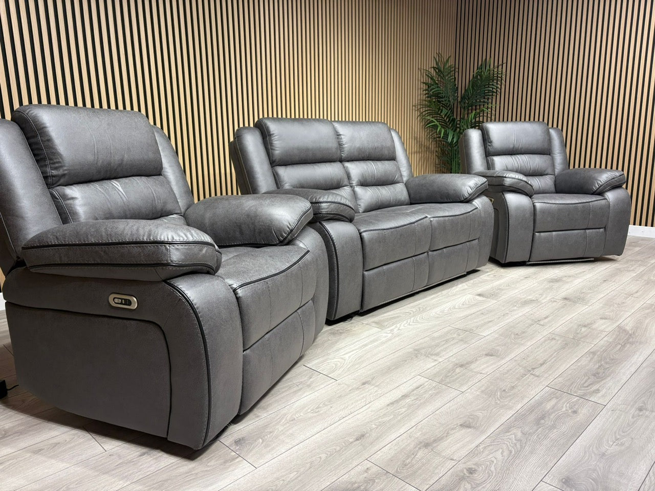 CANNES Leather 3 Seater + Armchair Set Power Recliners RRP £2895