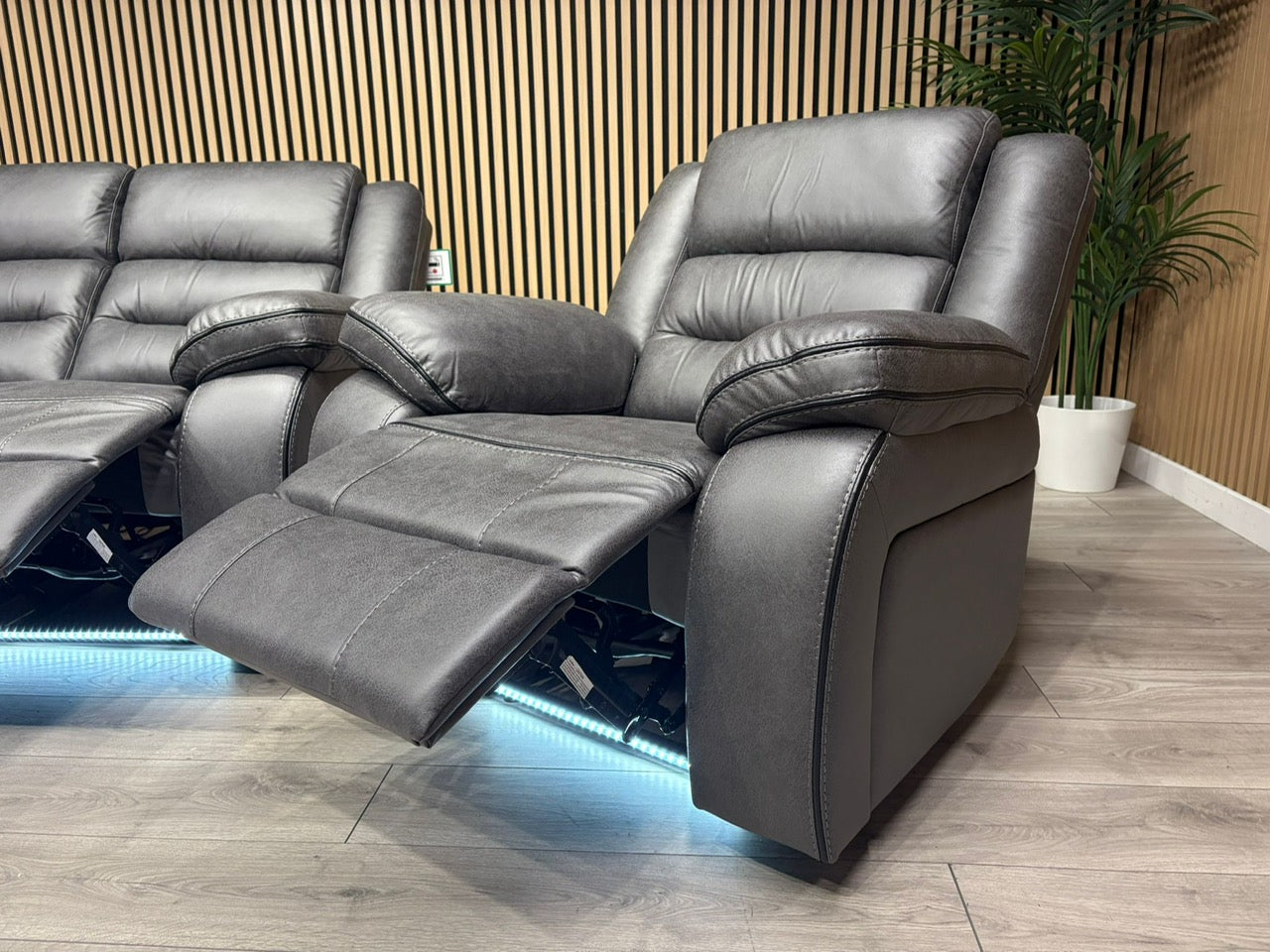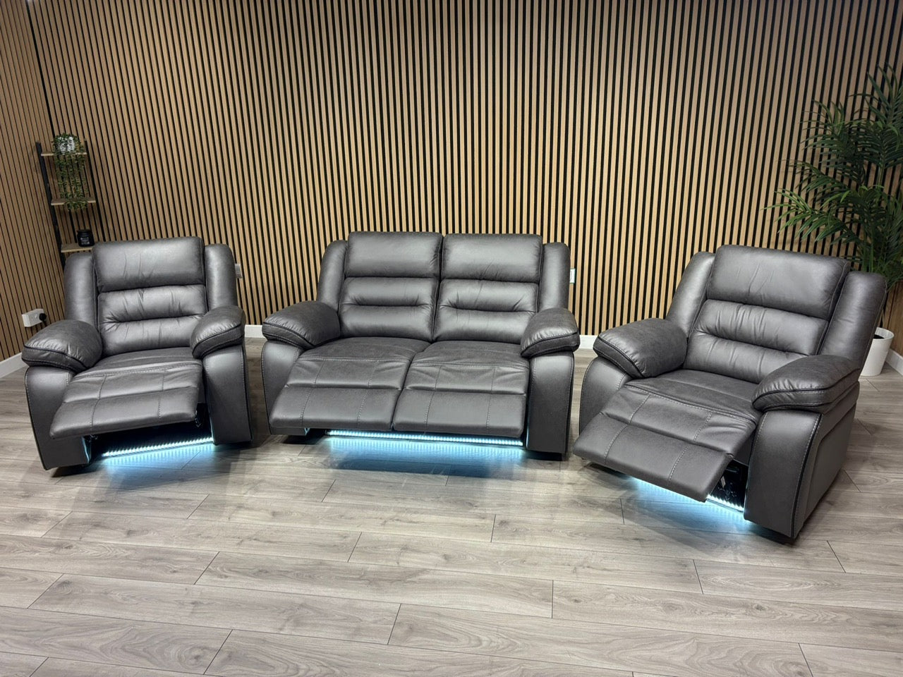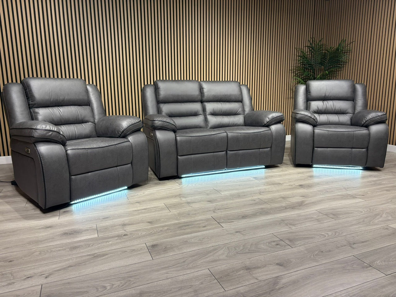 DFS Eigar Style 2 Seater Sofa + 2 Armchairs Set, Power Recliners + LED Lights - lights can be removed.