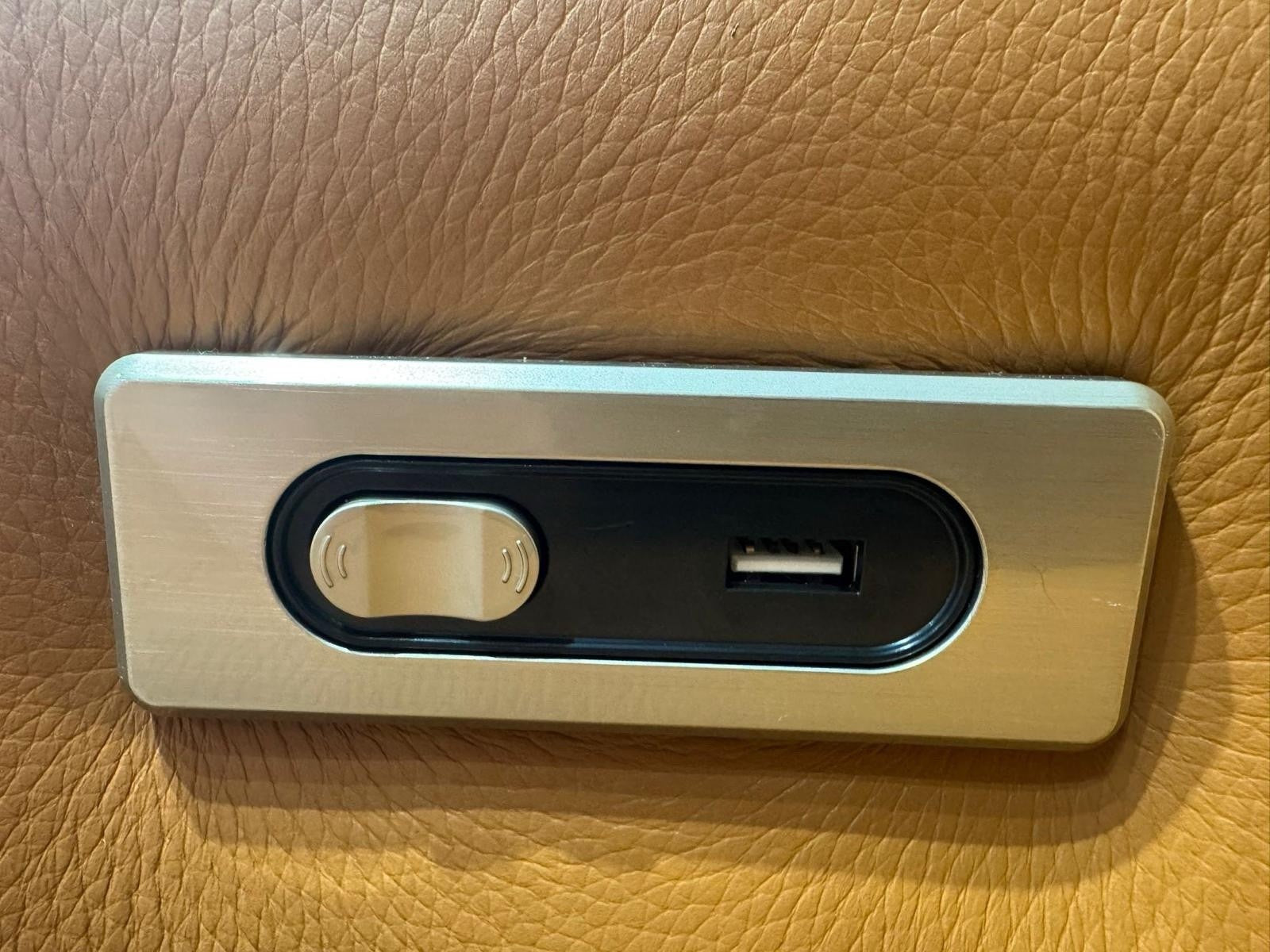 This stunning leather corner sofa with chrome detailing on the arms comes with power recliners on both ends and ratchet headrests that are adjustable to suit your needs. Also includes console with storage and cup holders. Fully modular so can be arranged as required.