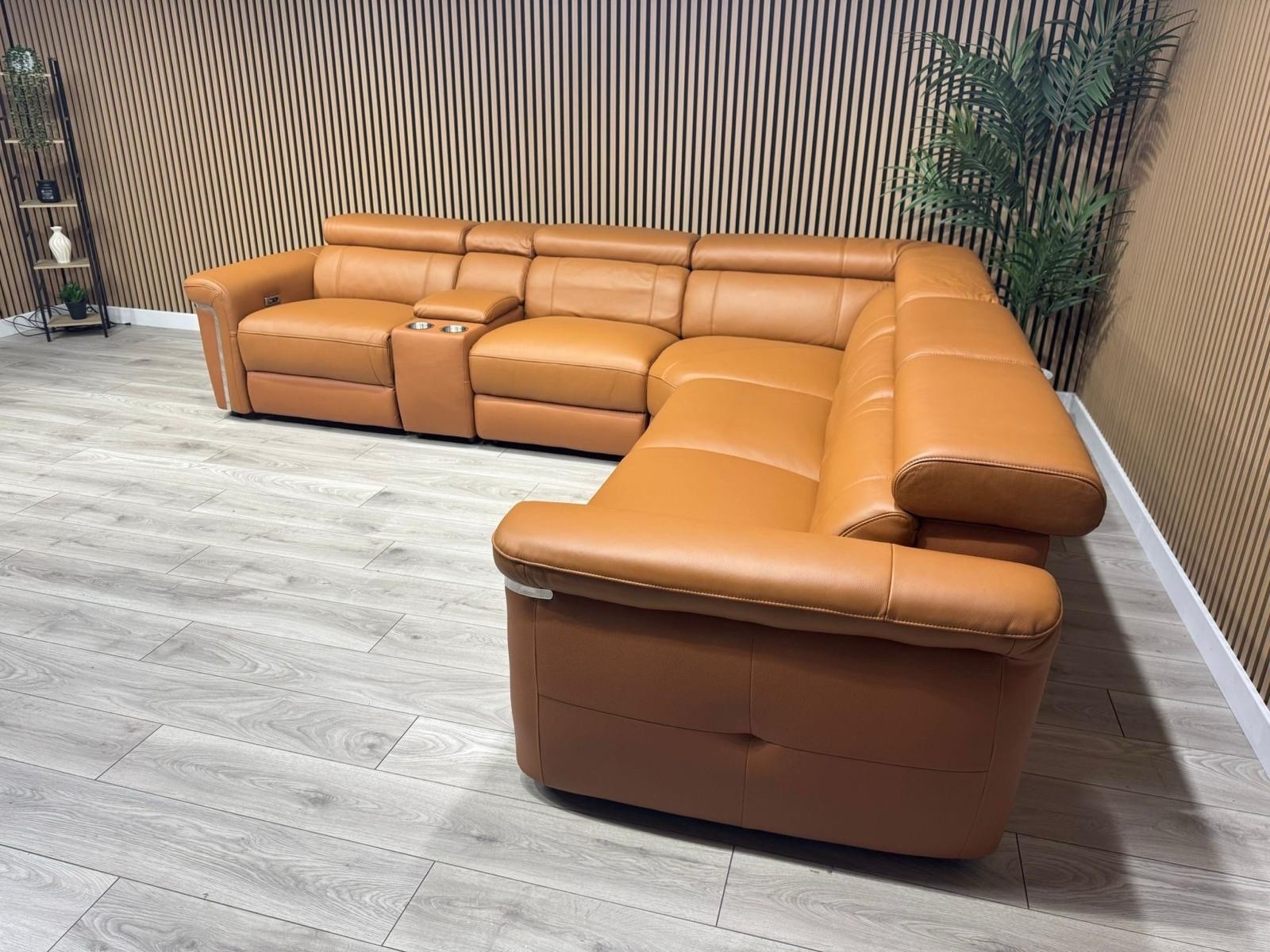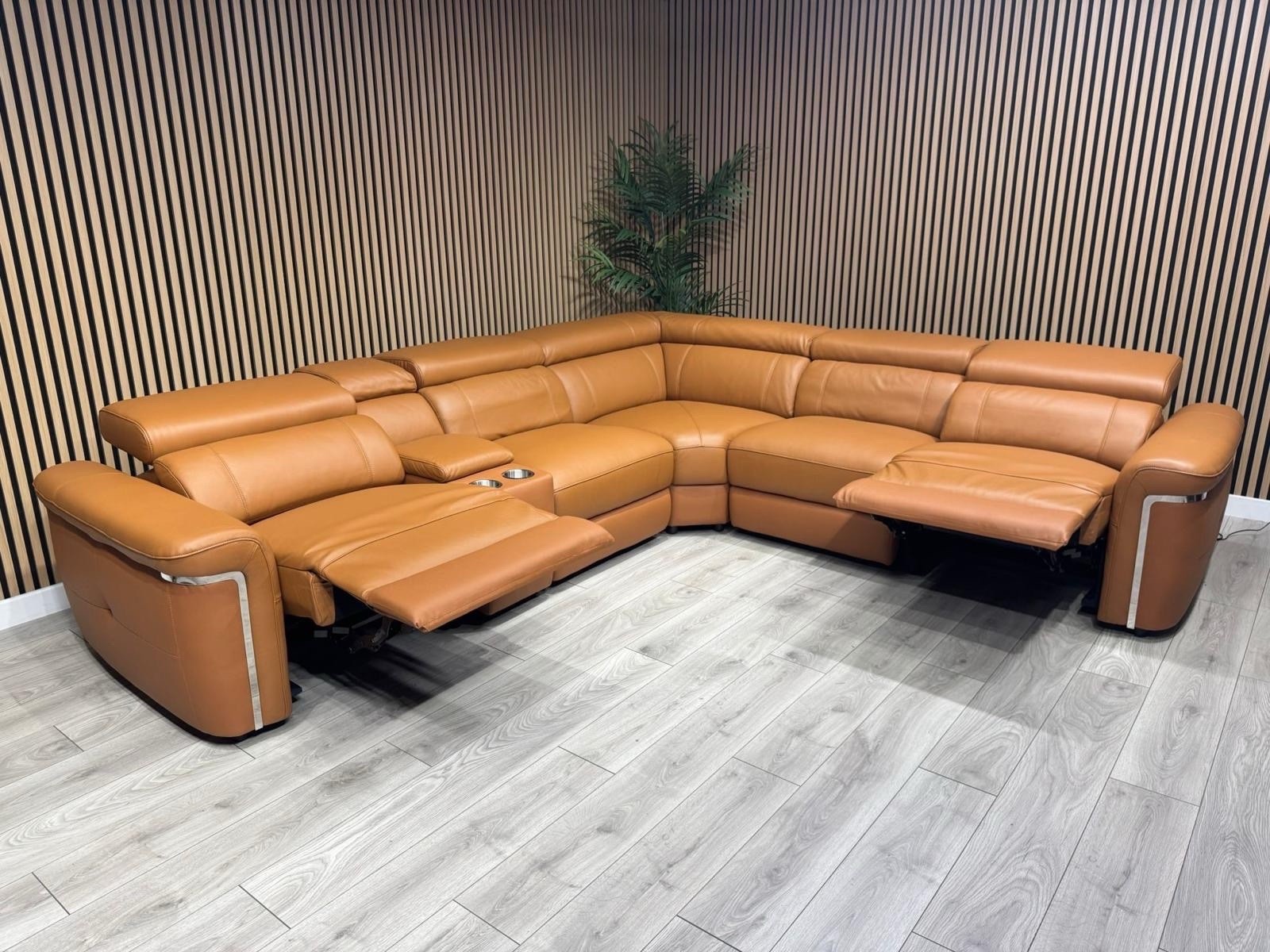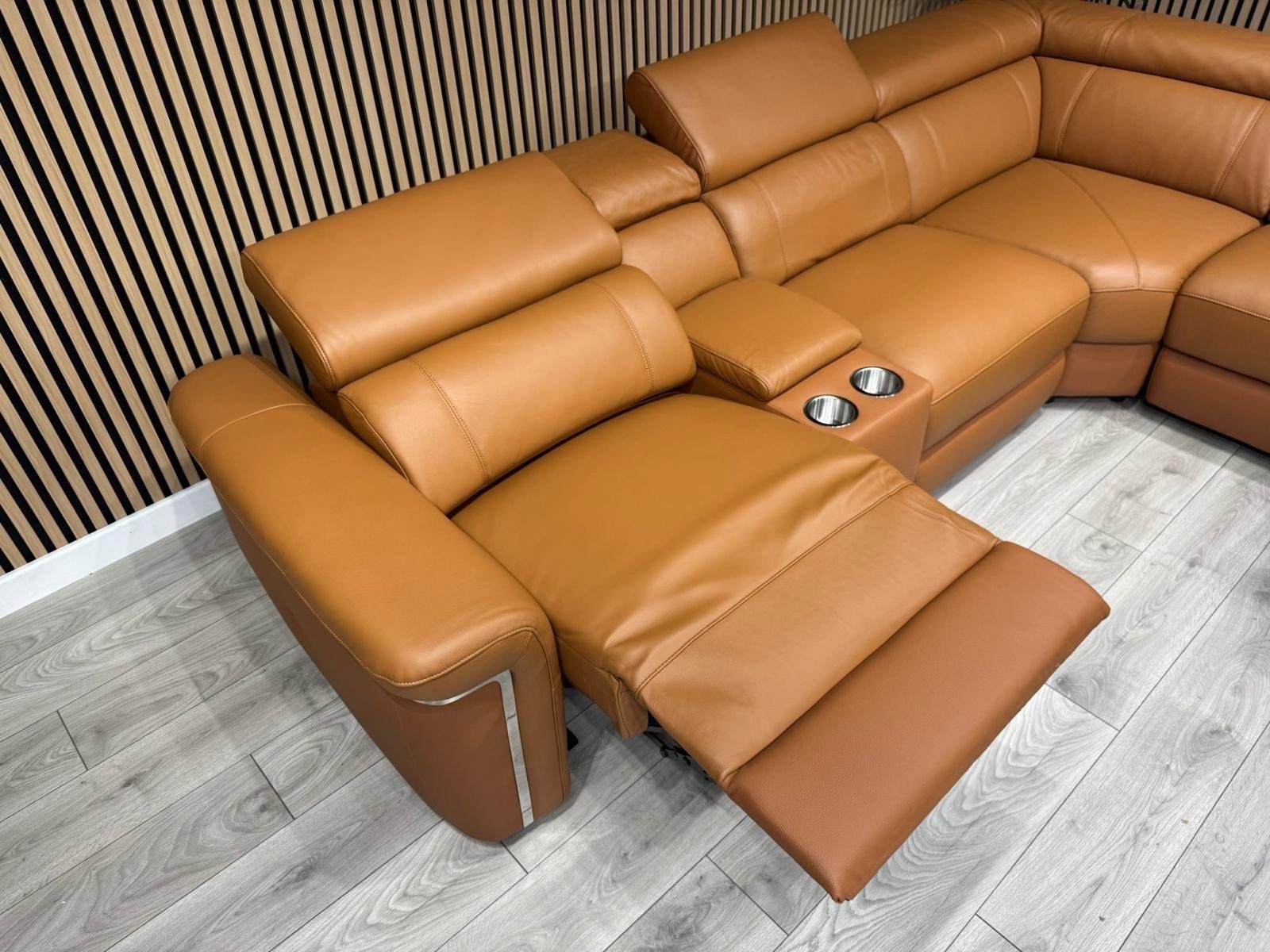 VENICE Leather 2 Corner 2 Power Recliner Sofa + Console, Pre-order - RRP £5,599